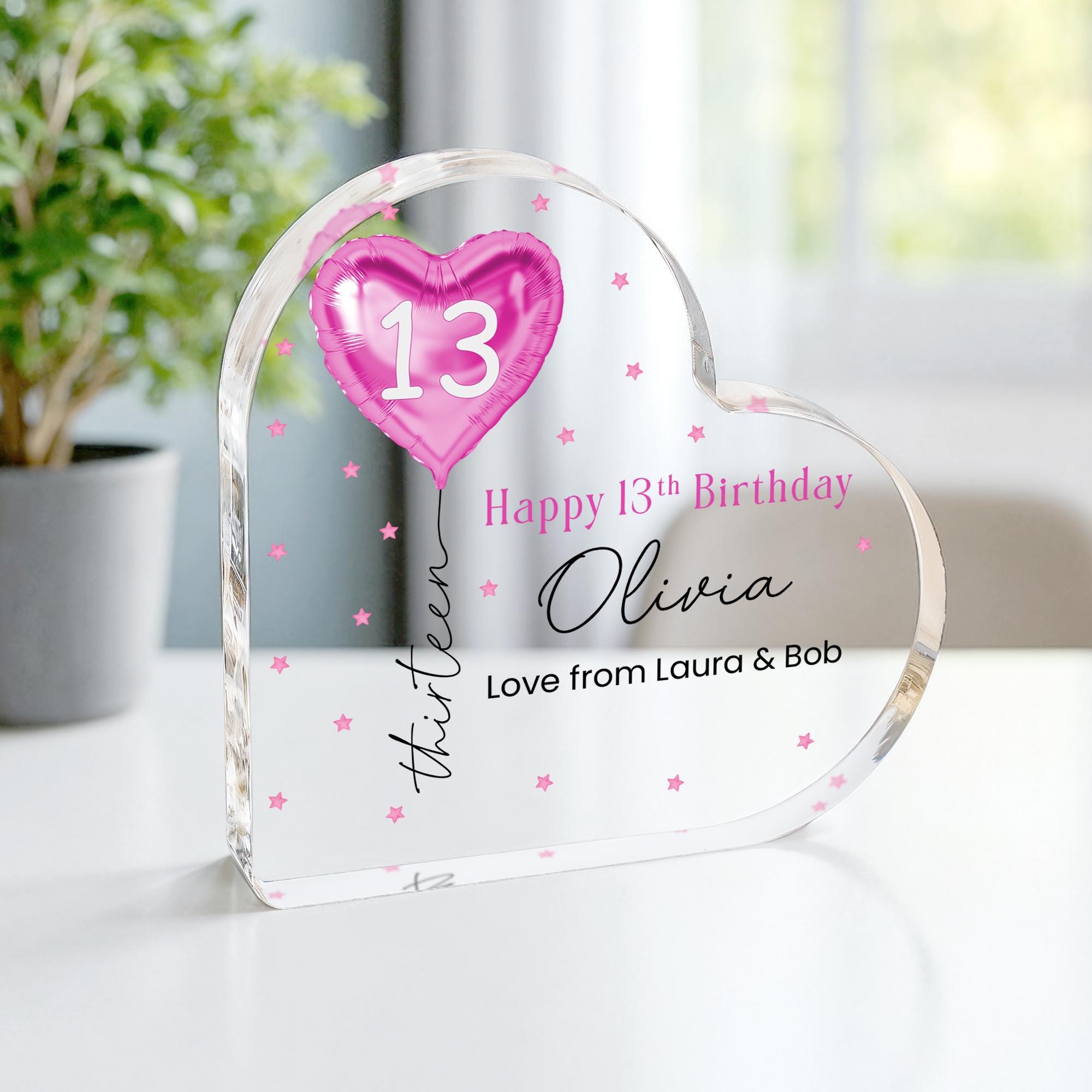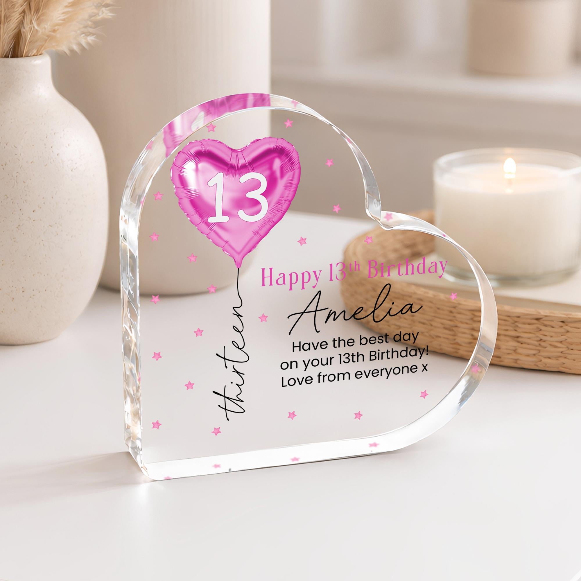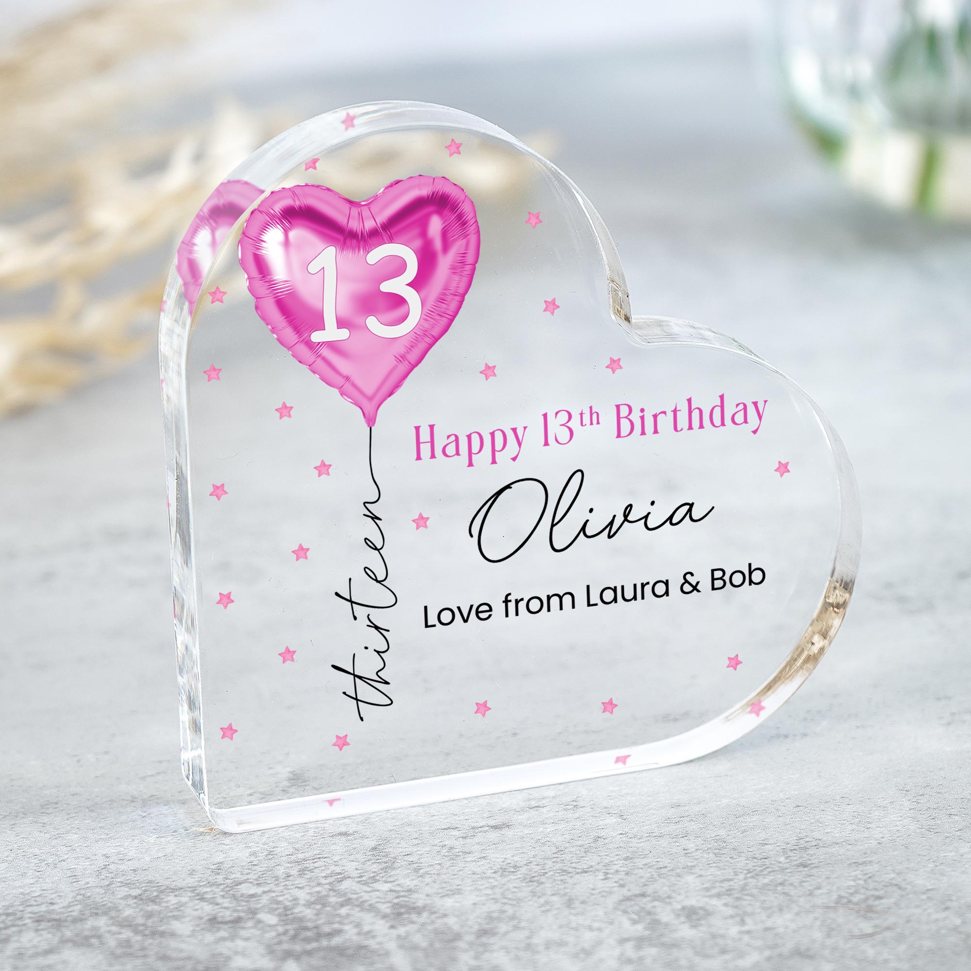 Personalised Pink Balloon 13th Birthday Gift Message Heart Plaque for Her