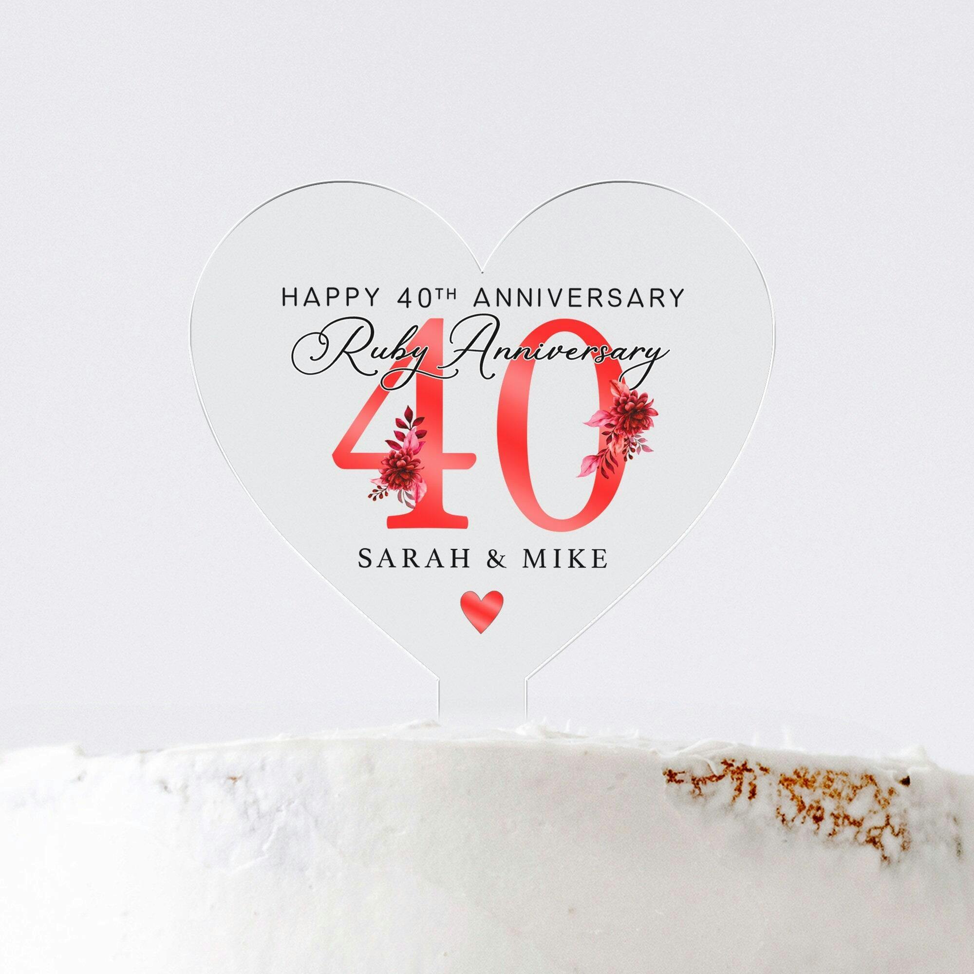 Personalised Ruby Floral 40th Anniversary Cake Topper - Ruby Anniversary