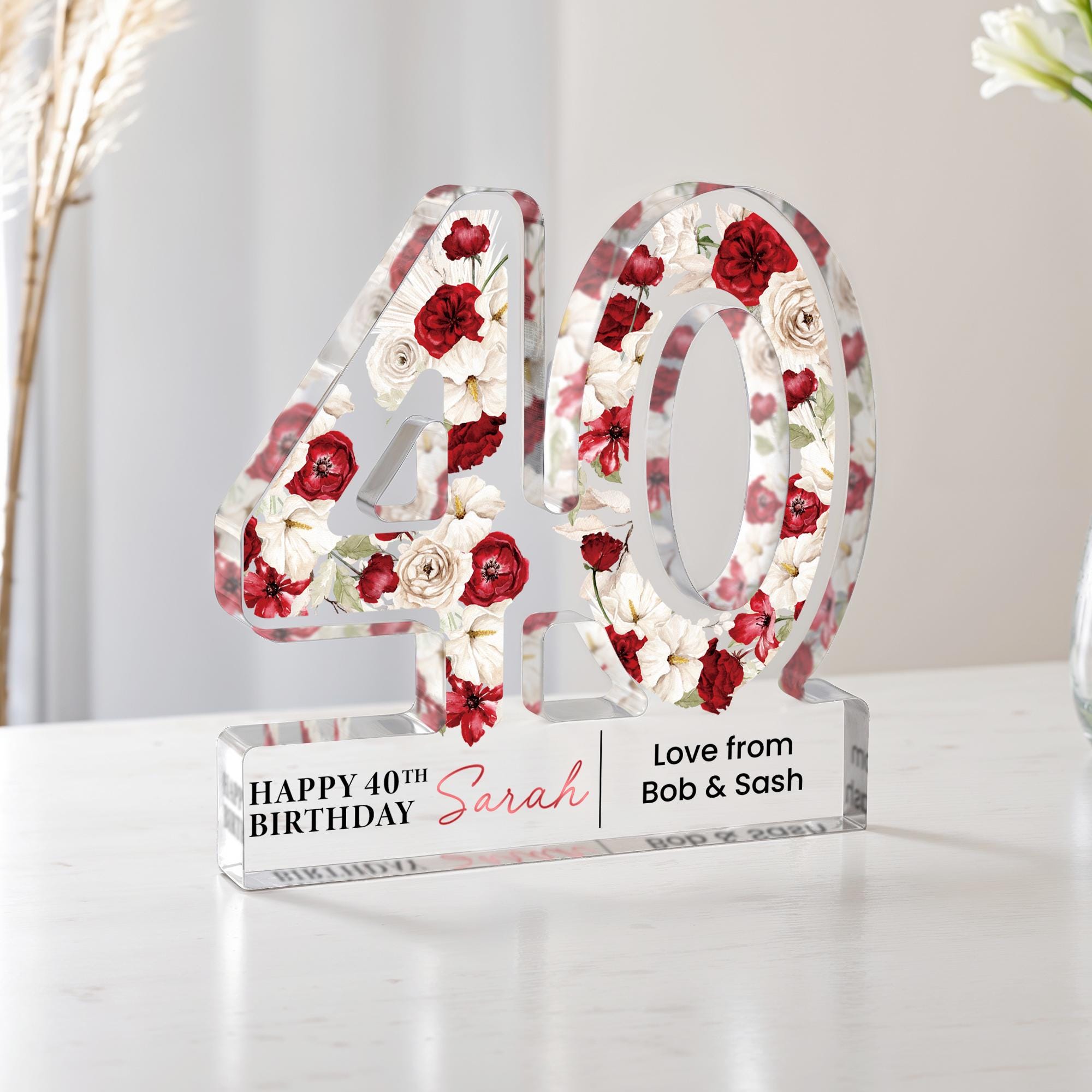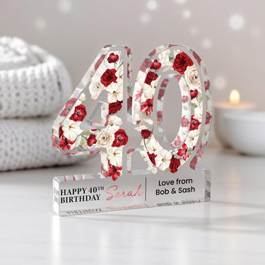 Personalised Red Poppy Flower 40th Birthday Gift Plaque for Her
