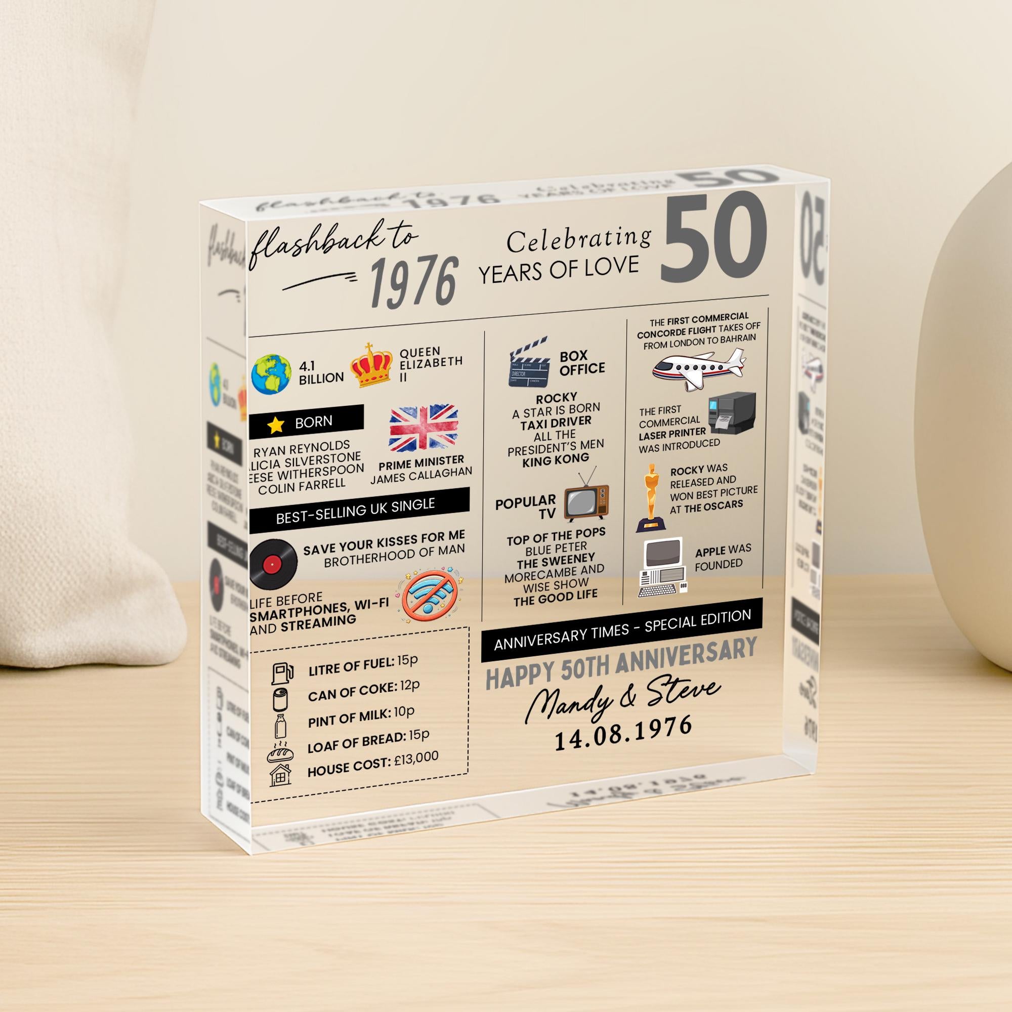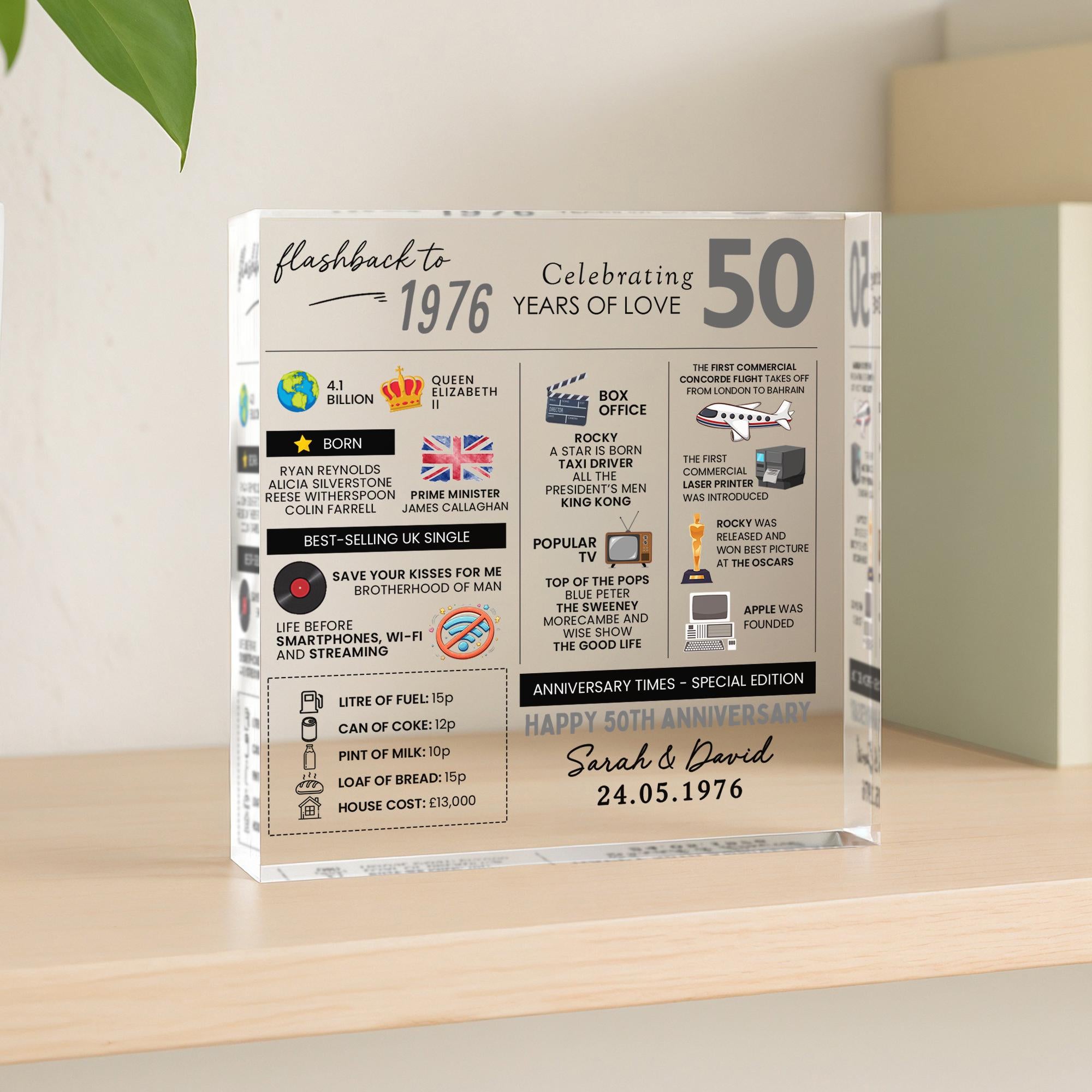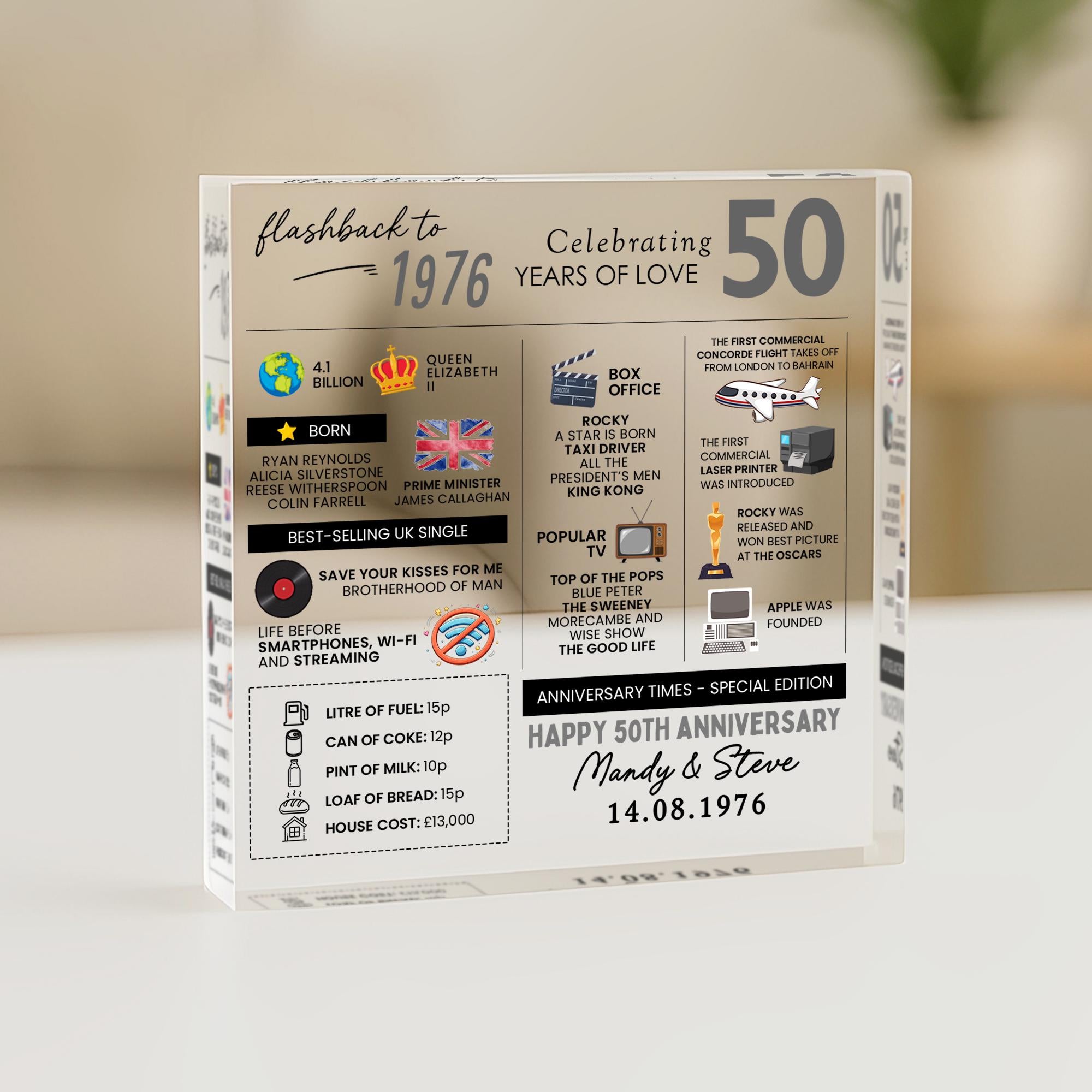 Personalised Marriage Facts 50th Anniversary Married in 1976 Keepsake Plaque
