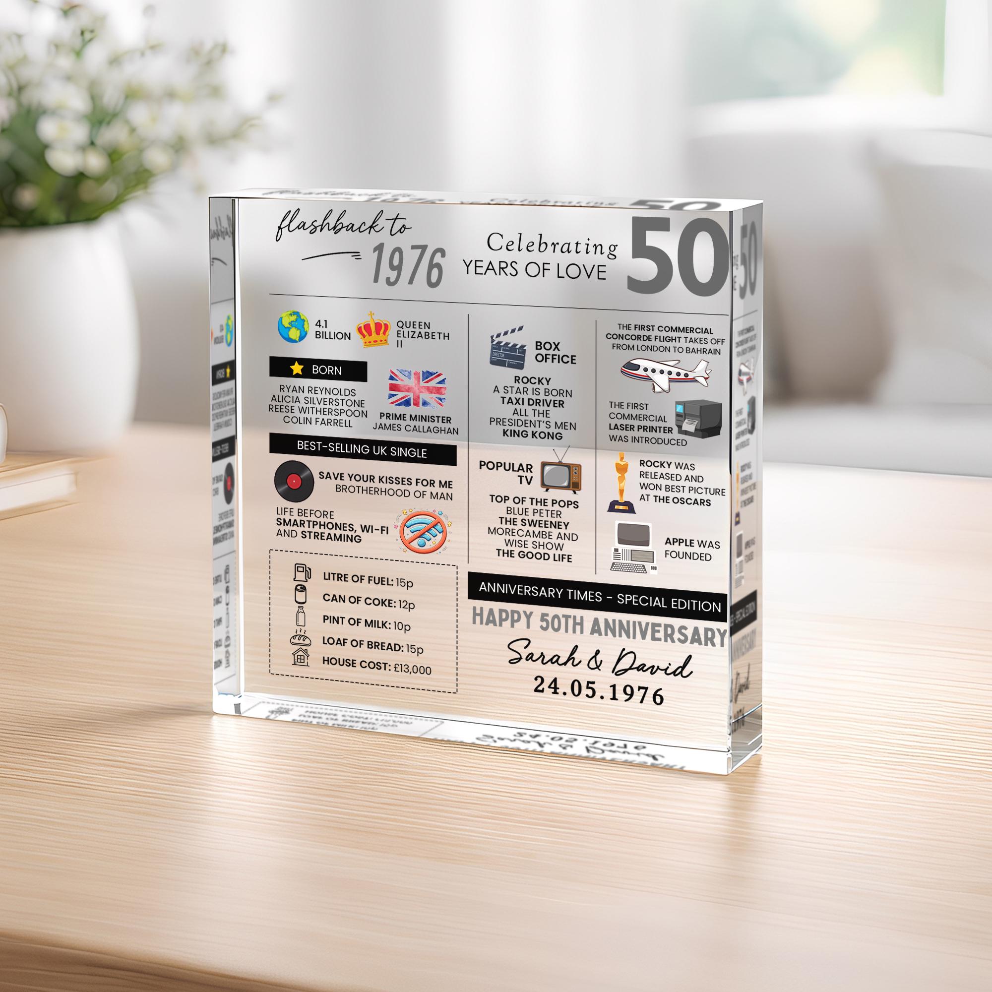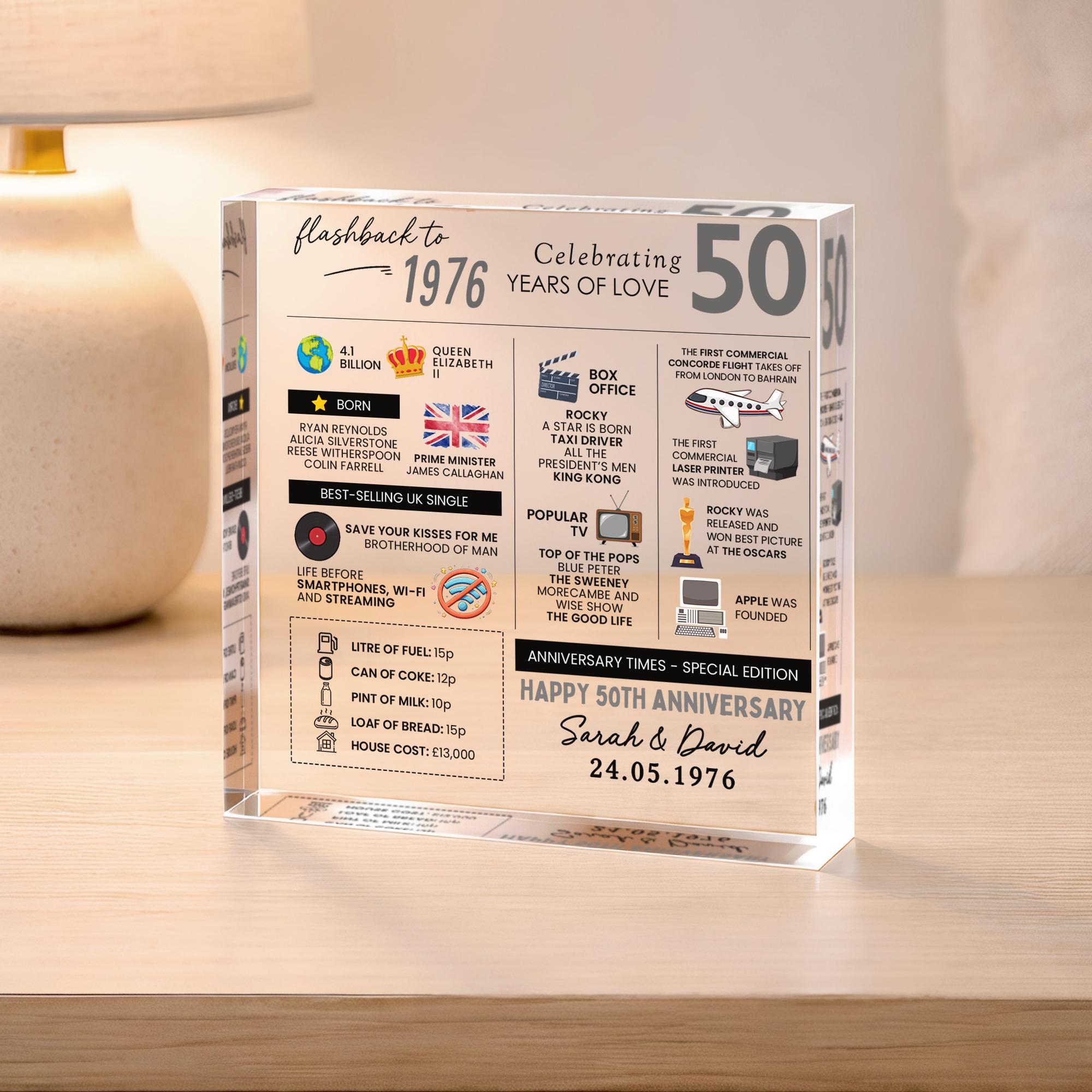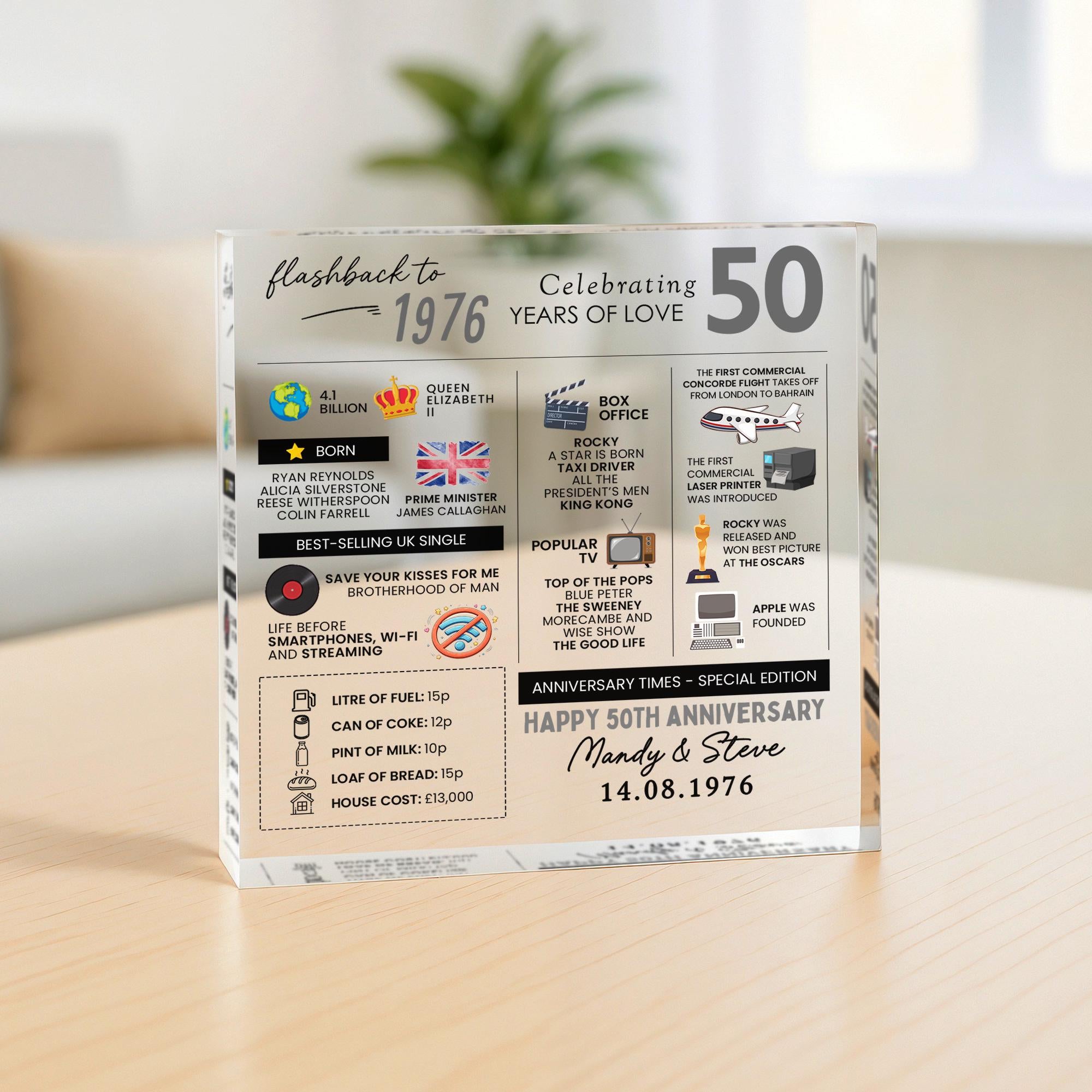 Personalised Marriage Facts 50th Anniversary Married in 1976 Keepsake Plaque