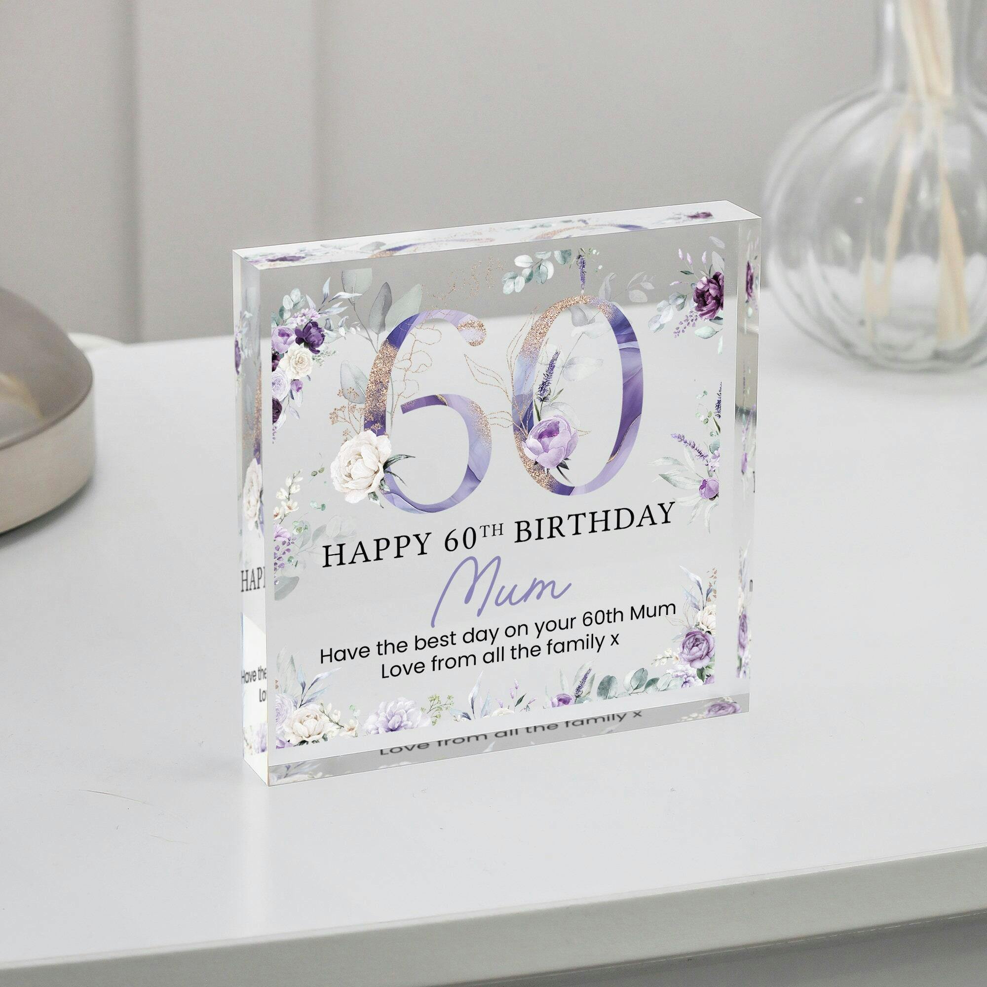 Personalised Purple Floral Happy 60th Birthday Gift Plaque