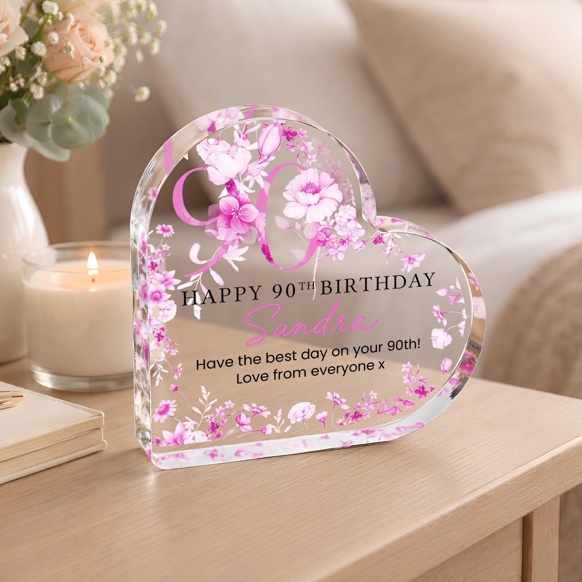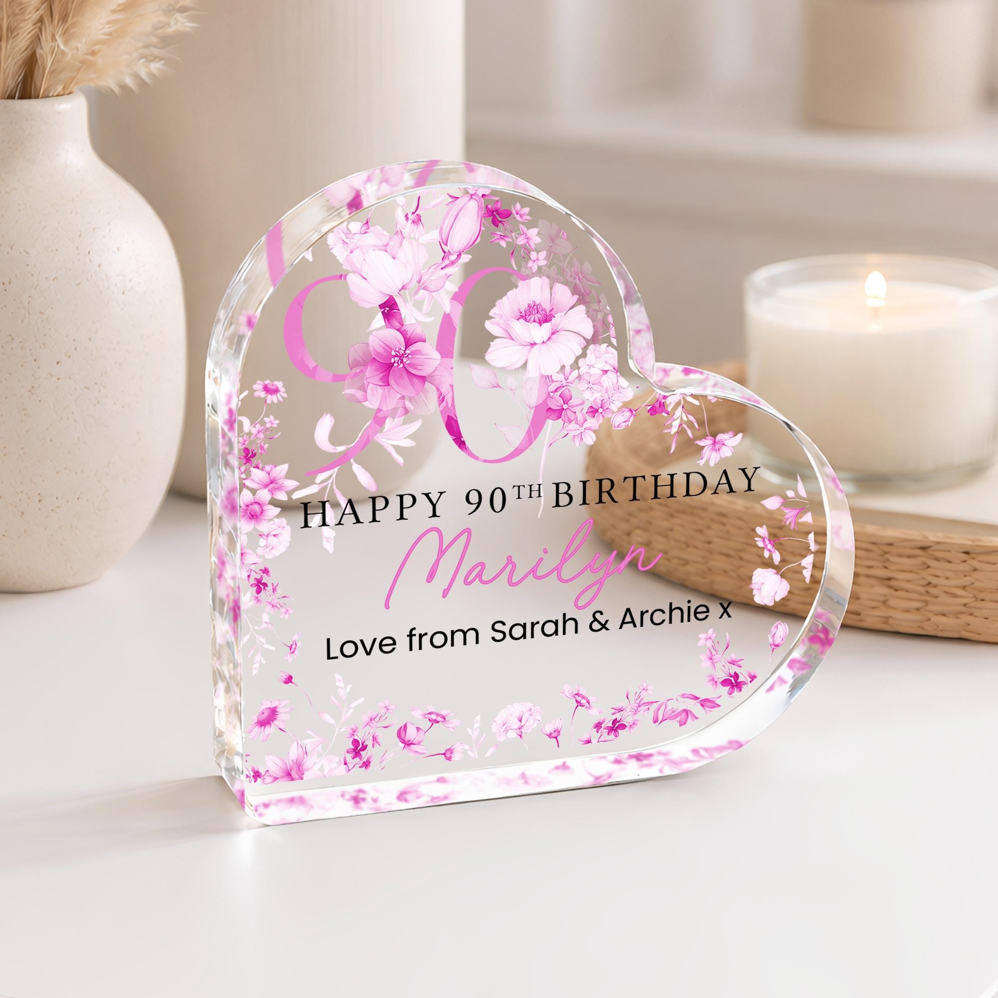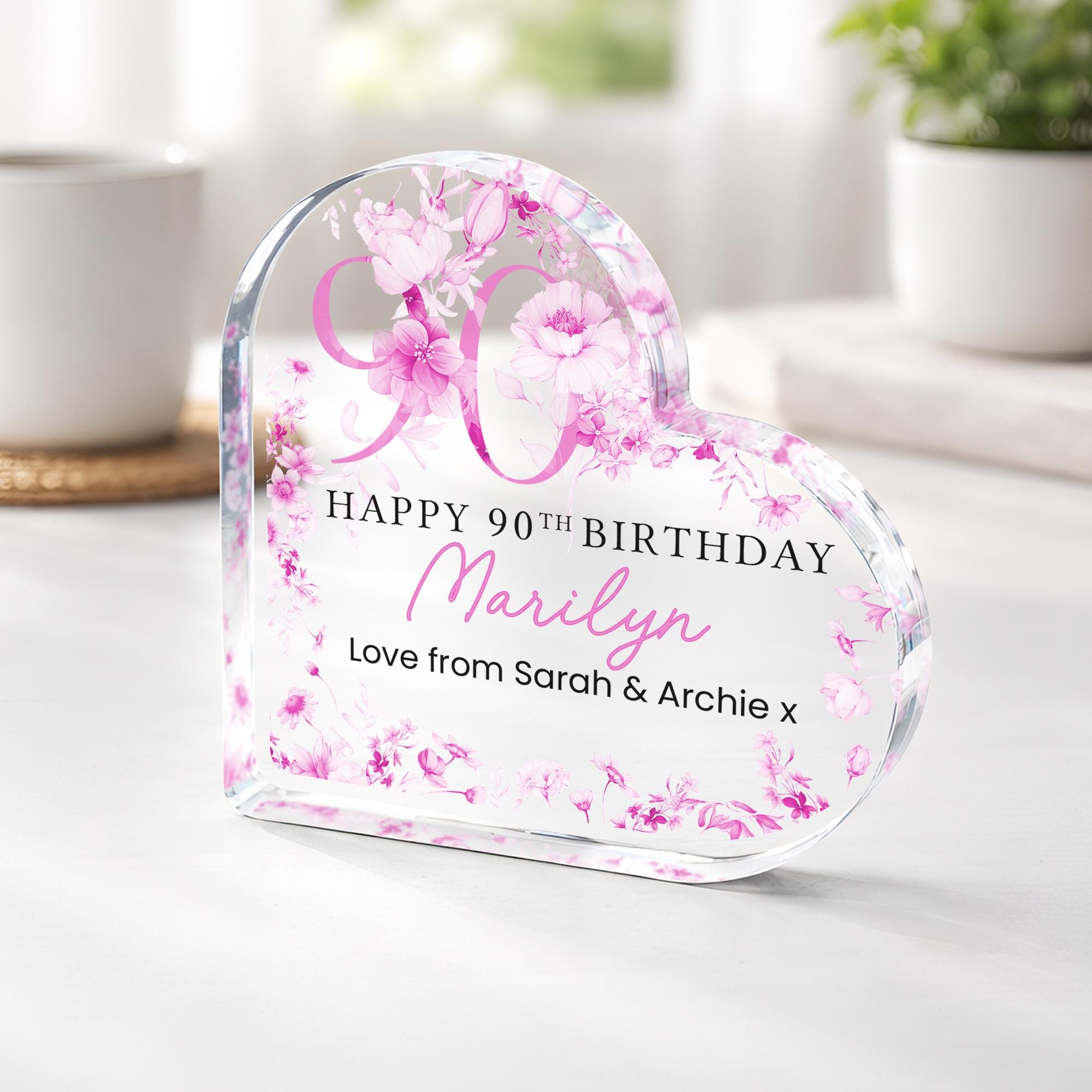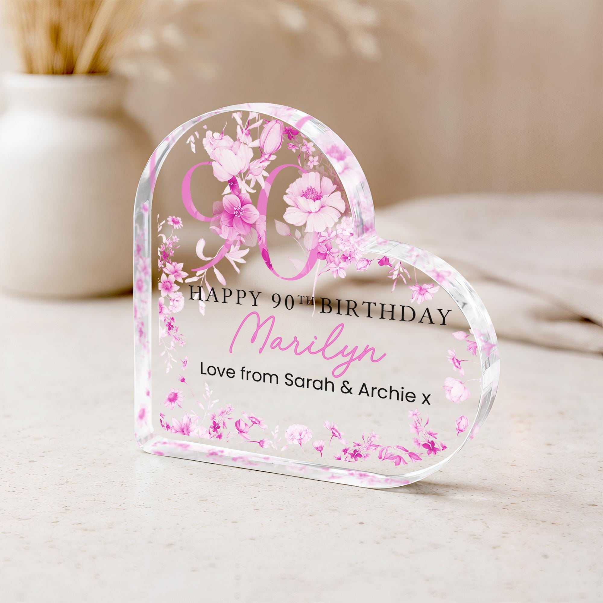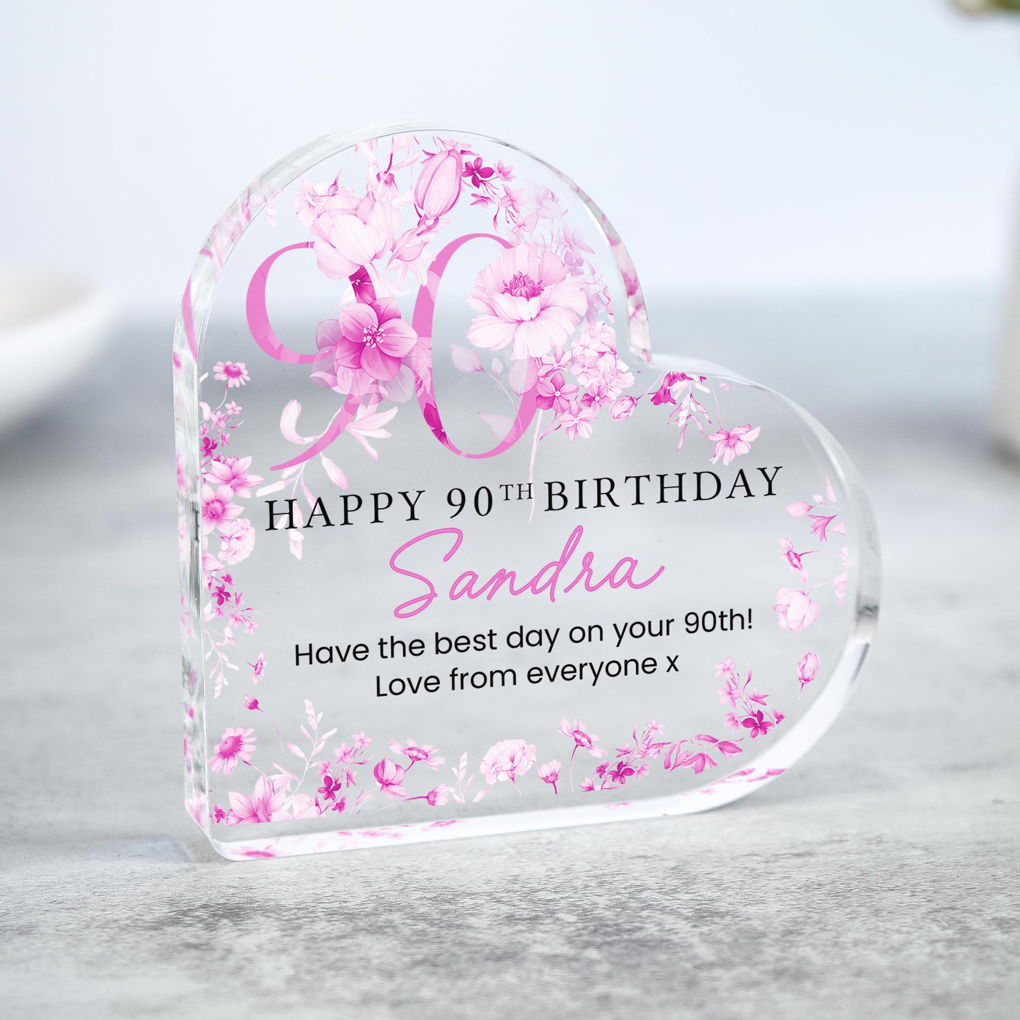 Personalised Acrylic Floral 90th Birthday Gift Plaque for Mum From Daughter/Son