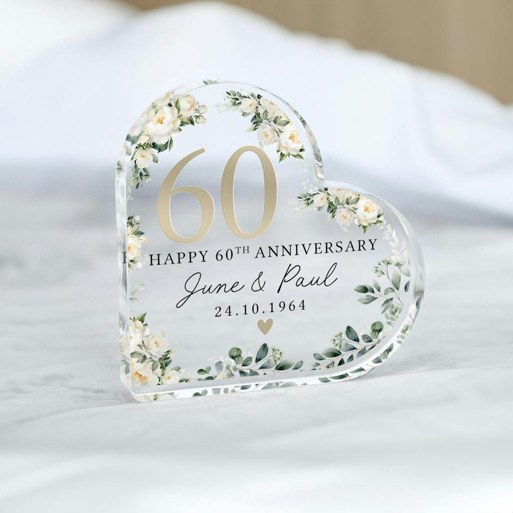 Personalised Floral 60th Anniversary Gift - Diamond Anniversary Plaque