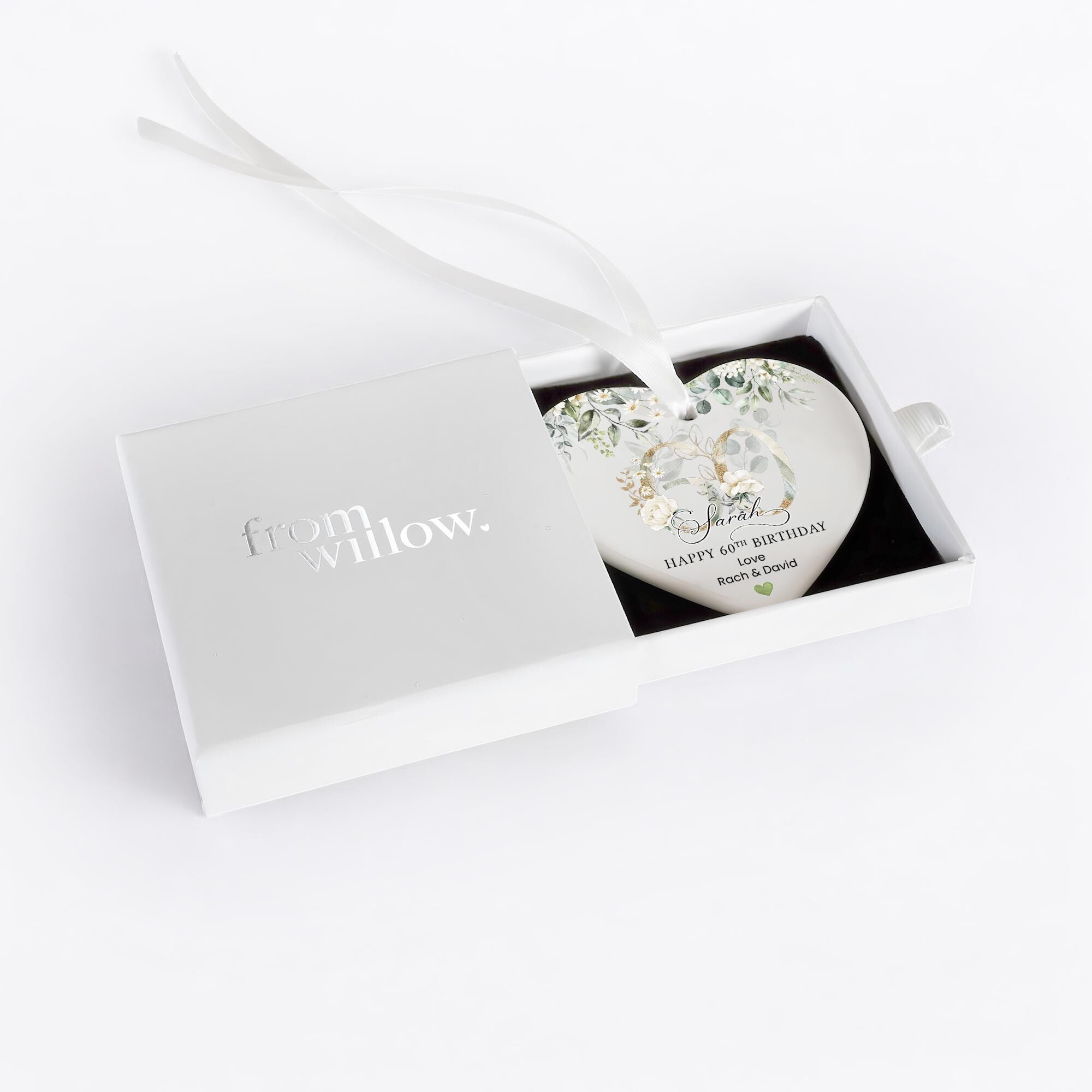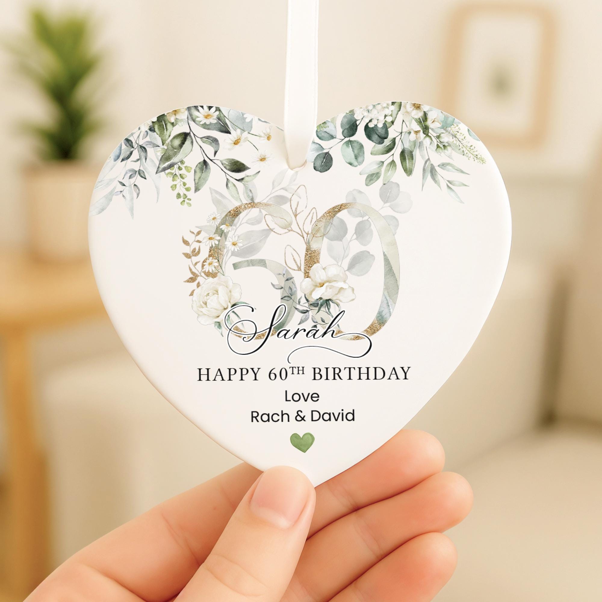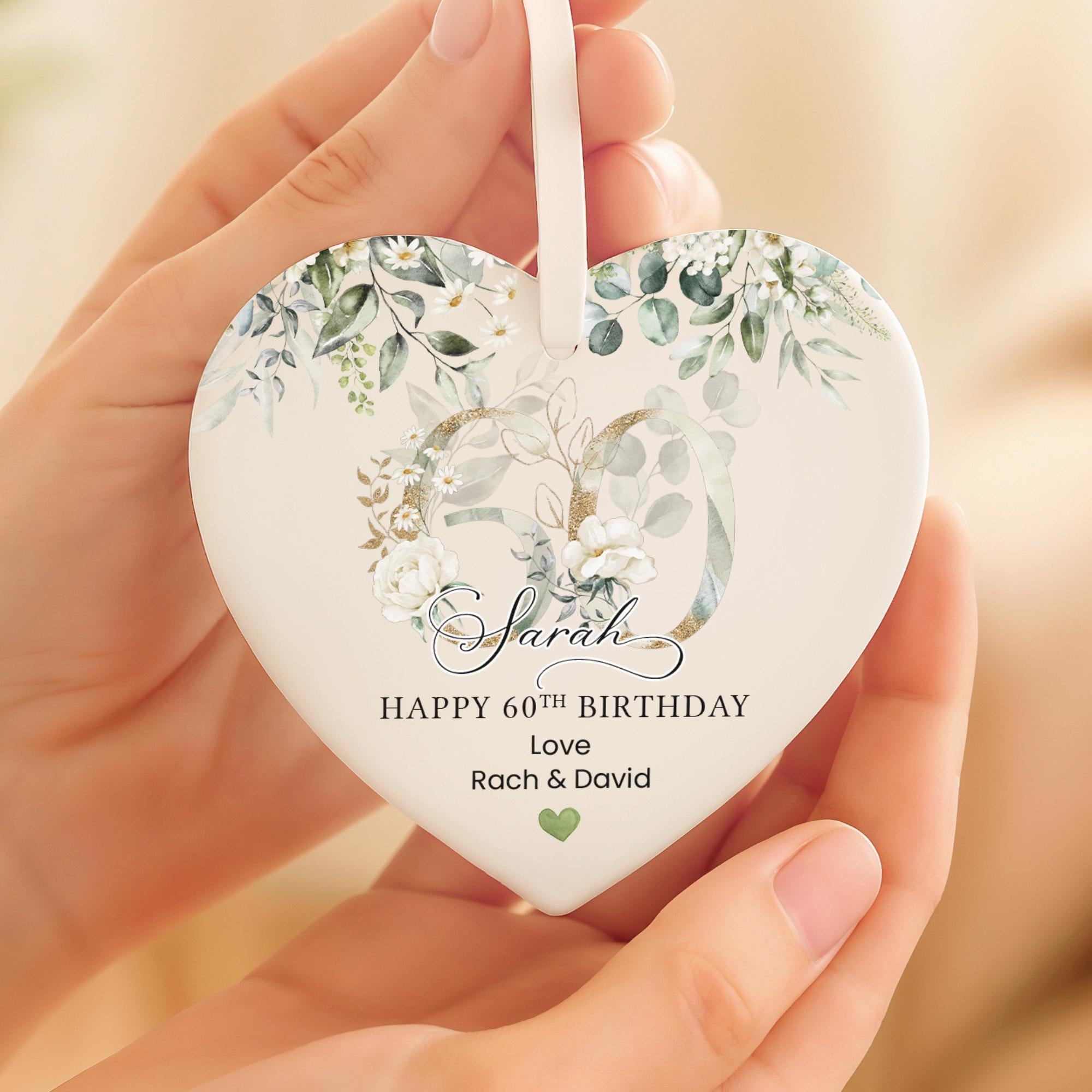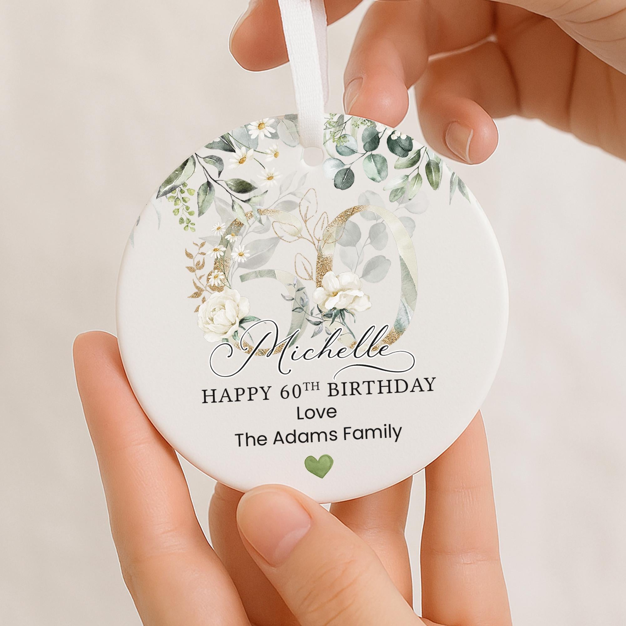 Personalised Happy 60th Birthday Ceramic Gift Plaque Green Eucalyptus Floral