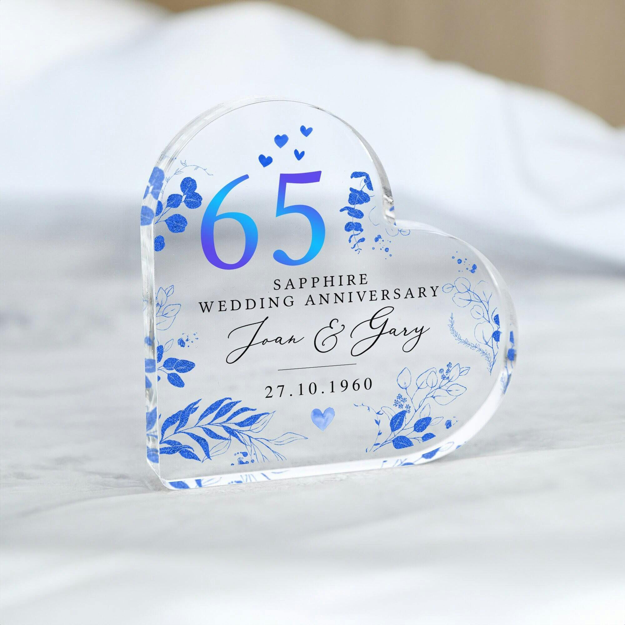 Personalised Sapphire Anniversary 65th Anniversary Heart Plaque