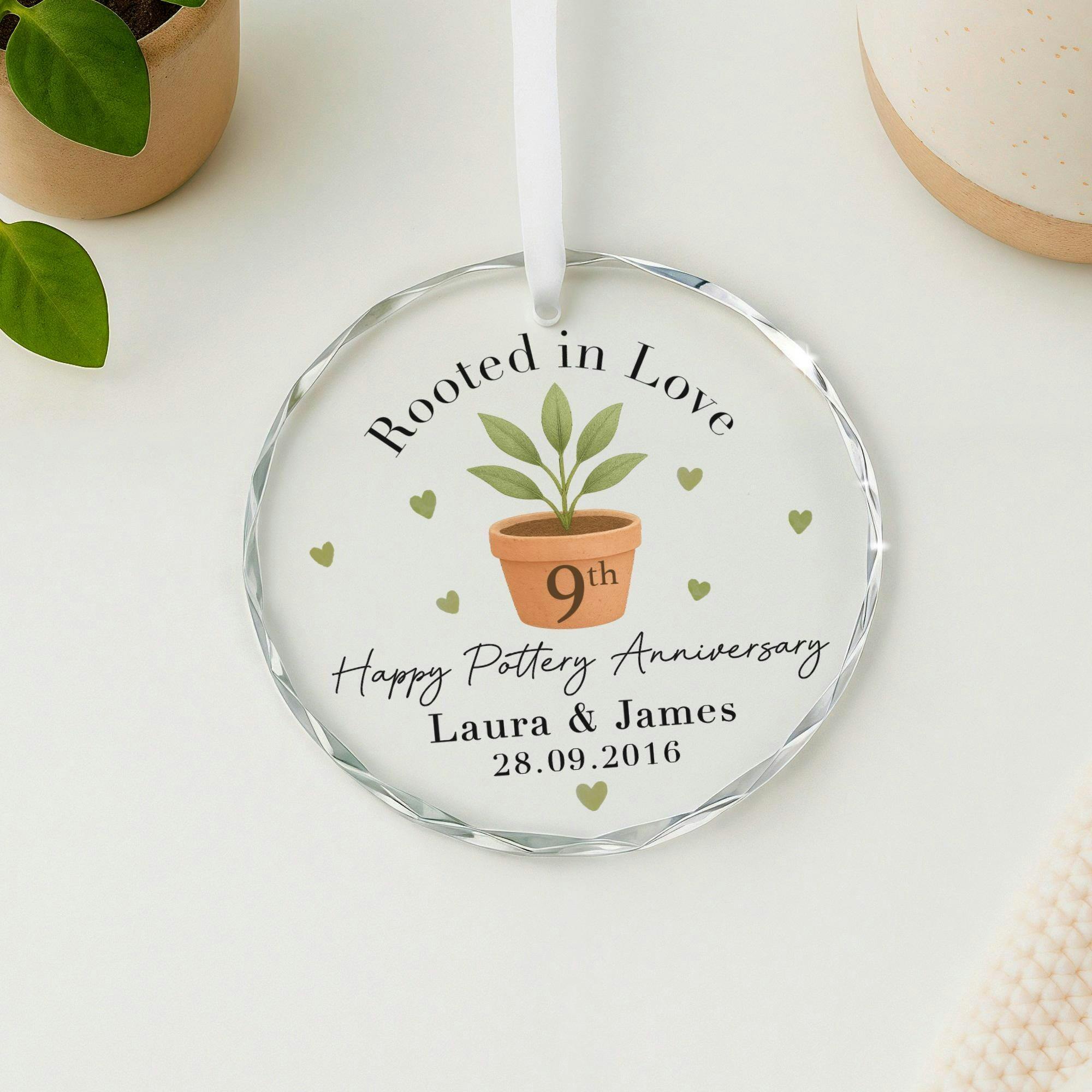 Personalised 9th Pottery Anniversary Glass Ornament Keepsake GIft