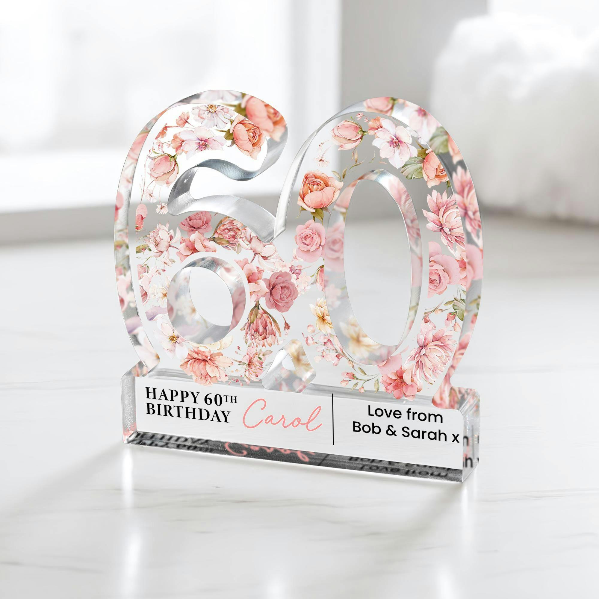 Personalised Pink Floral 60th Birthday Gift Plaque