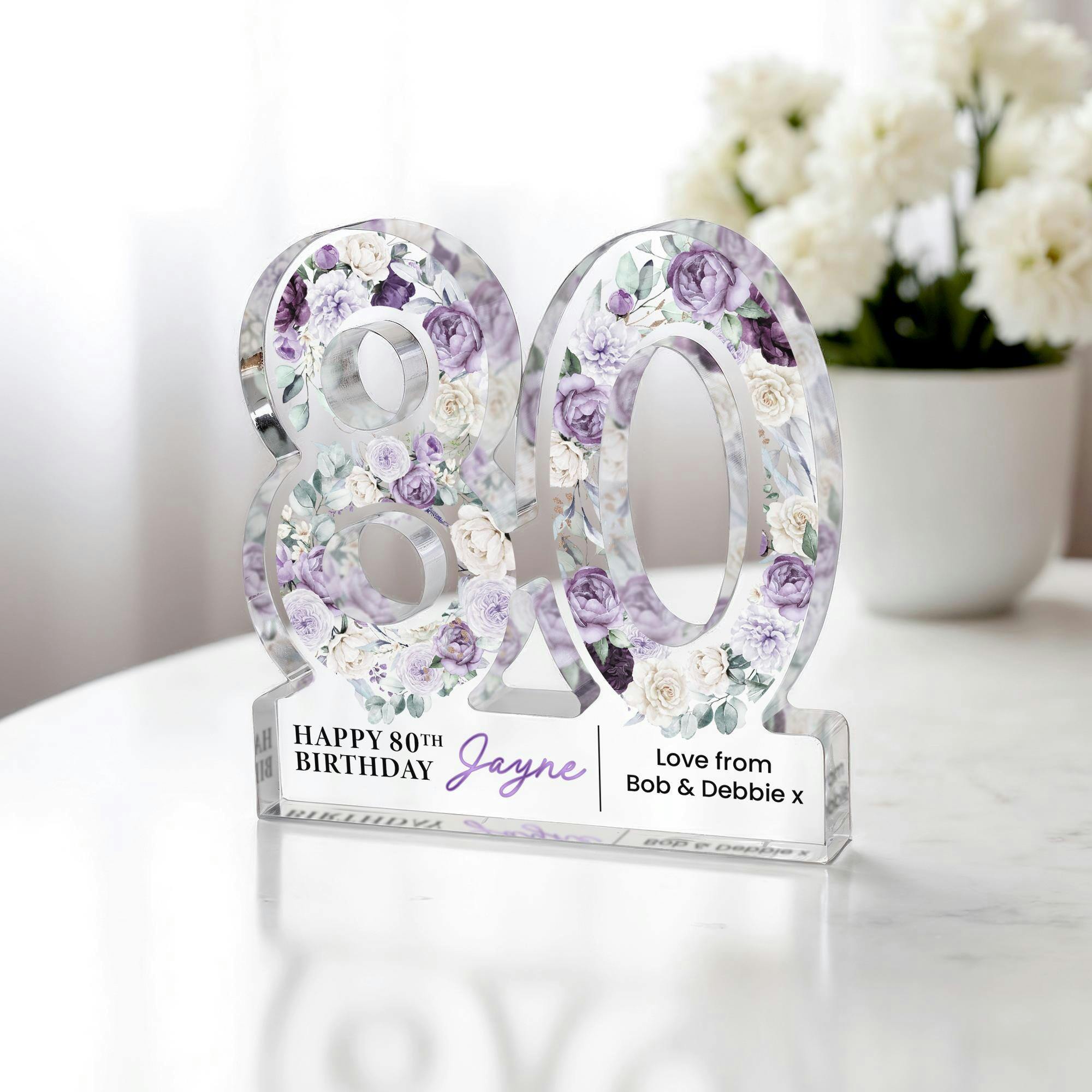 Personalised Lavender Flower 80th Birthday Gift Plaque