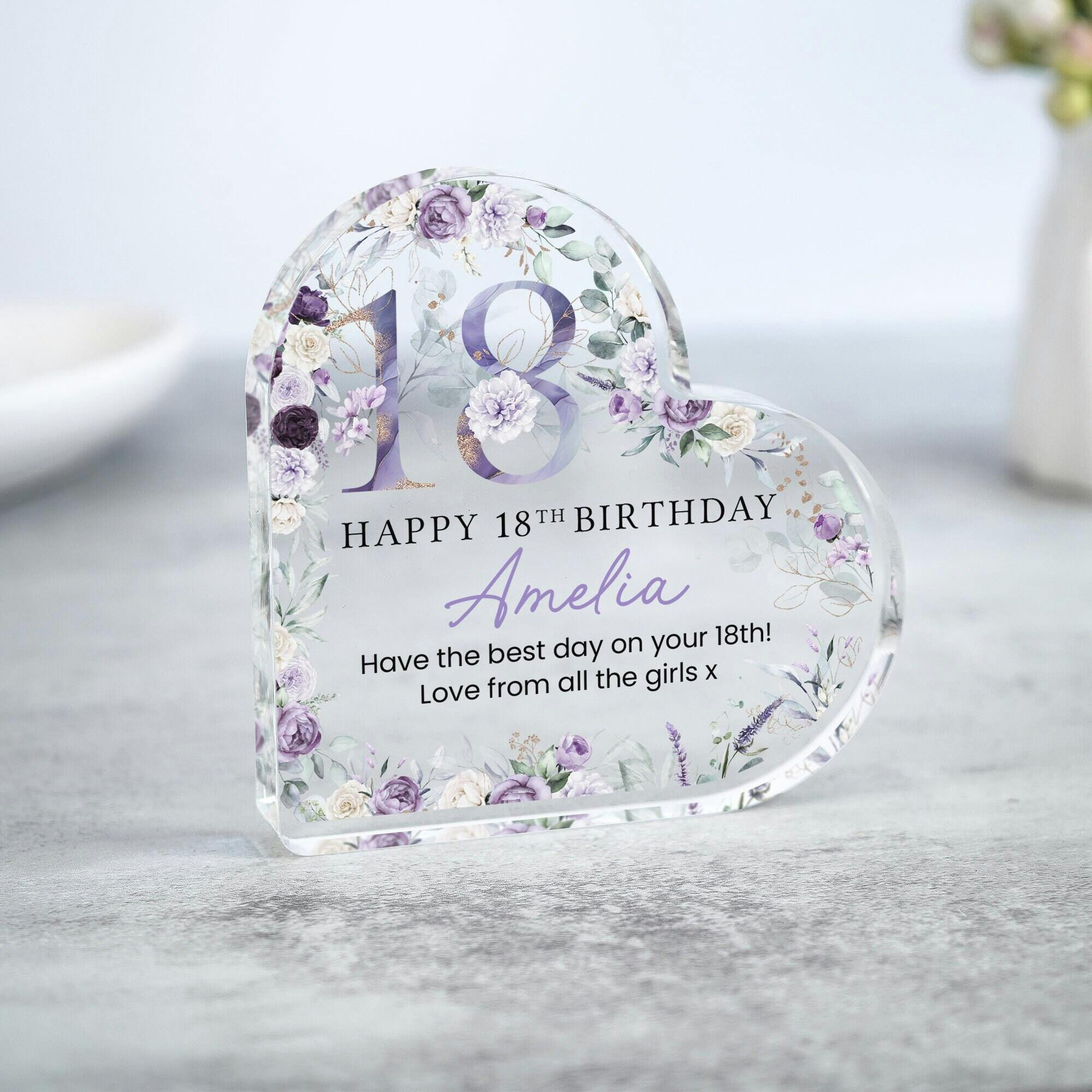 Personalised Purple Floral Happy 18th Birthday Gift Plaque