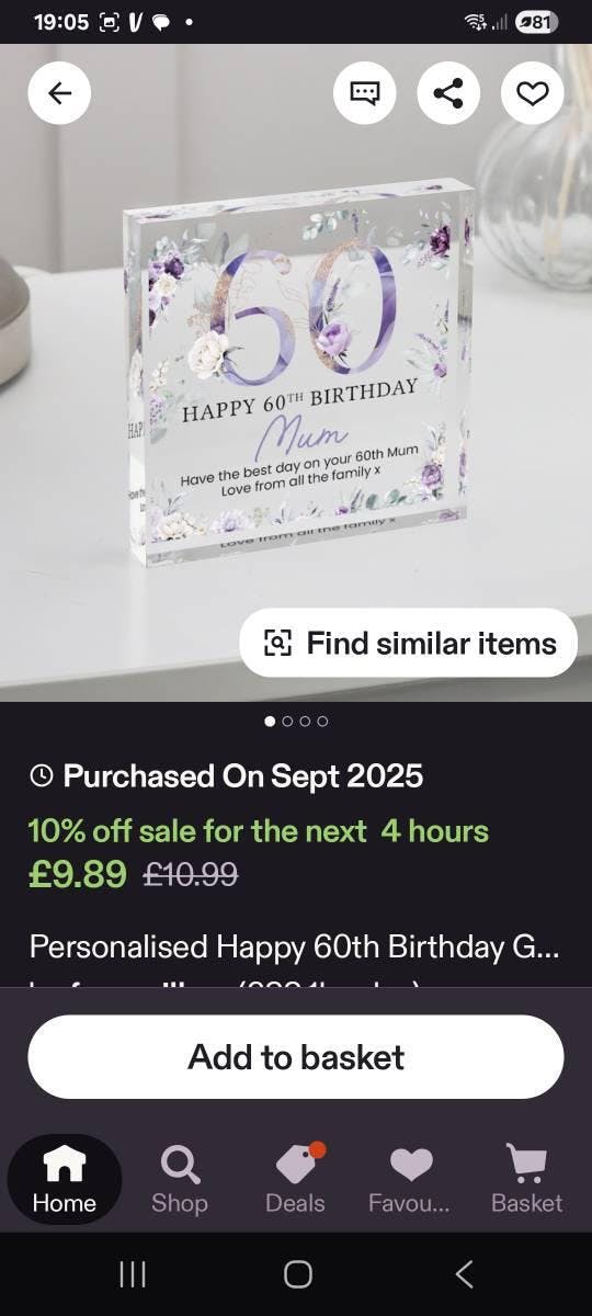 'HAPPY 60th BIRTHDAY' is printed as standard above name, only message is required for underneath