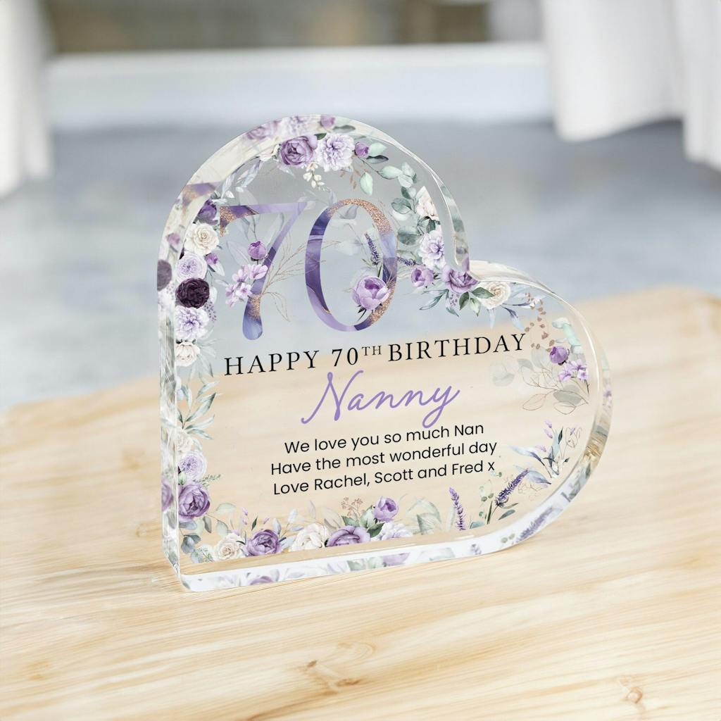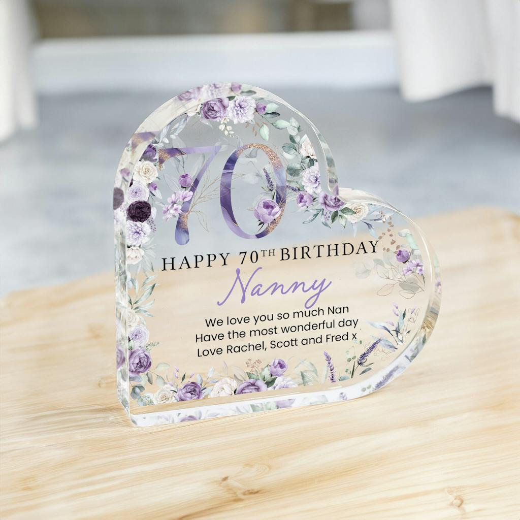 Personalised Purple Floral Happy 70th Birthday Gift Plaque