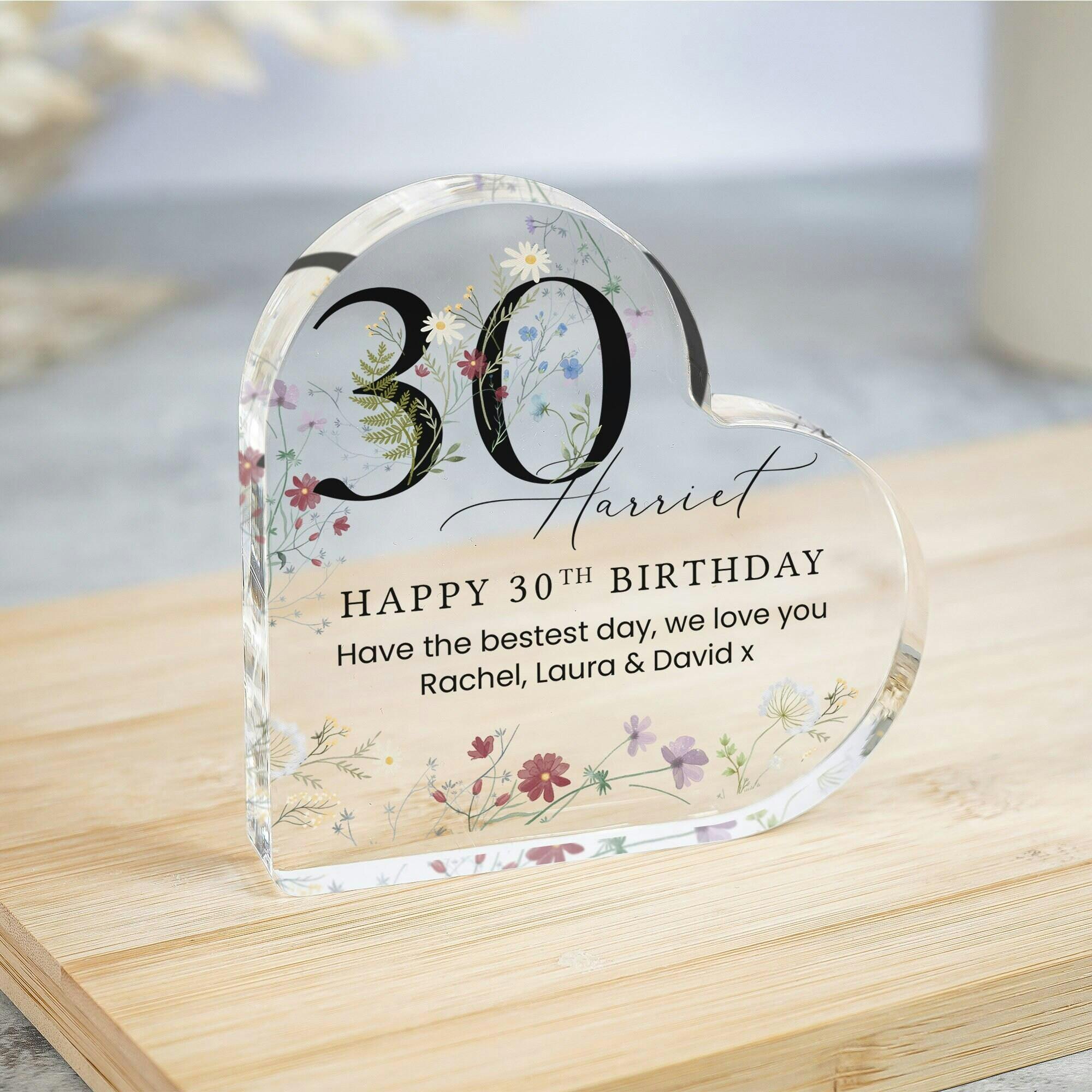 Beautiful acrylic crystal heart block personalised for the loved one on their Birthday!
