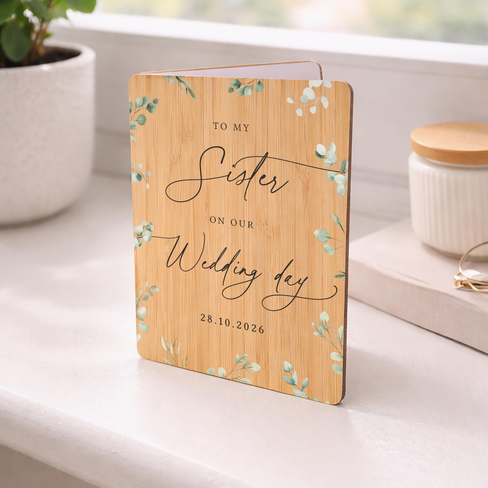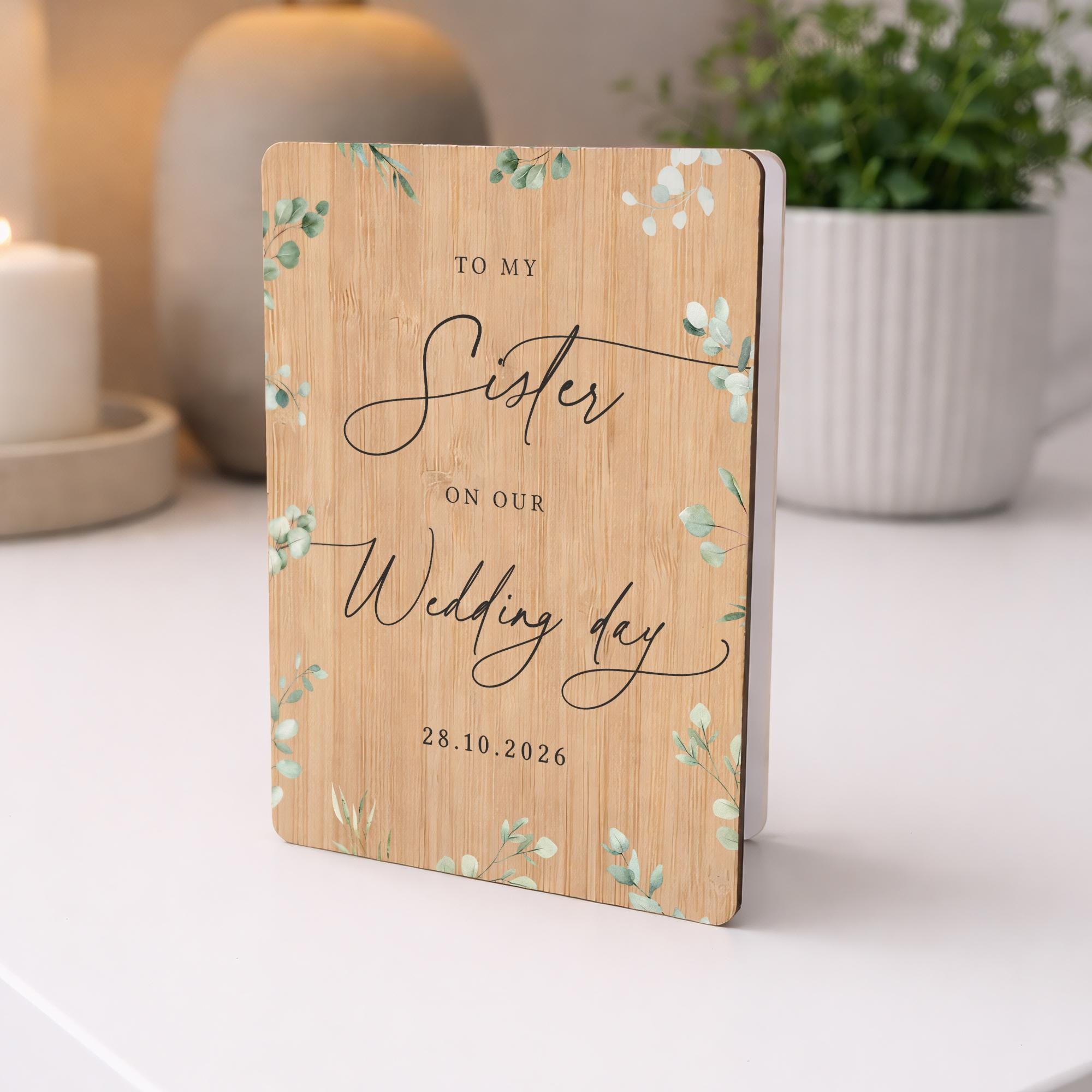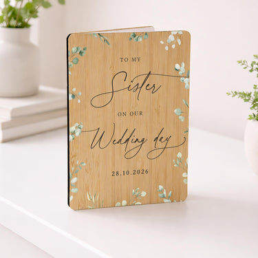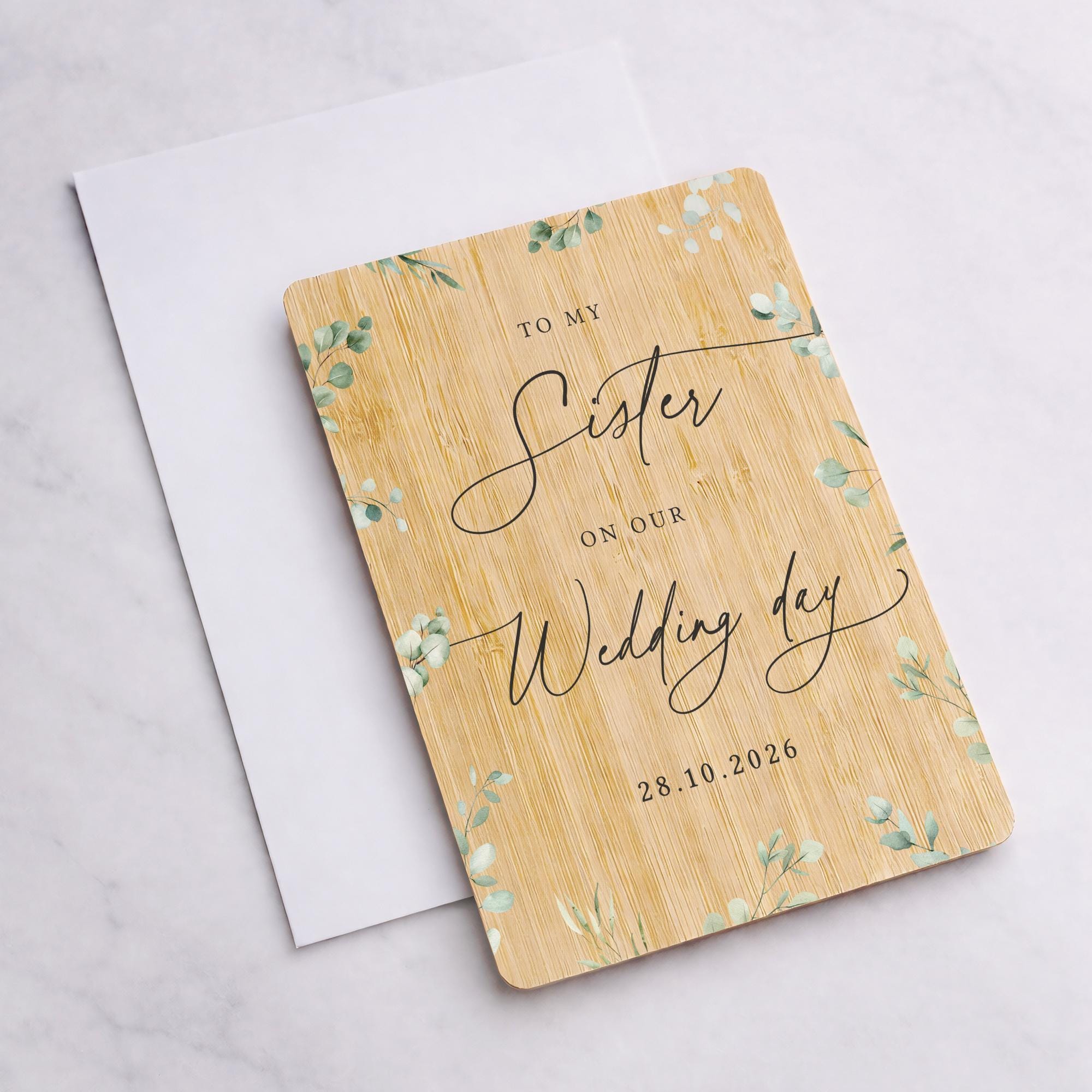 Personalised Thank You Wedding Sister Card from Groom / Bride Bamboo Wood