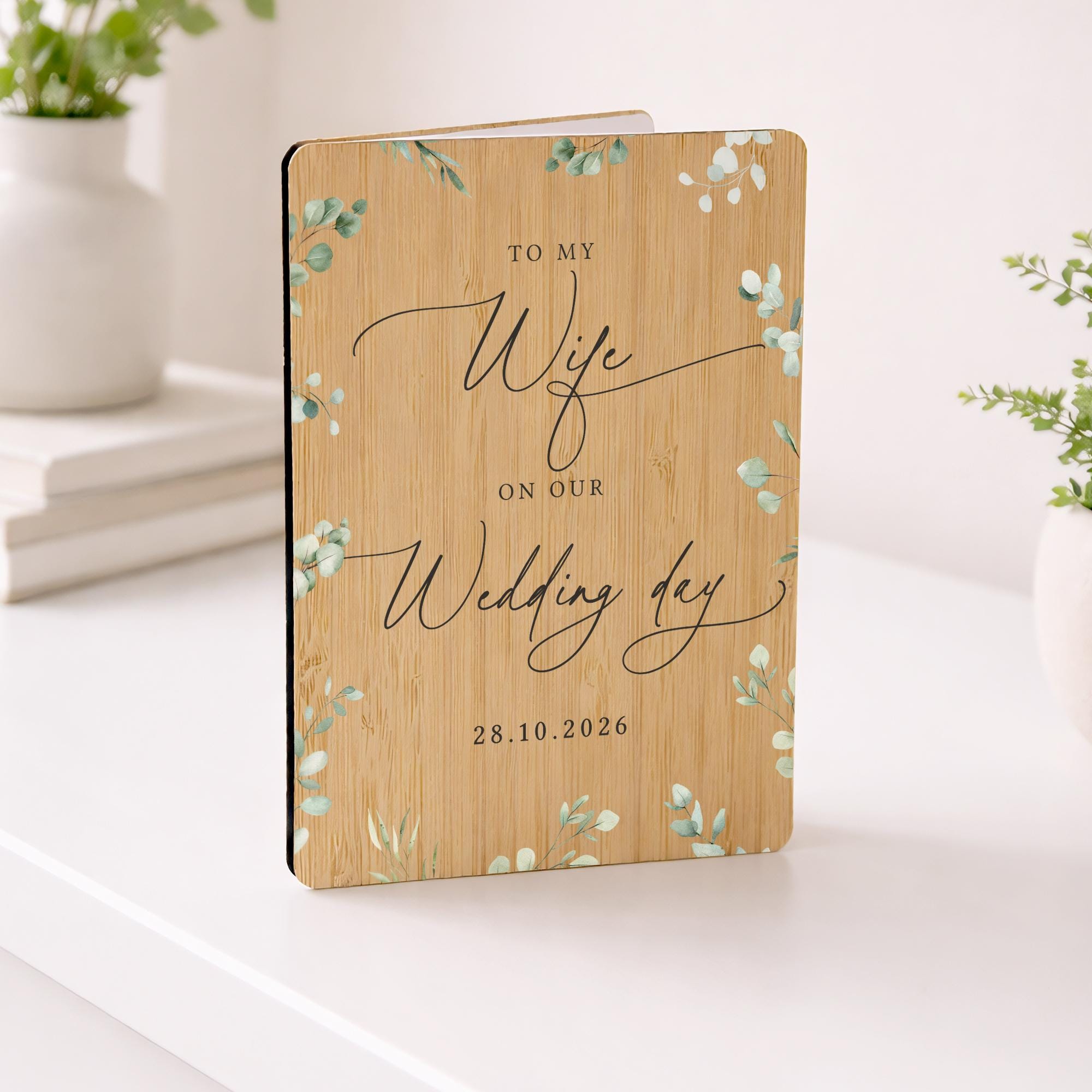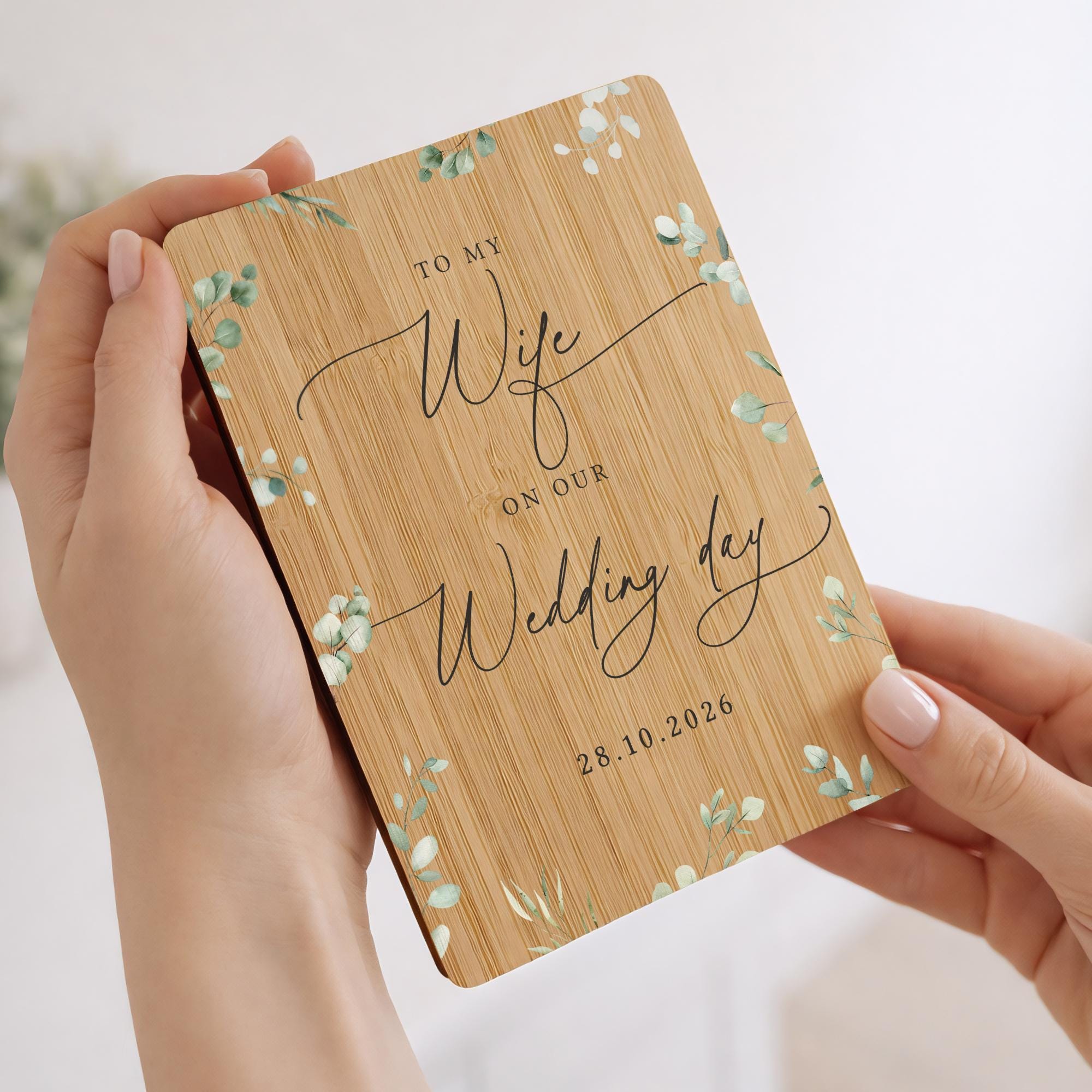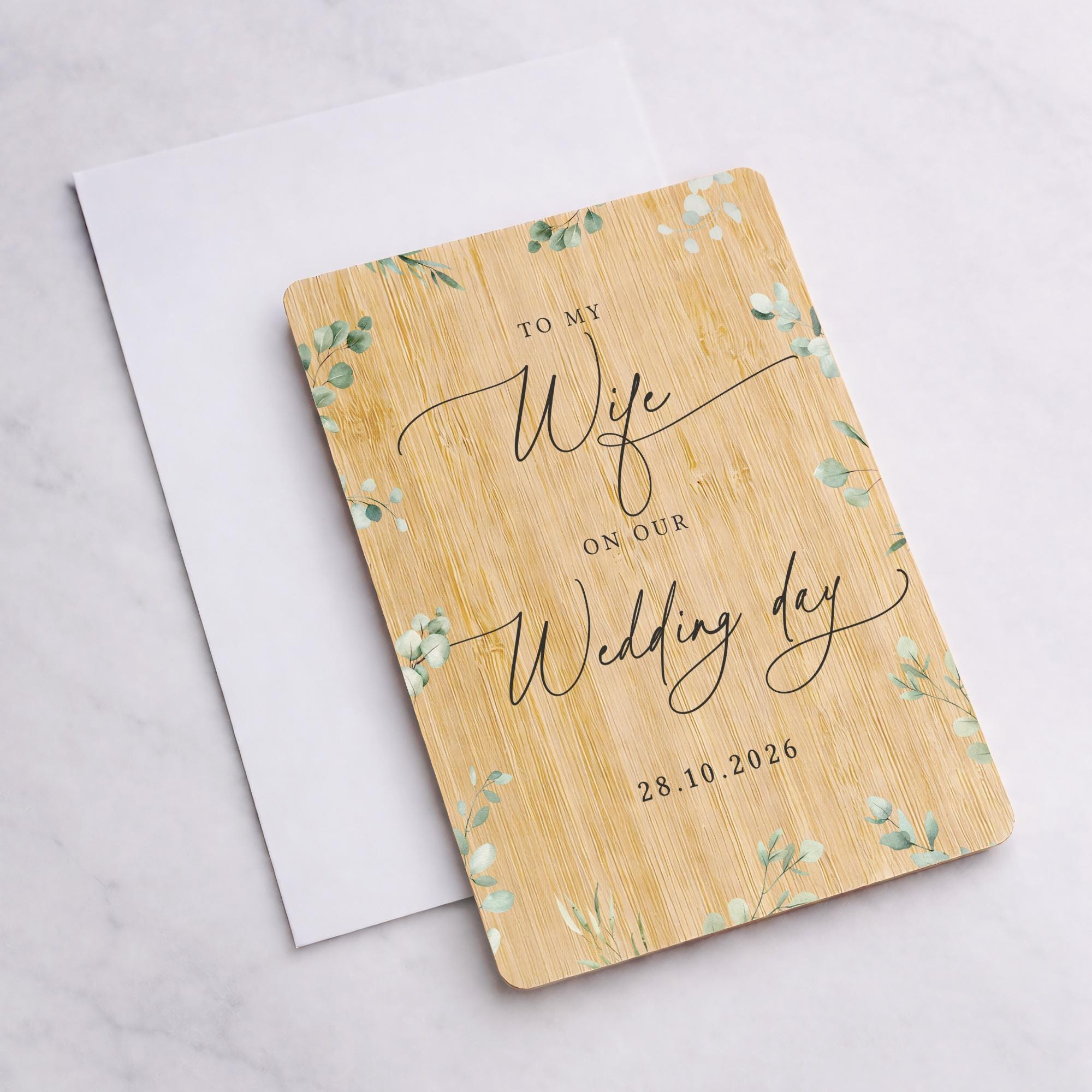 Each card is beautifully crafted with a natural bamboo wood front and back, creating a unique keepsake that feels extra special. Inside, you’ll find a smooth blank white card insert inside, giving you plenty of space to add your own heartfelt message for that special occasion.