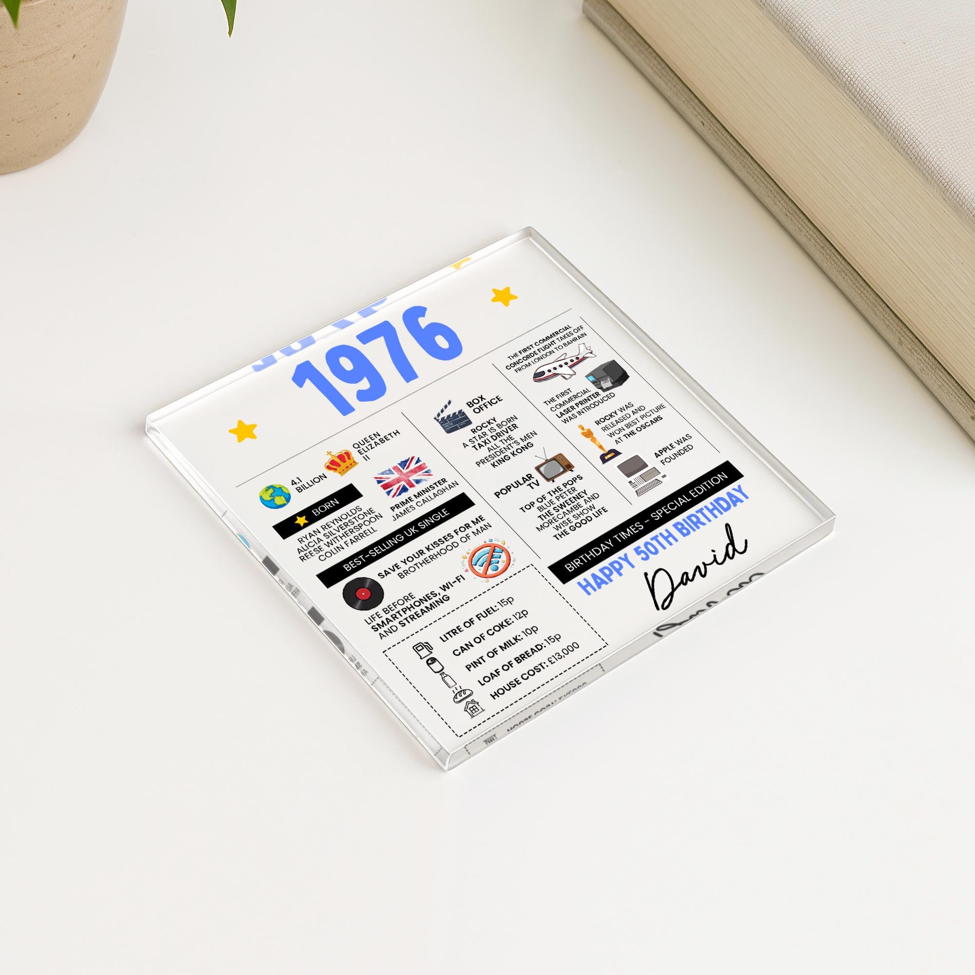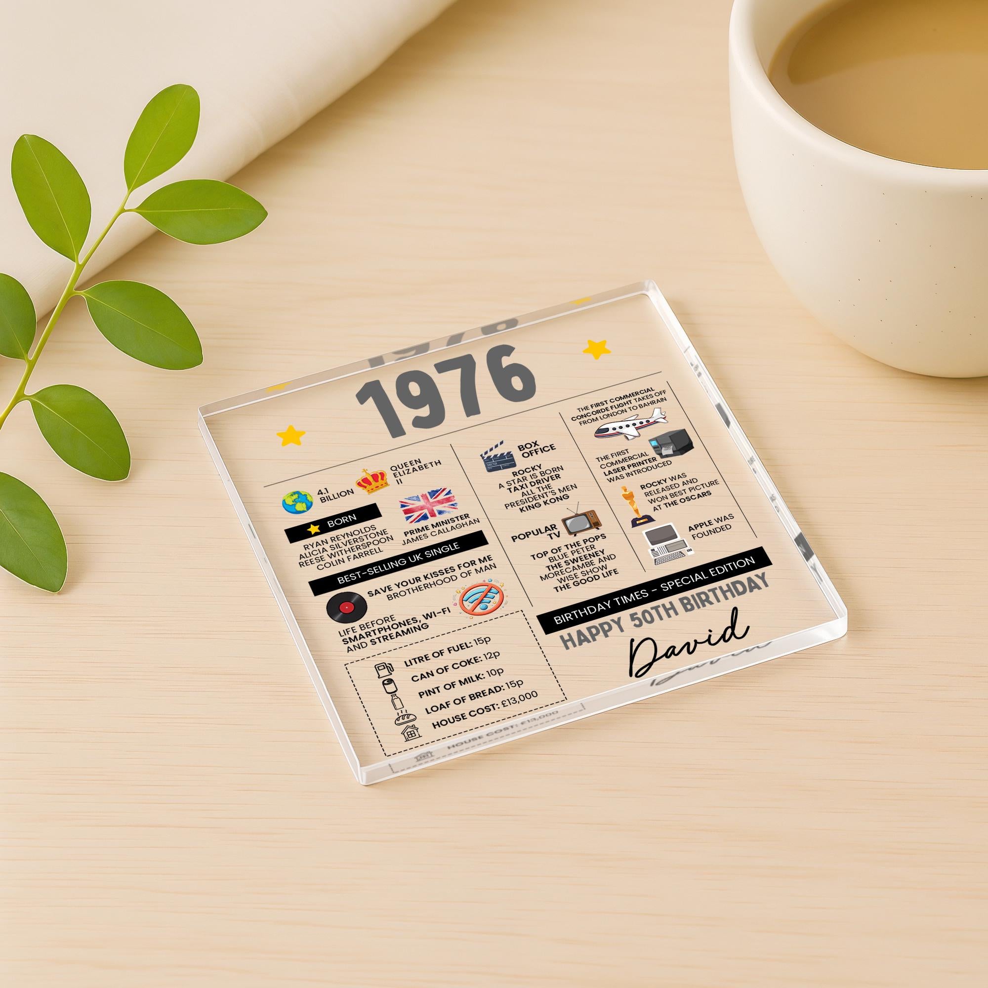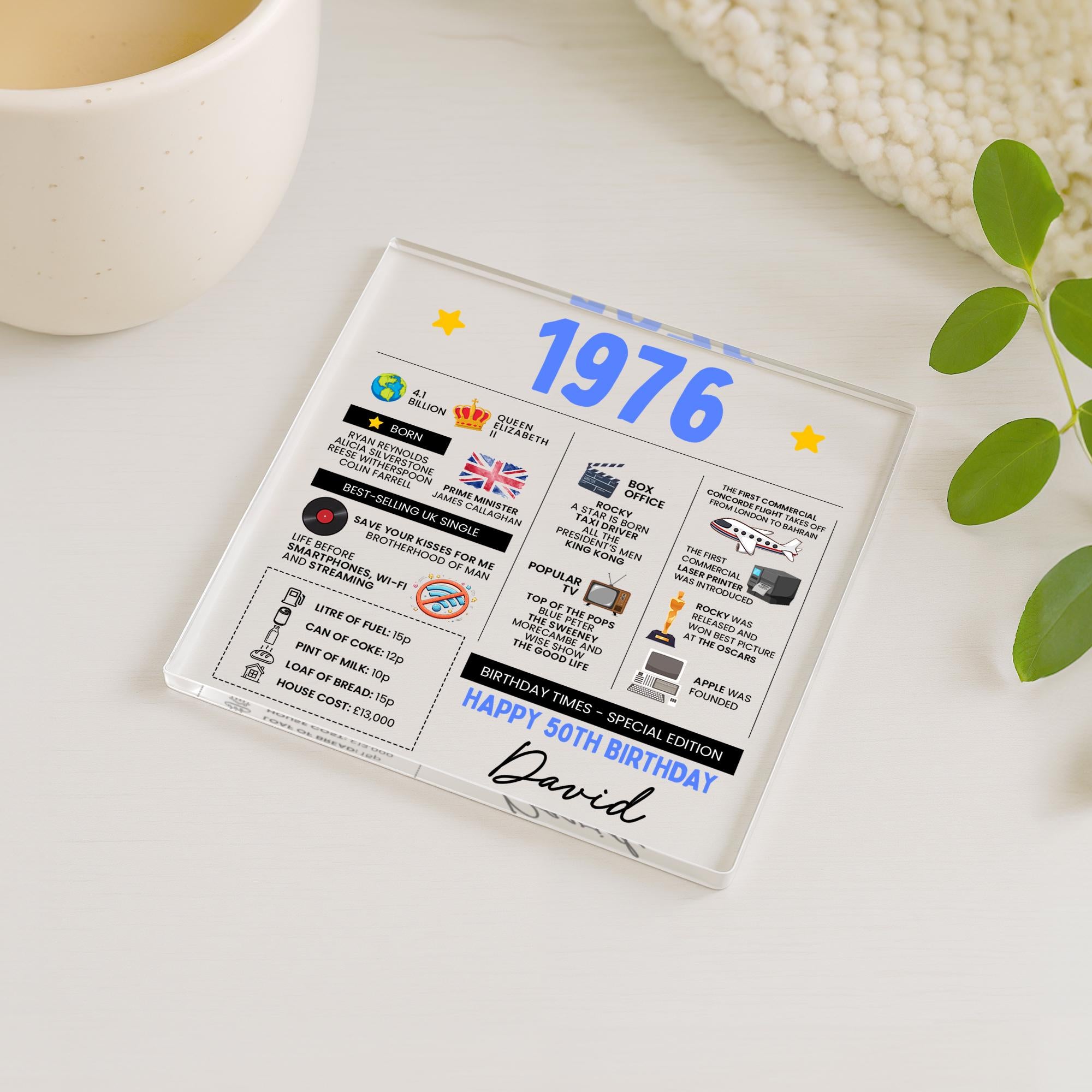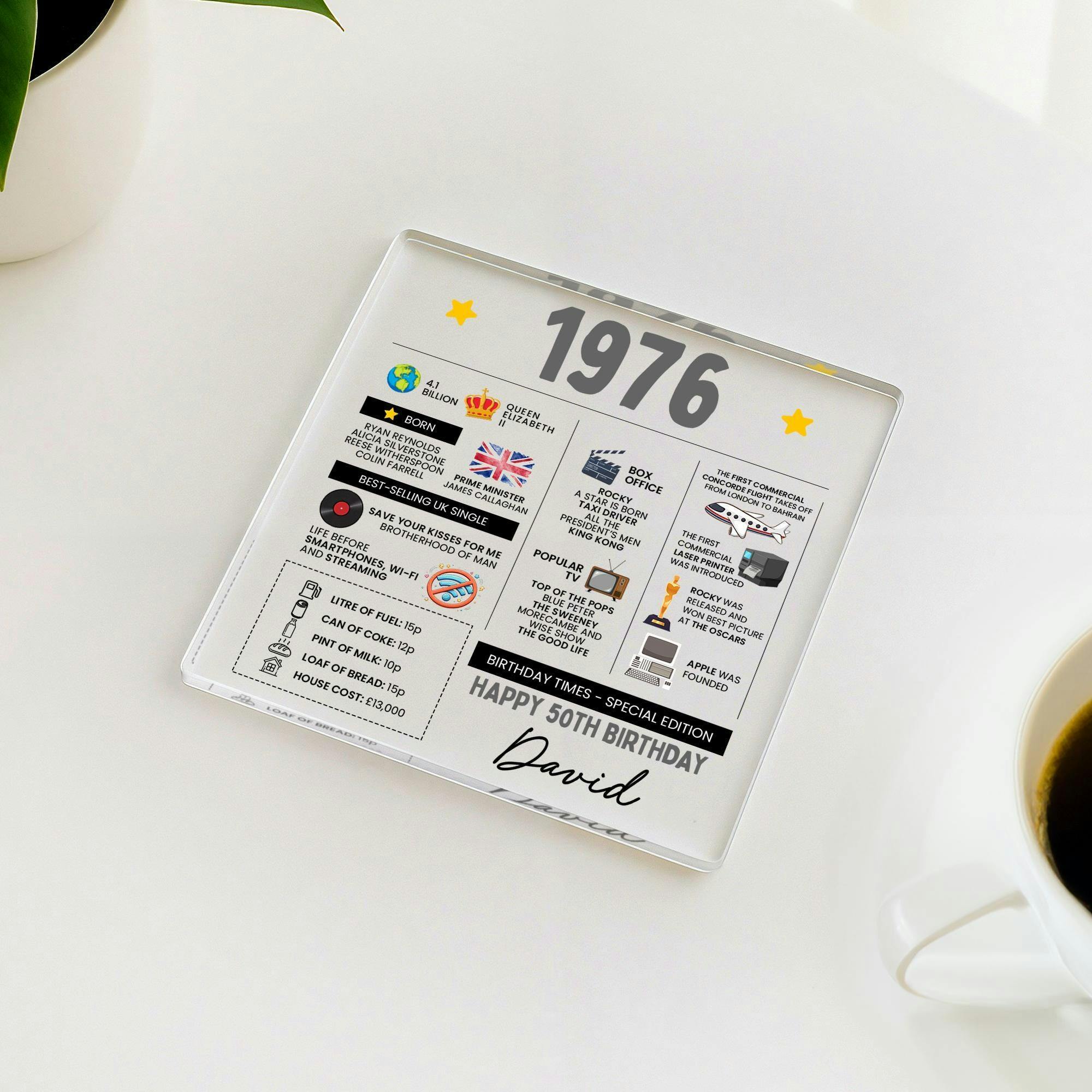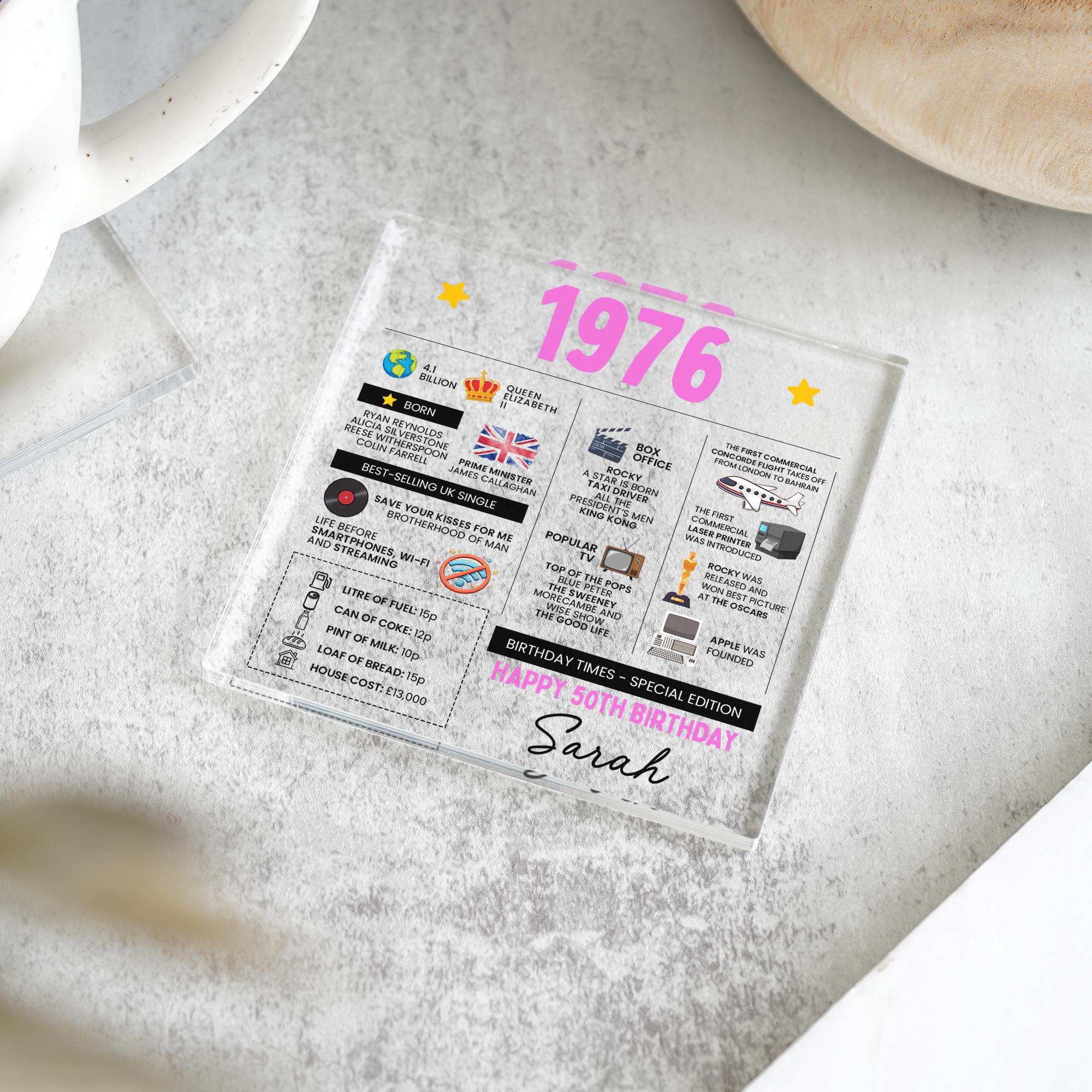 Personalized 50th Birthday Fun Facts Acrylic Coaster, Born in 1976 Gift for Mum Dad