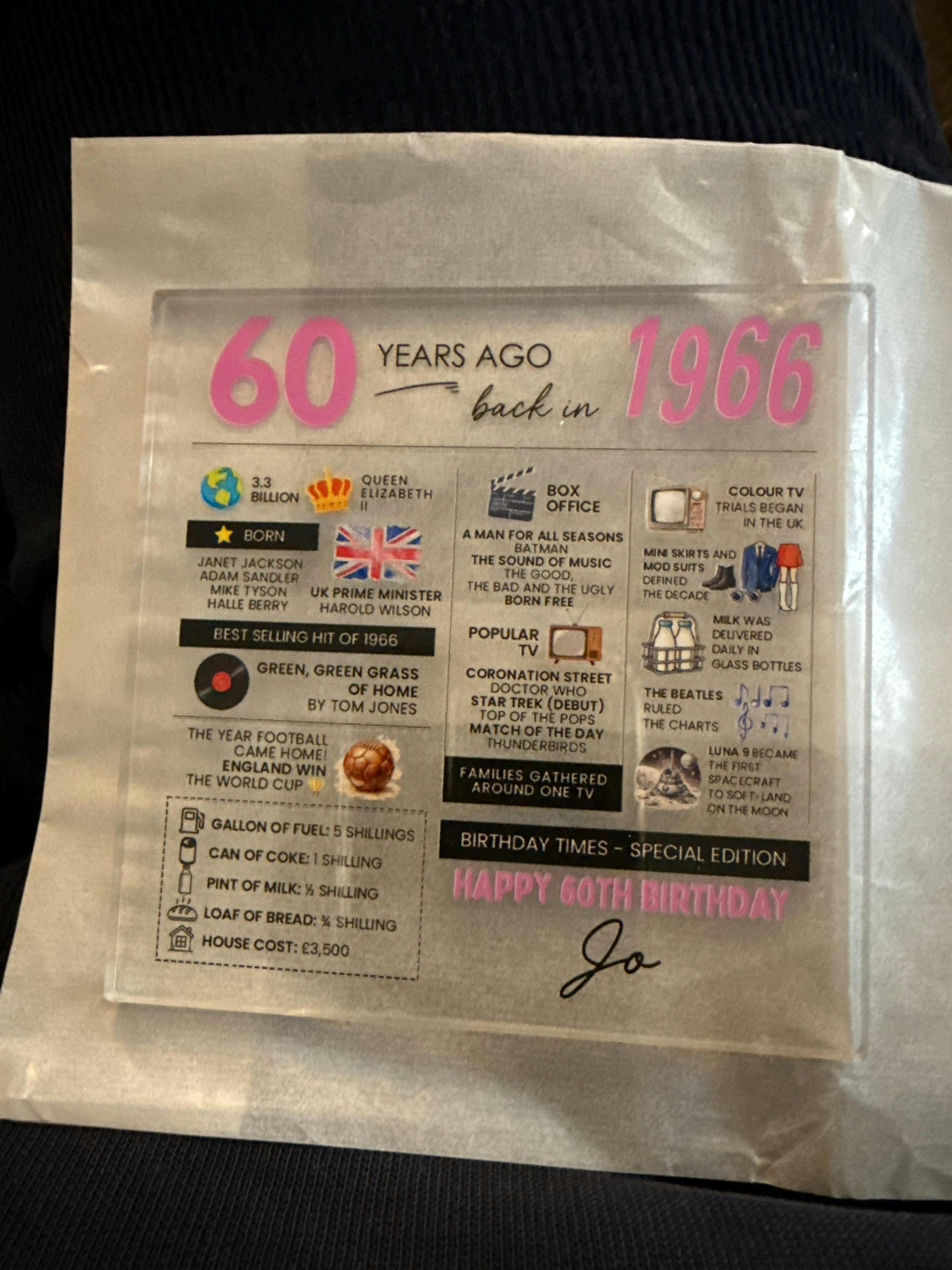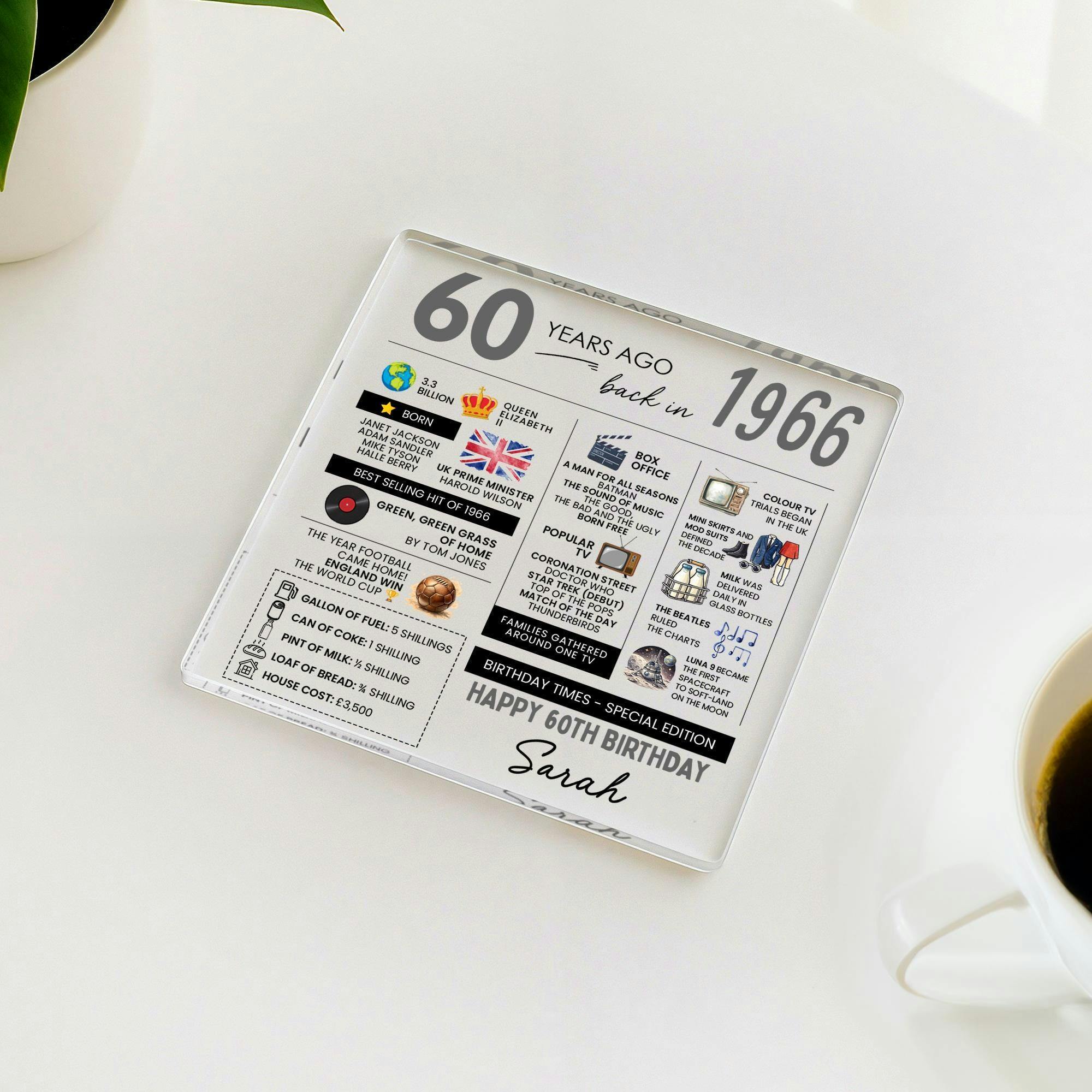 Personalised 60th Birthday Coaster Fun Facts Born in 1966 Birthday Gift for Her/Him