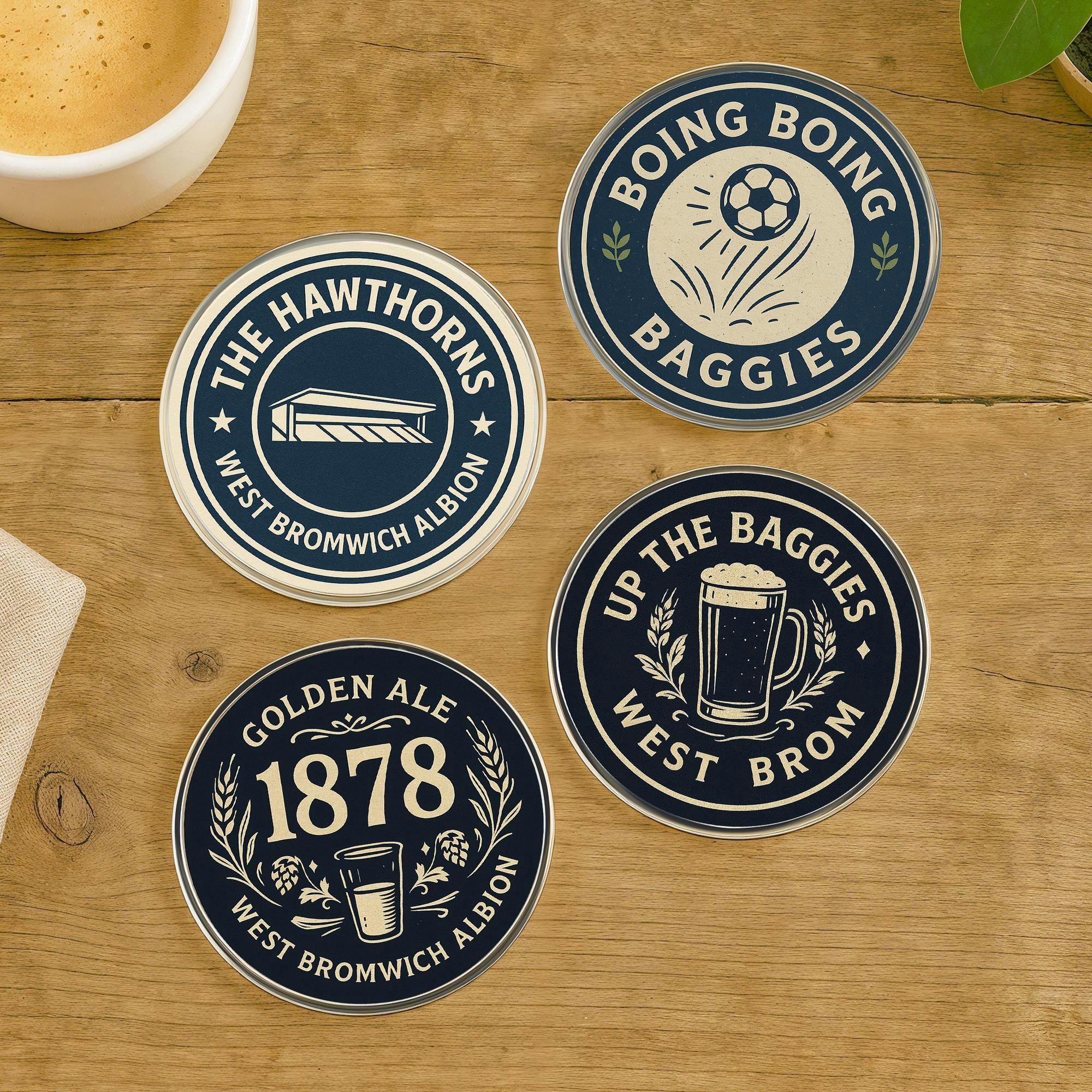 Set of 4 West Brom FC Baggies Fan Chants and Slogan Themed Clear Acrylic Coasters