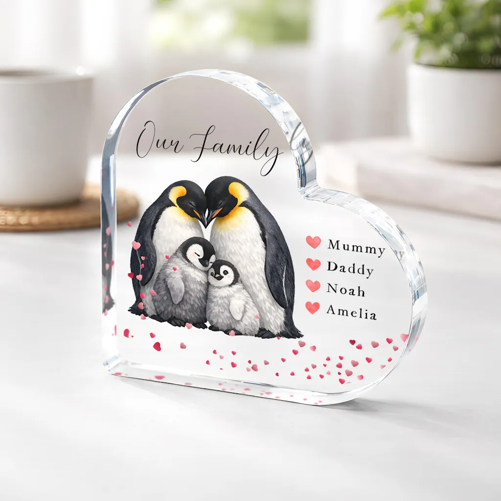 Personalised Penguin Family of 4 Gift - New Baby Family Frame