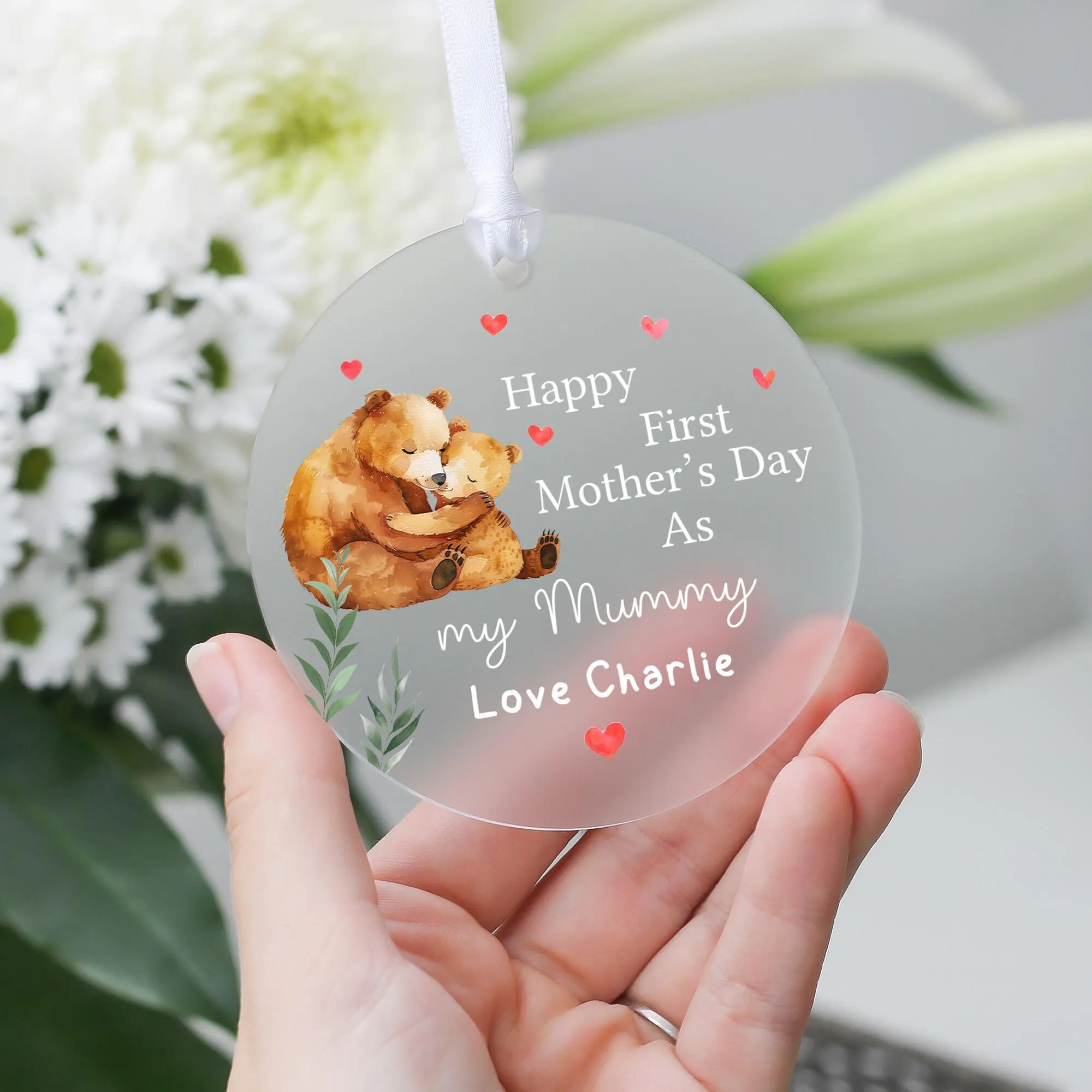 Personalised First Mother's Day Gift Baby Bear Frosted Ornament Keepsake