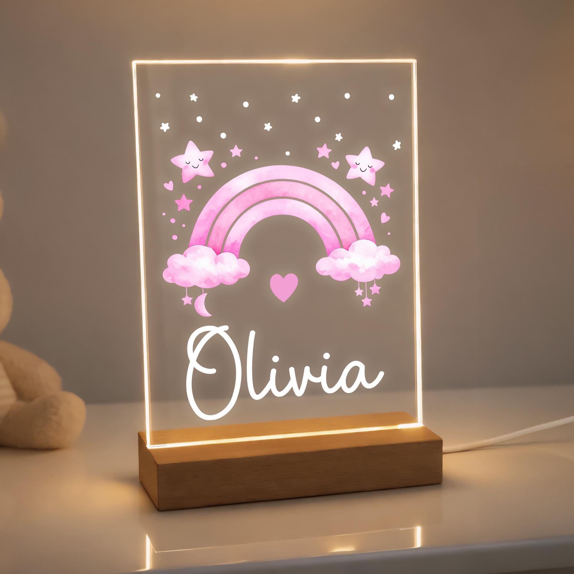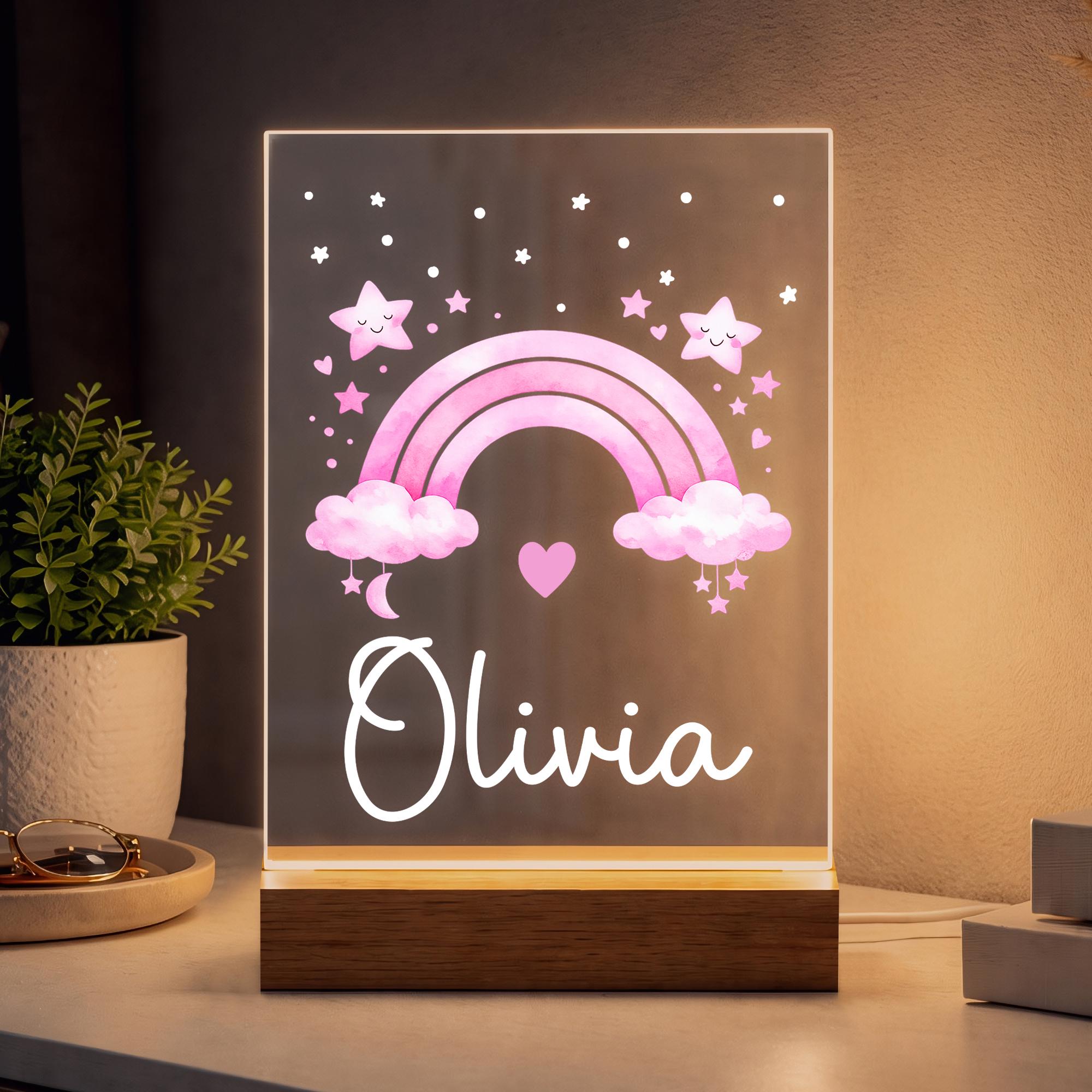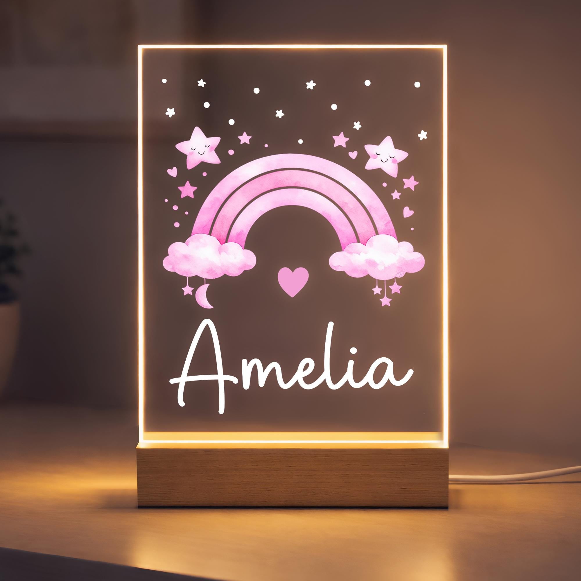 Personalised LED Kids/Baby Pink Rainbow Night Light Lamp