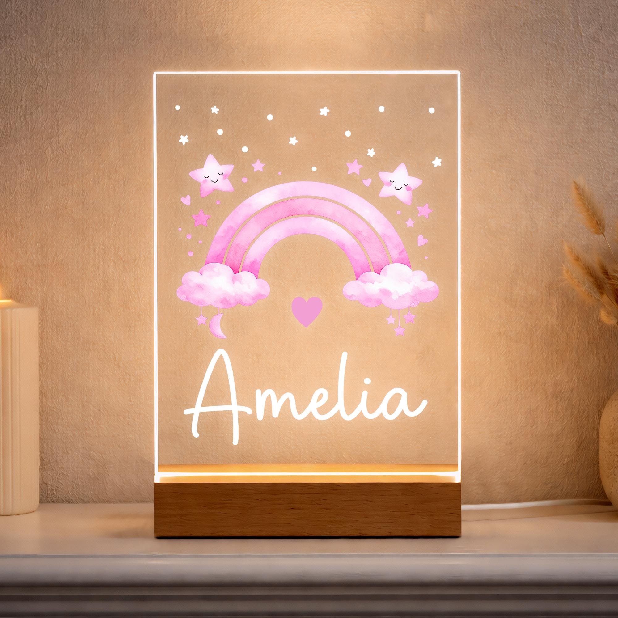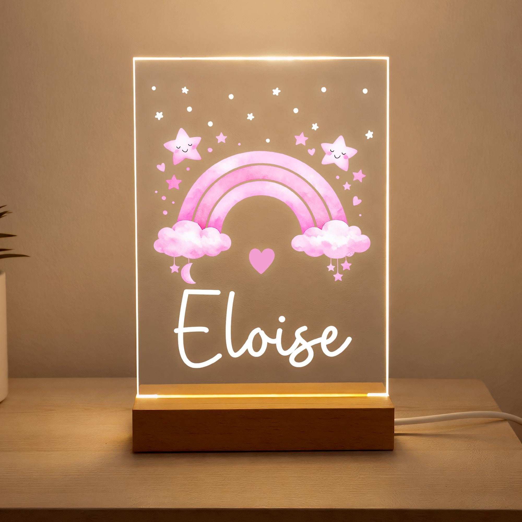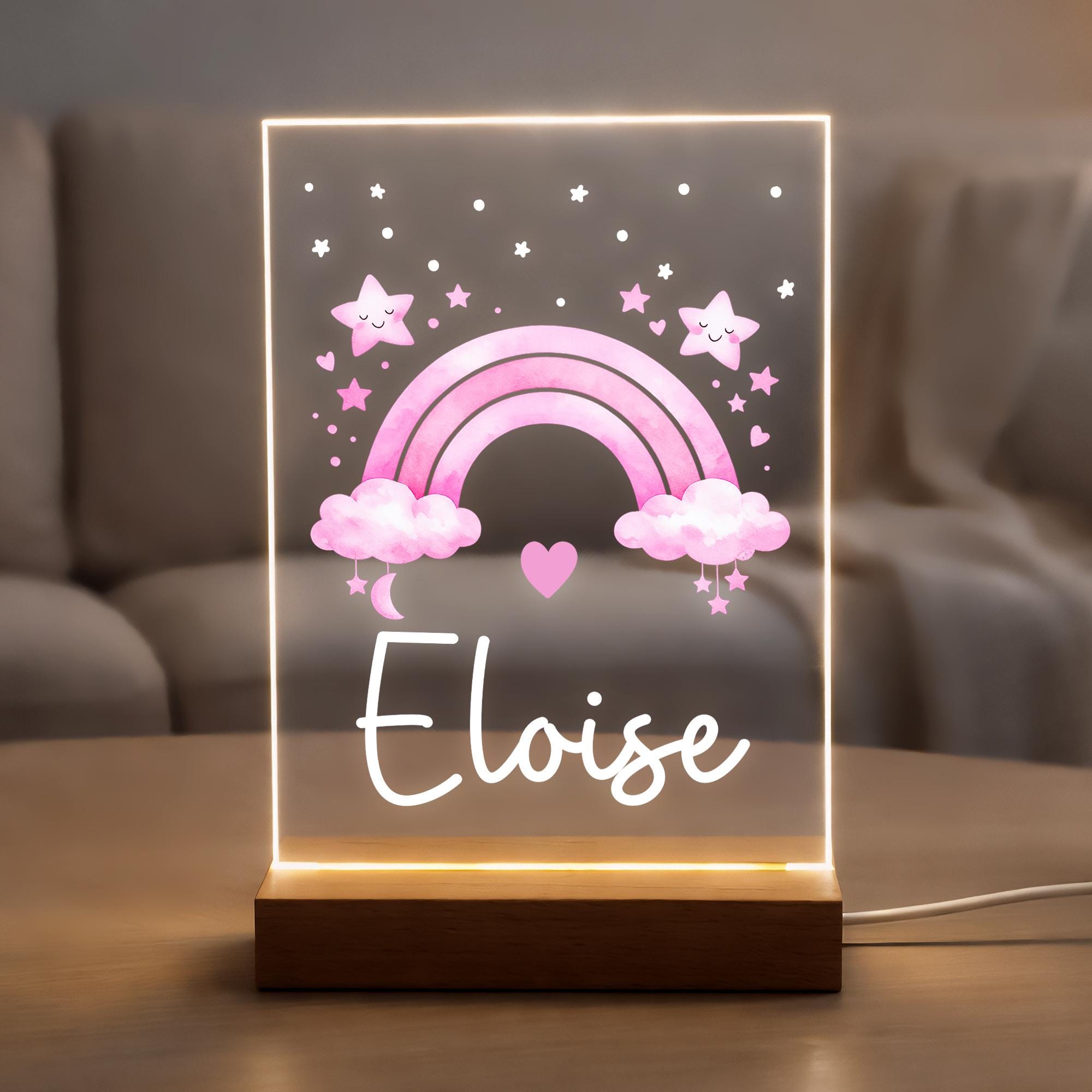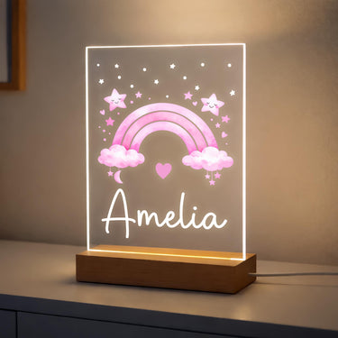 Personalised LED Kids/Baby Pink Rainbow Night Light Lamp
