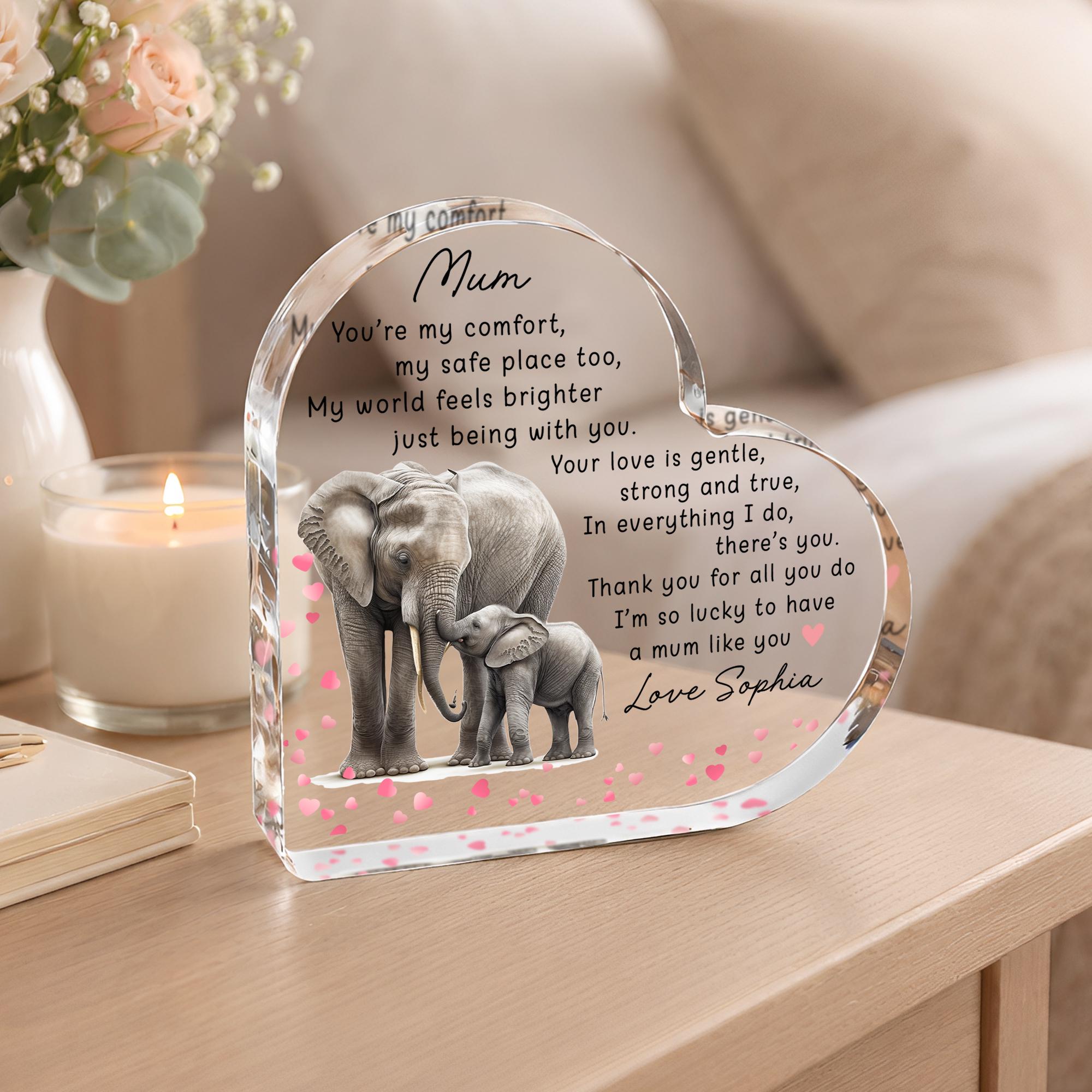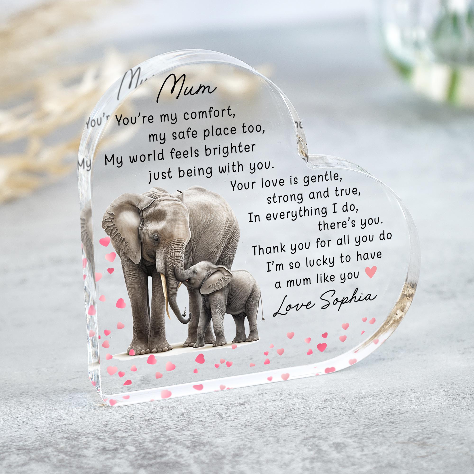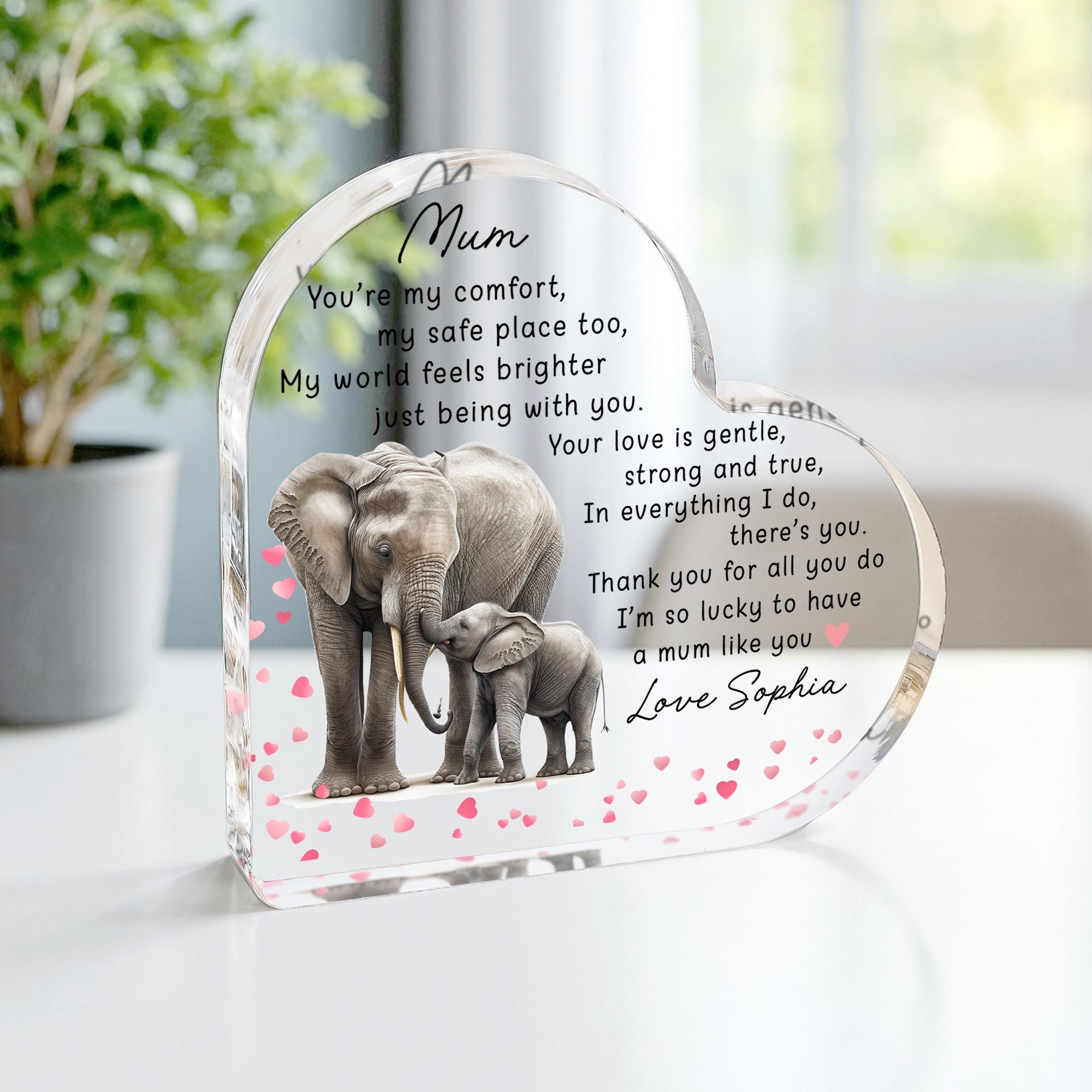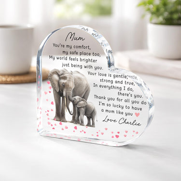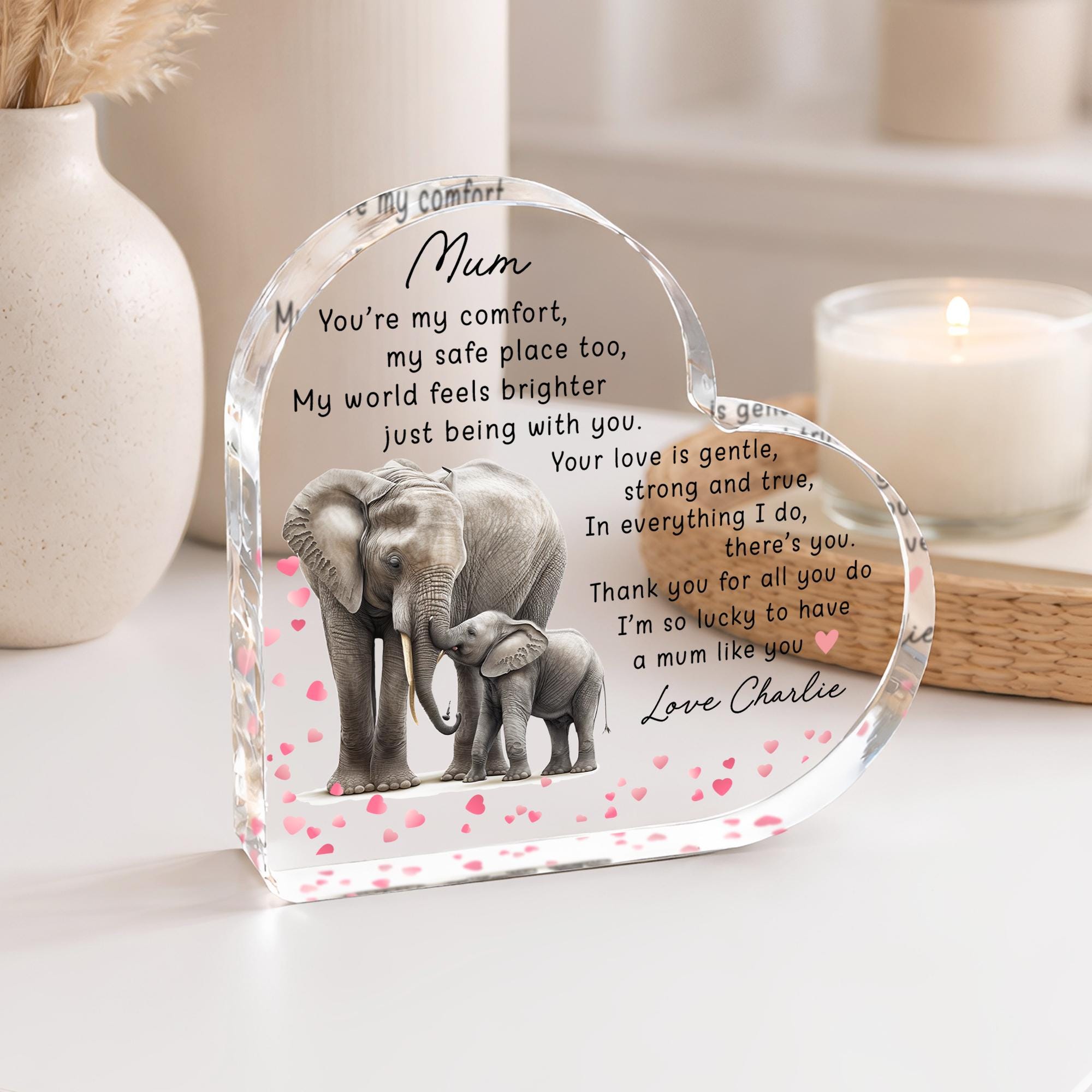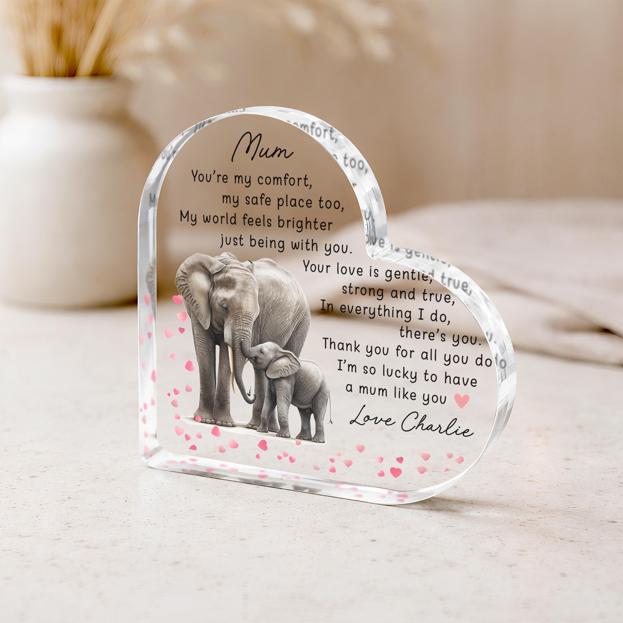 Personalised Mother's Day Mummy & Baby Elephant Poem Keepsake Heart Plaque