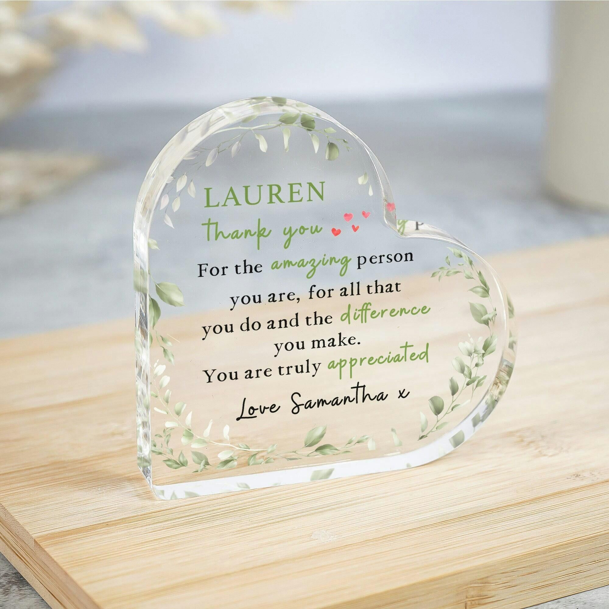 Beautiful acrylic crystal heart block personalised for that special friend.