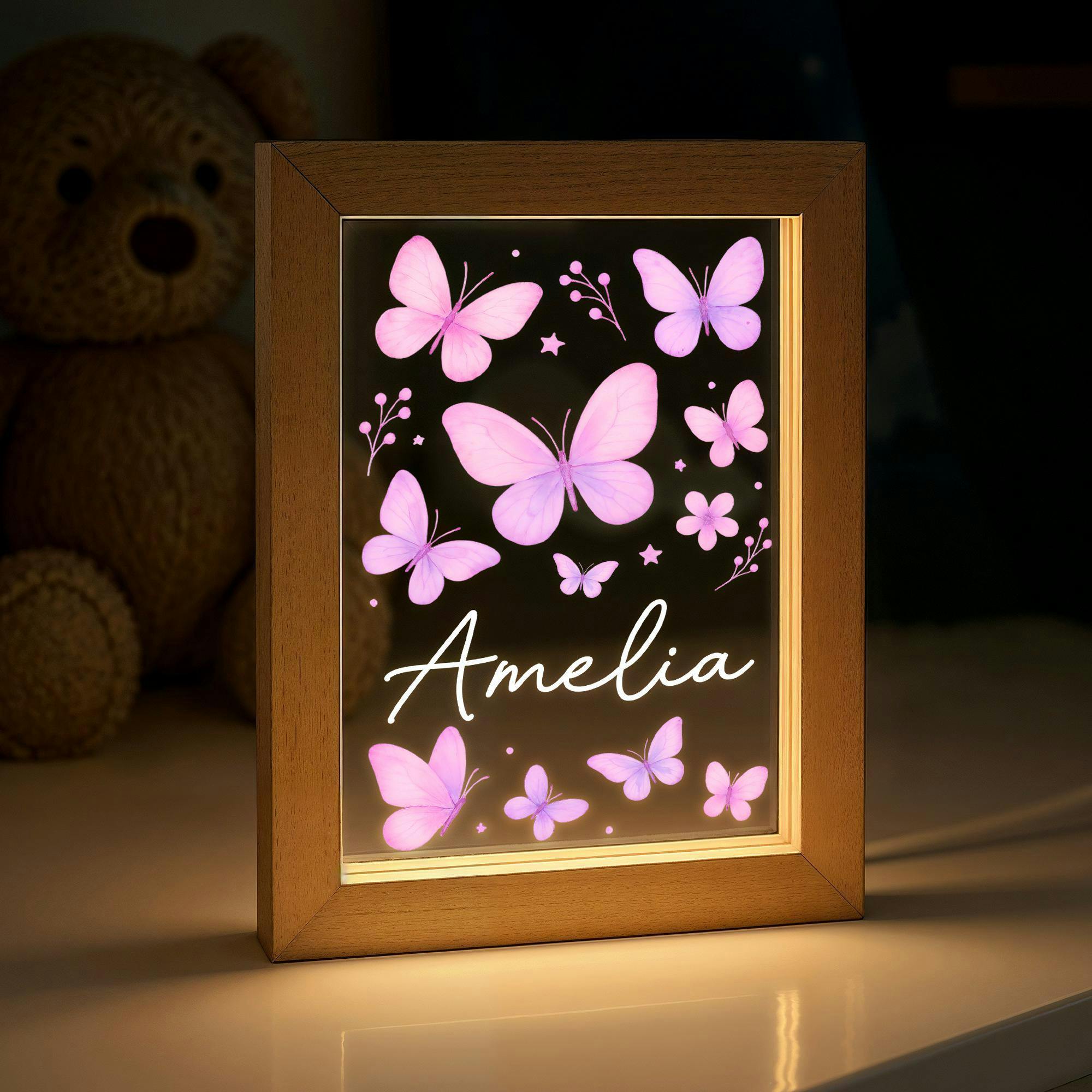 Personalised LED Butterfly Night Light Frame - Girls Bedroom Light