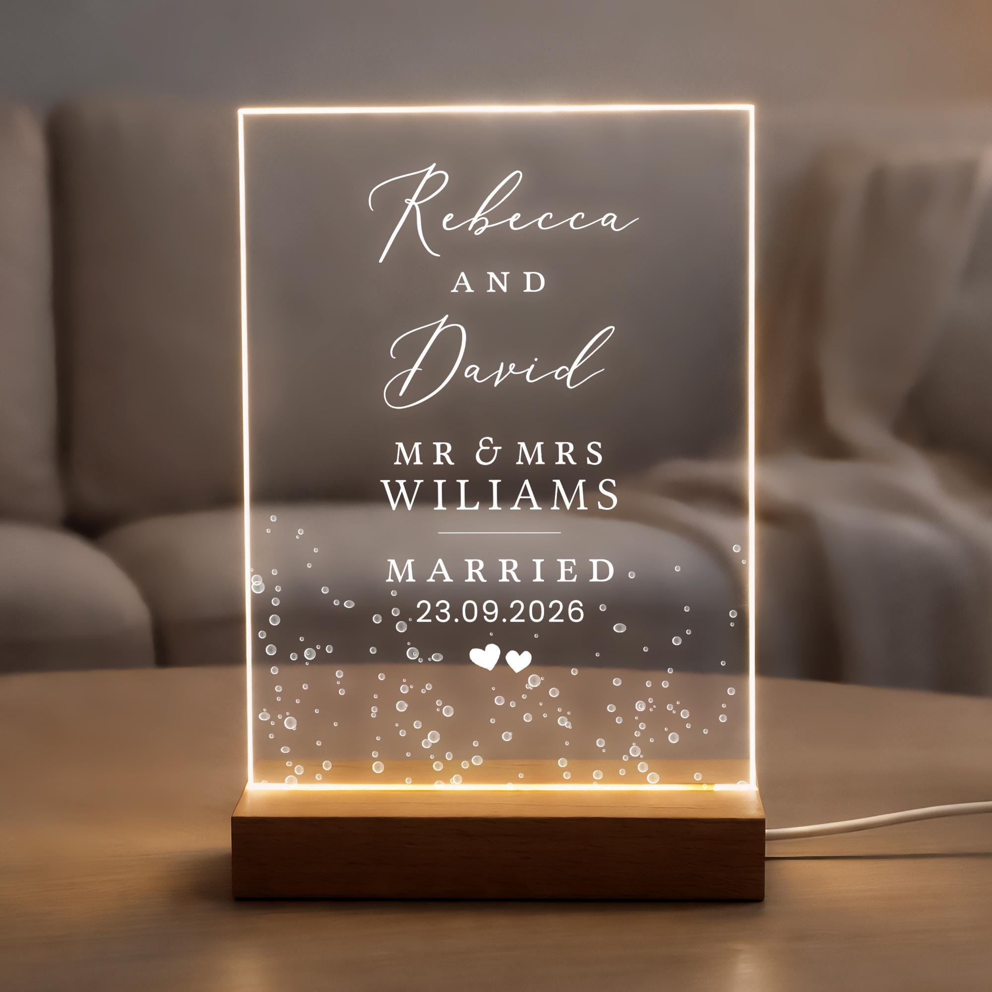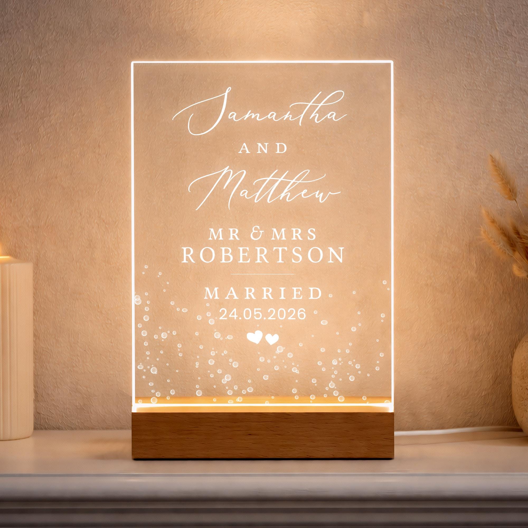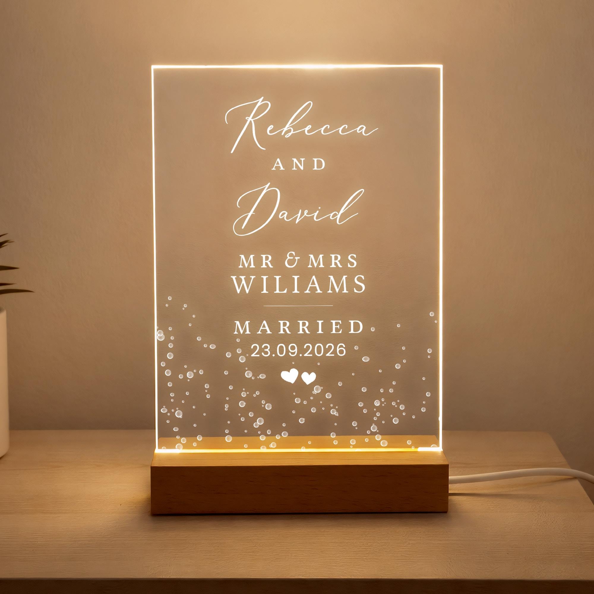 Introducing our LED wooden base night lights with a clear acrylic plaque – a perfect blend of elegance and functionality! This stylish desk or bedside accessory creates a warm ambiance with its gentle LED glow. Printed in full color which adds a vibrant touch to any space. Ideal for both decoration and practical use, bringing a touch of brilliance to your space.