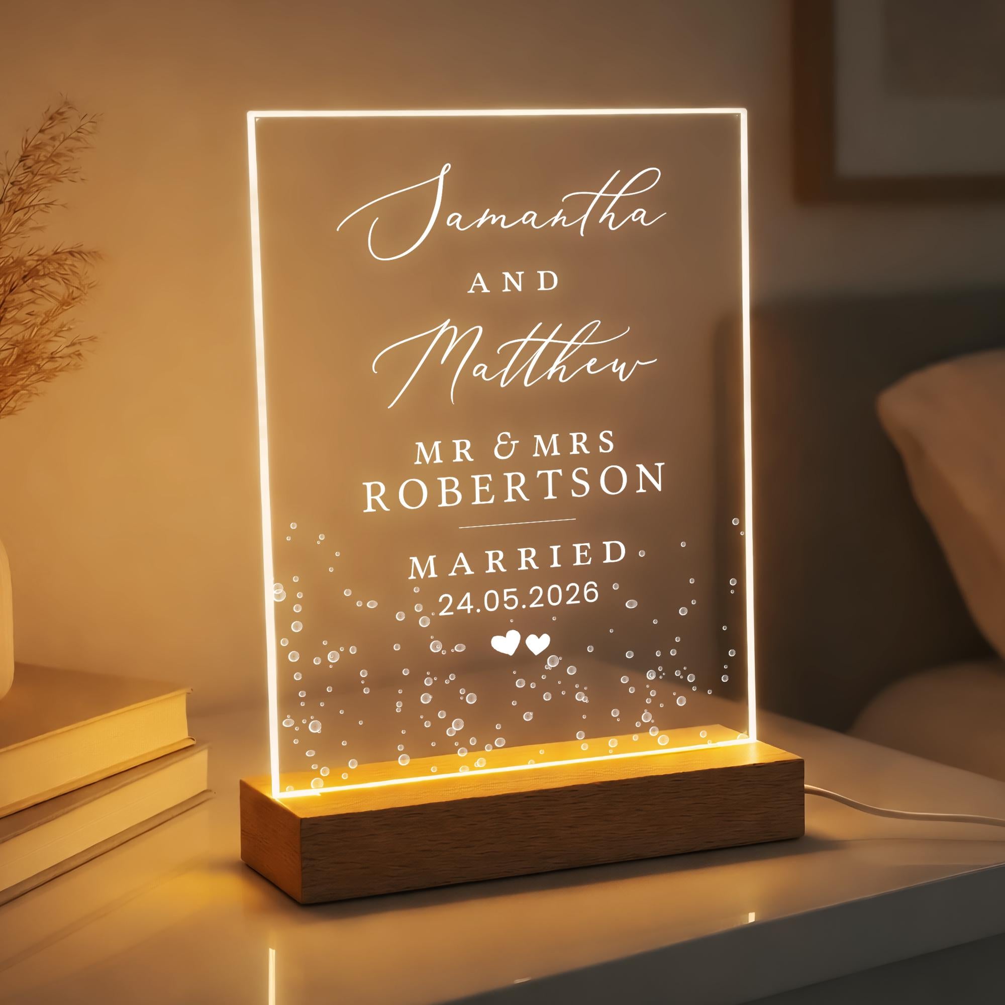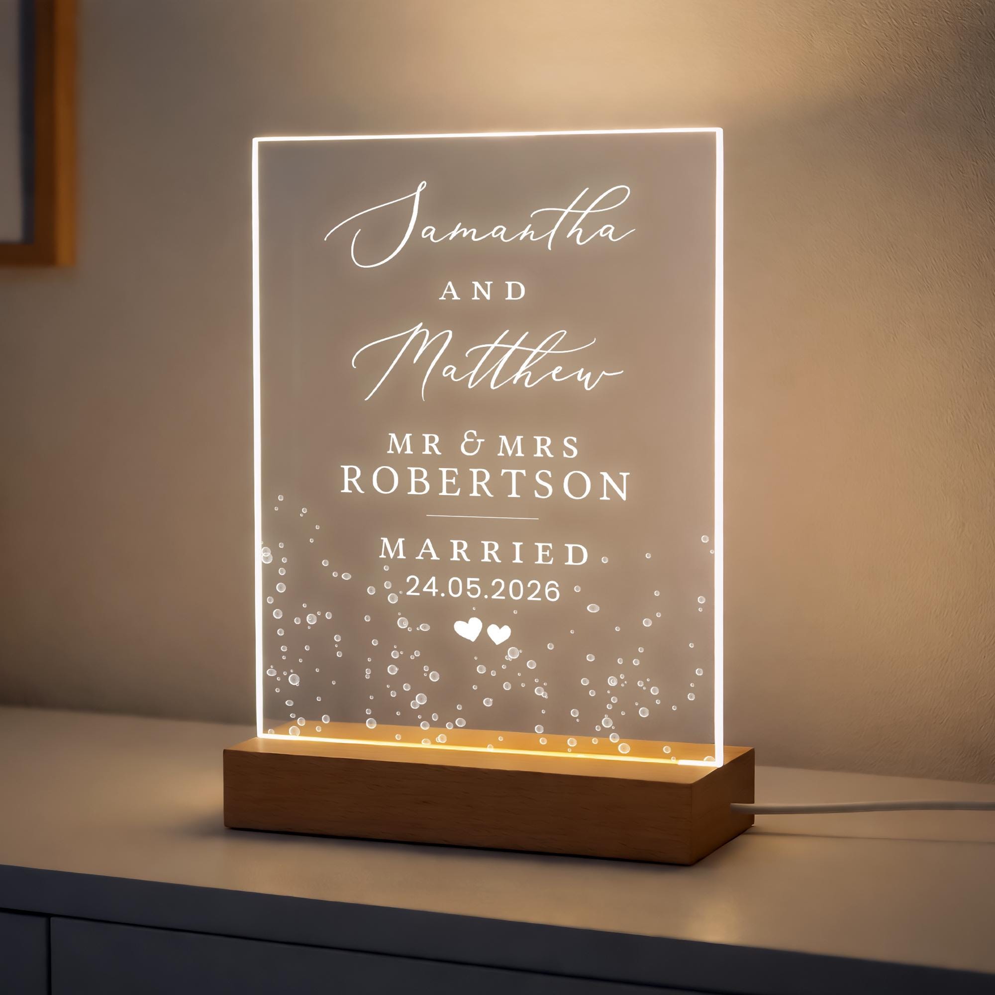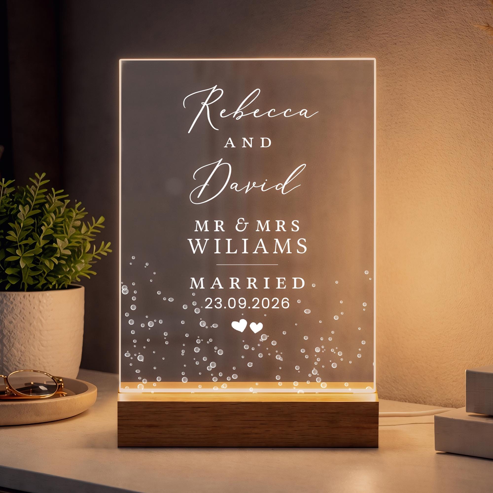 Introducing our LED wooden base night lights with a clear acrylic plaque – a perfect blend of elegance and functionality! This stylish desk or bedside accessory creates a warm ambiance with its gentle LED glow. Printed in full color which adds a vibrant touch to any space. Ideal for both decoration and practical use, bringing a touch of brilliance to your space.