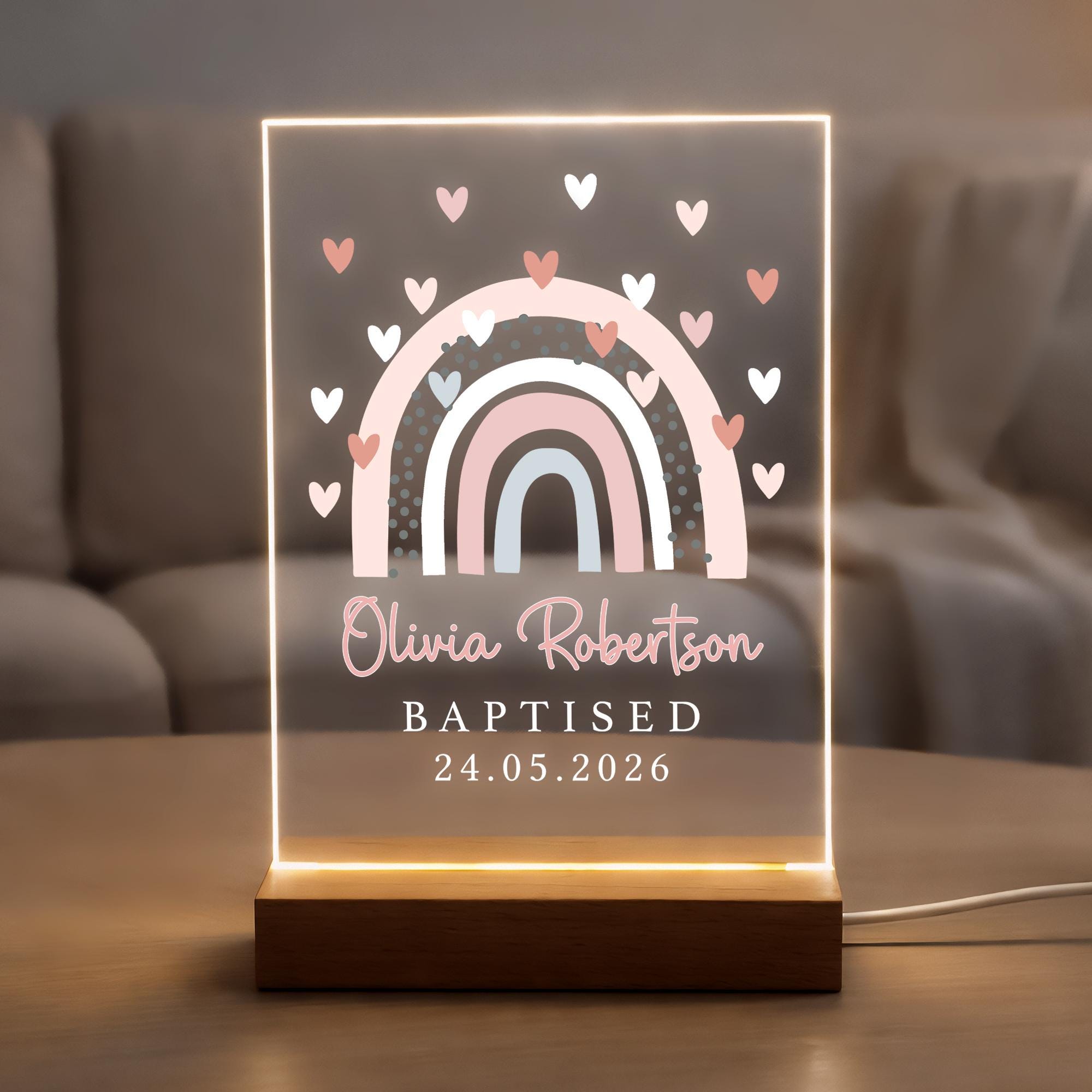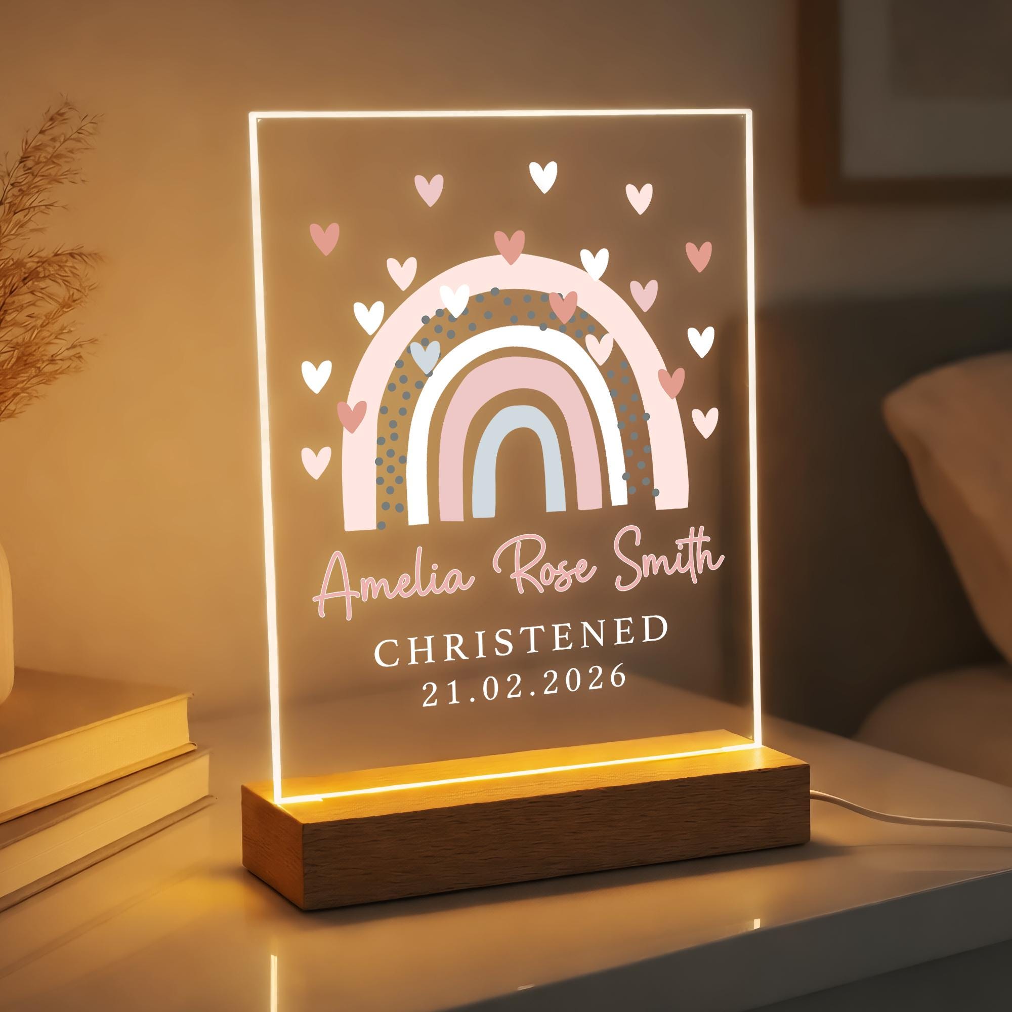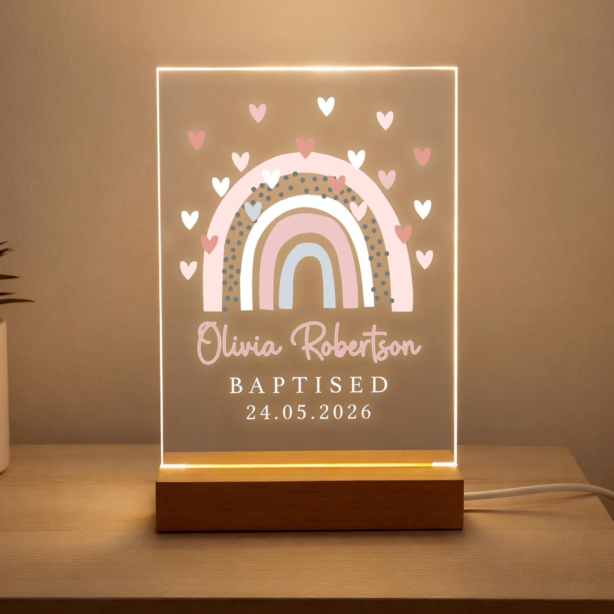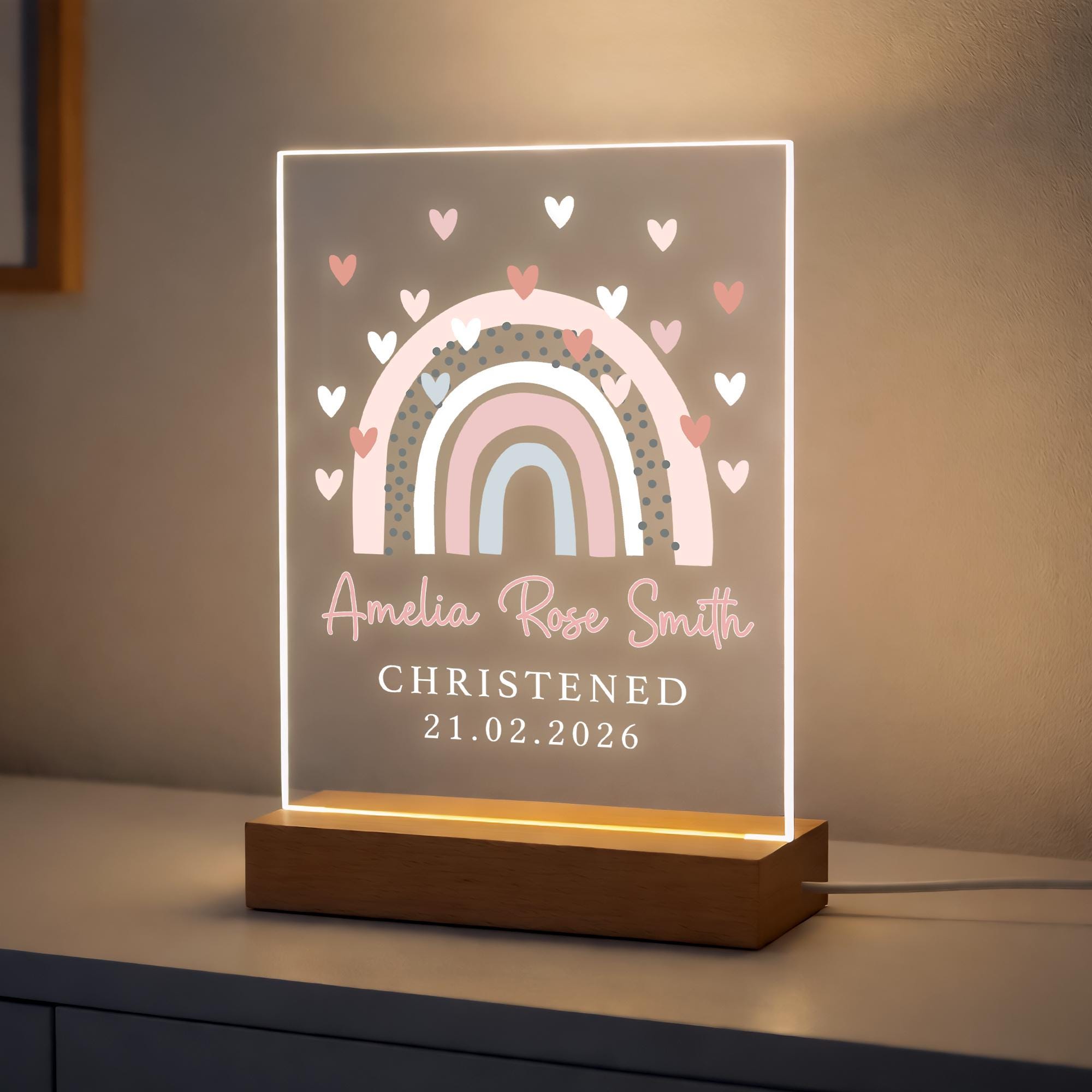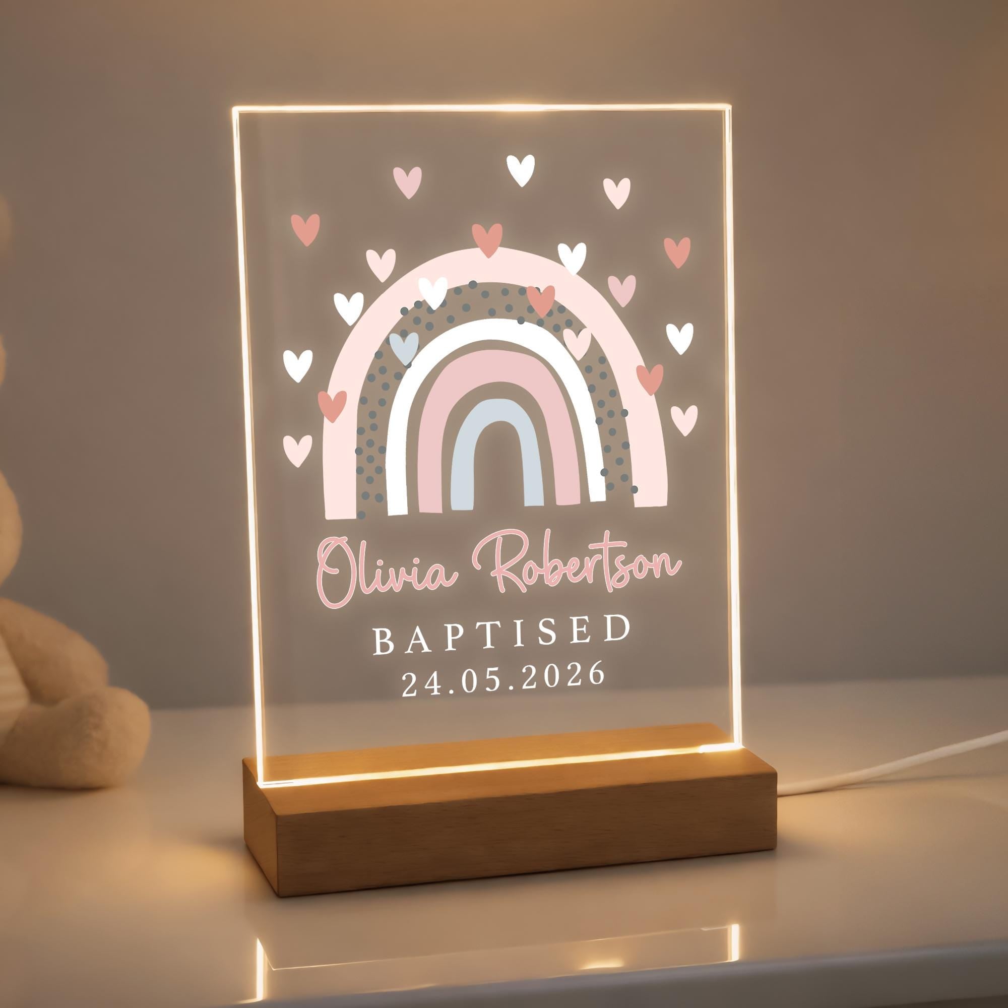 Personalised LED Christening/Baptism Night Light for Goddaughter Godson