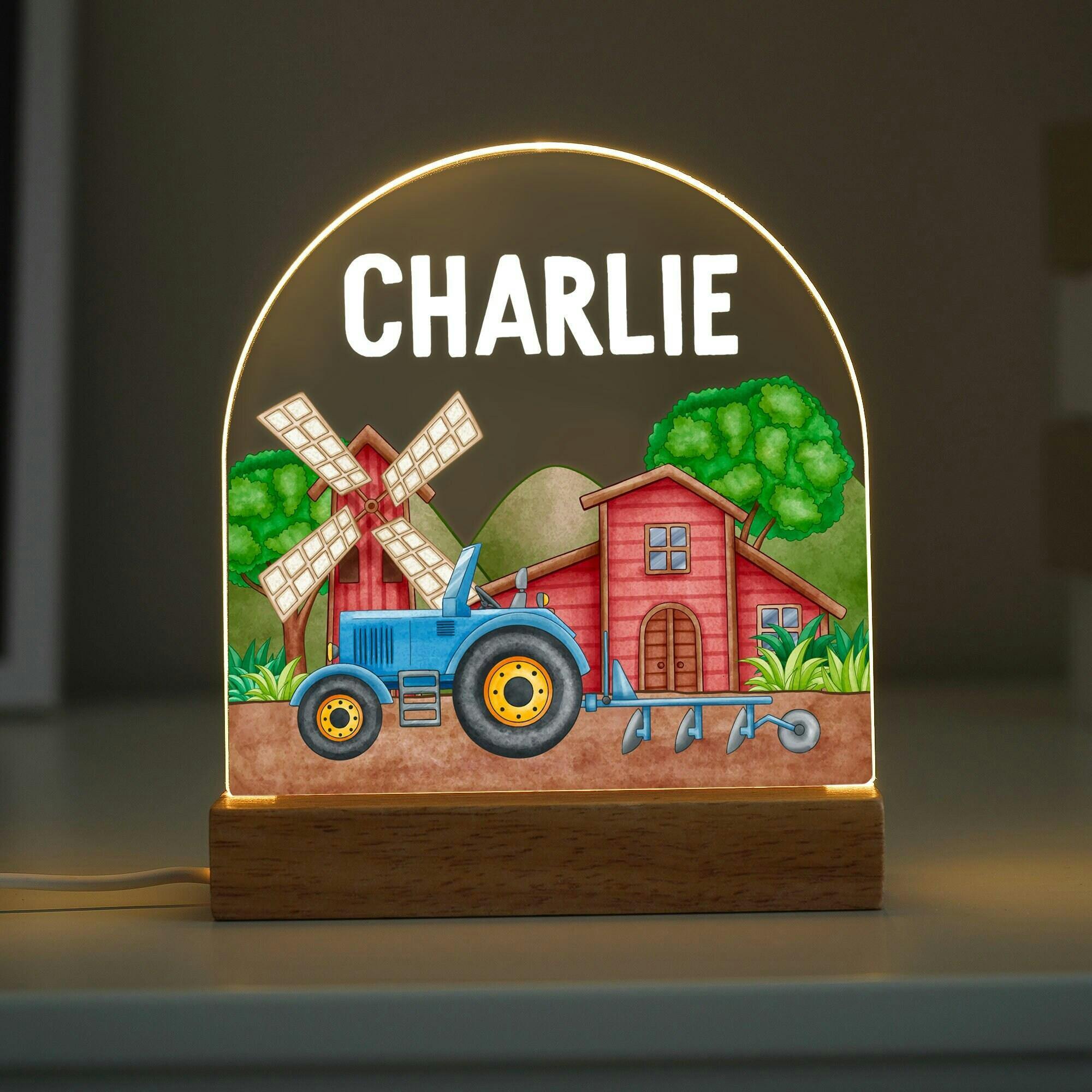 Personalised LED Tractor Night Light Lamp