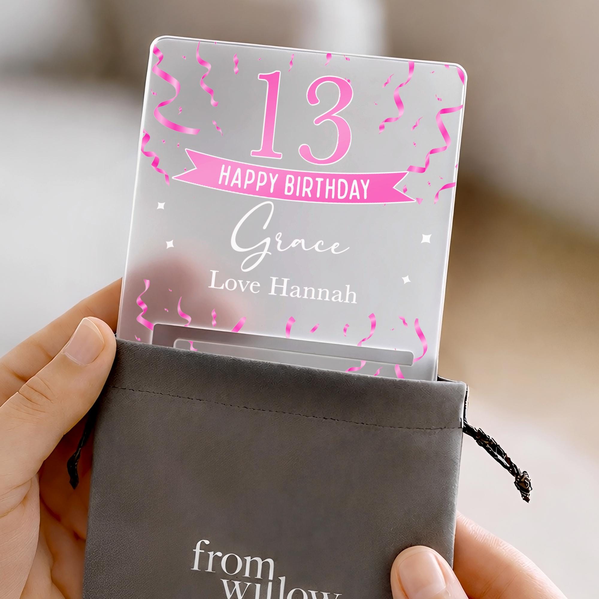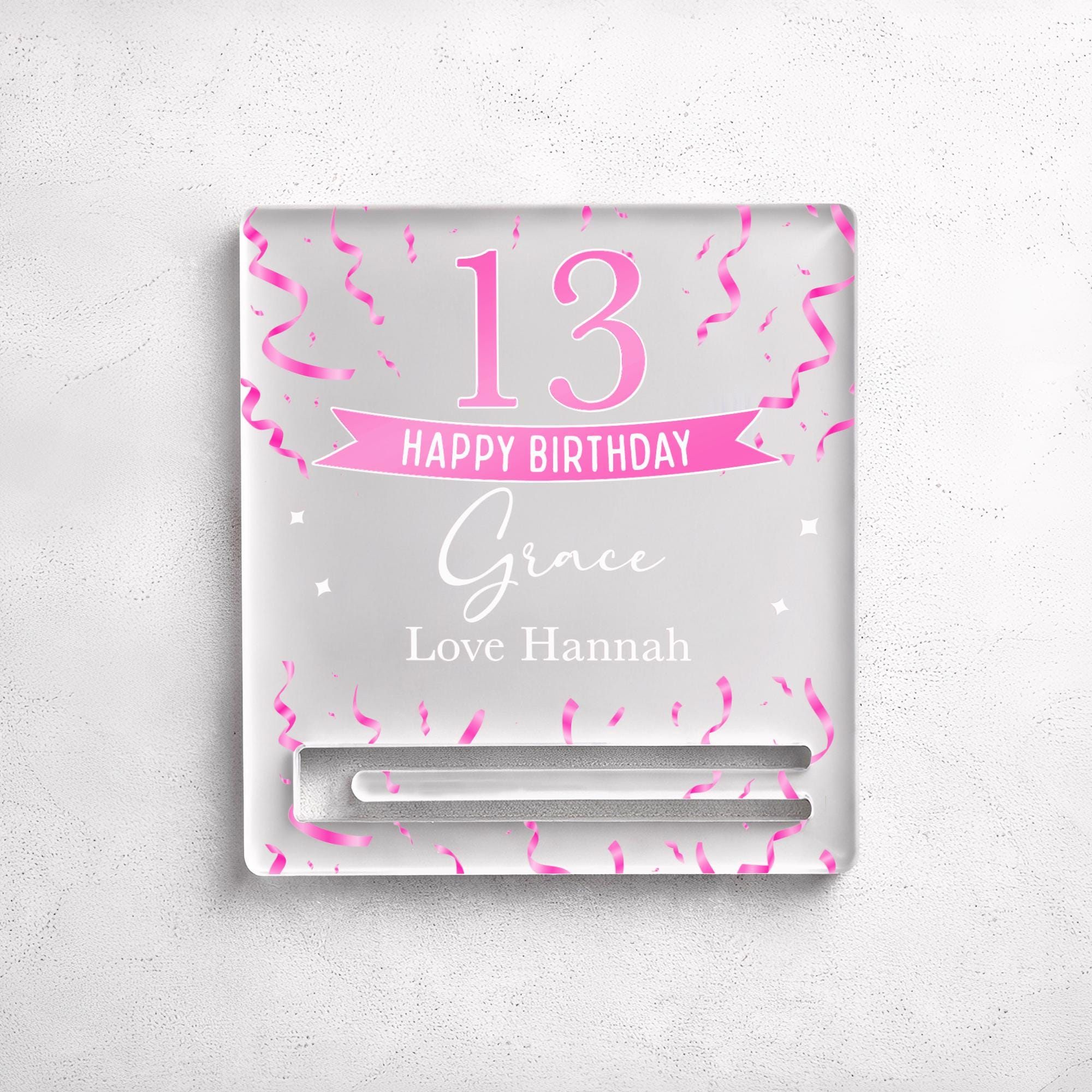 Personalised 13th Birthday Gift Cash Money Holder Frosted Acrylic