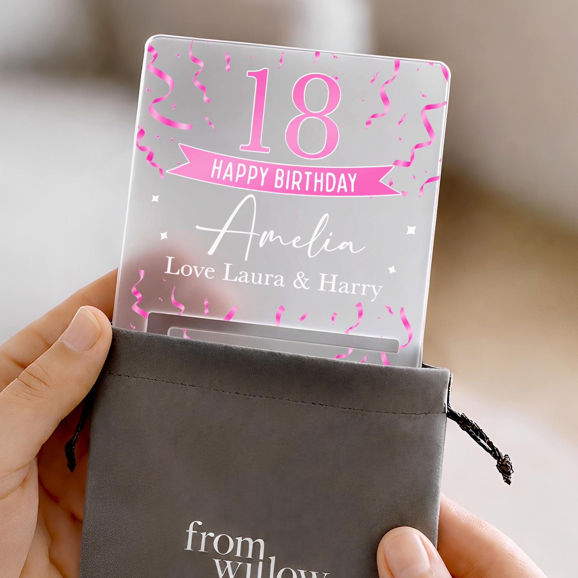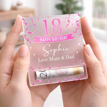Personalised 18th Birthday Gift Cash Money Holder Frosted Acrylic