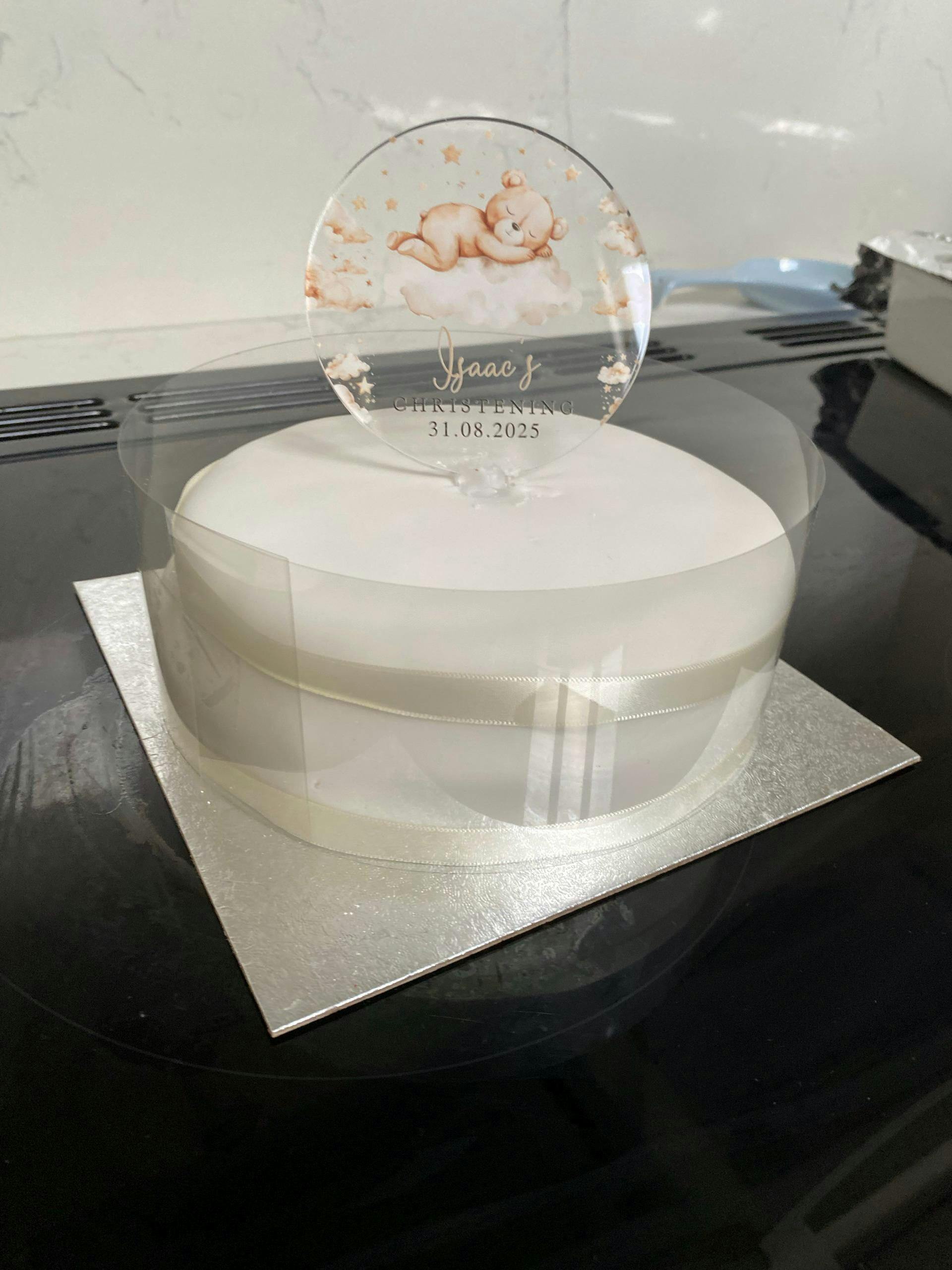 Beautiful clear acrylic printed cake topper personalised making that extra special gift.