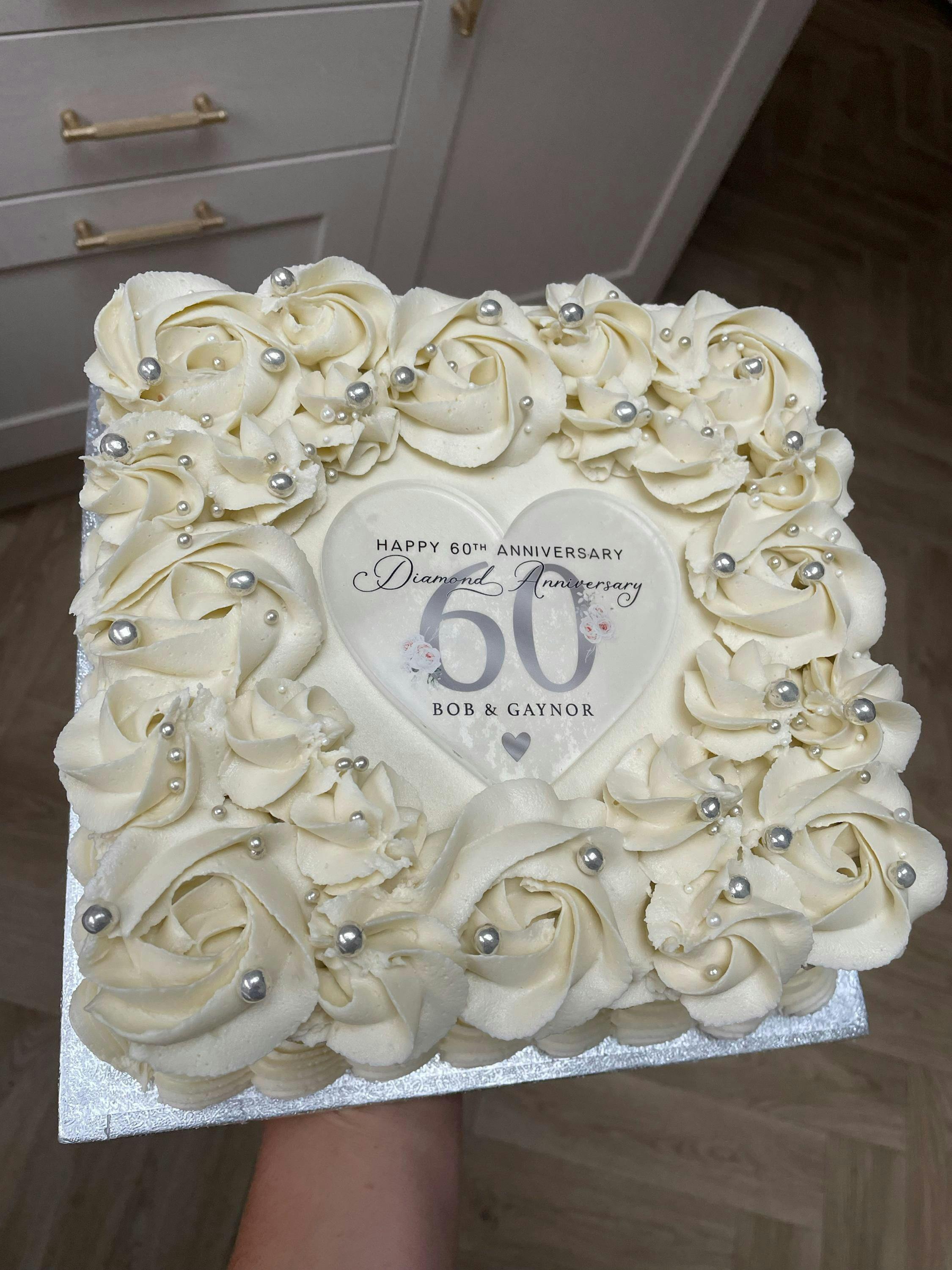 Personalised Big Silver 60th Anniversary Cake Topper - Diamond Anniversary