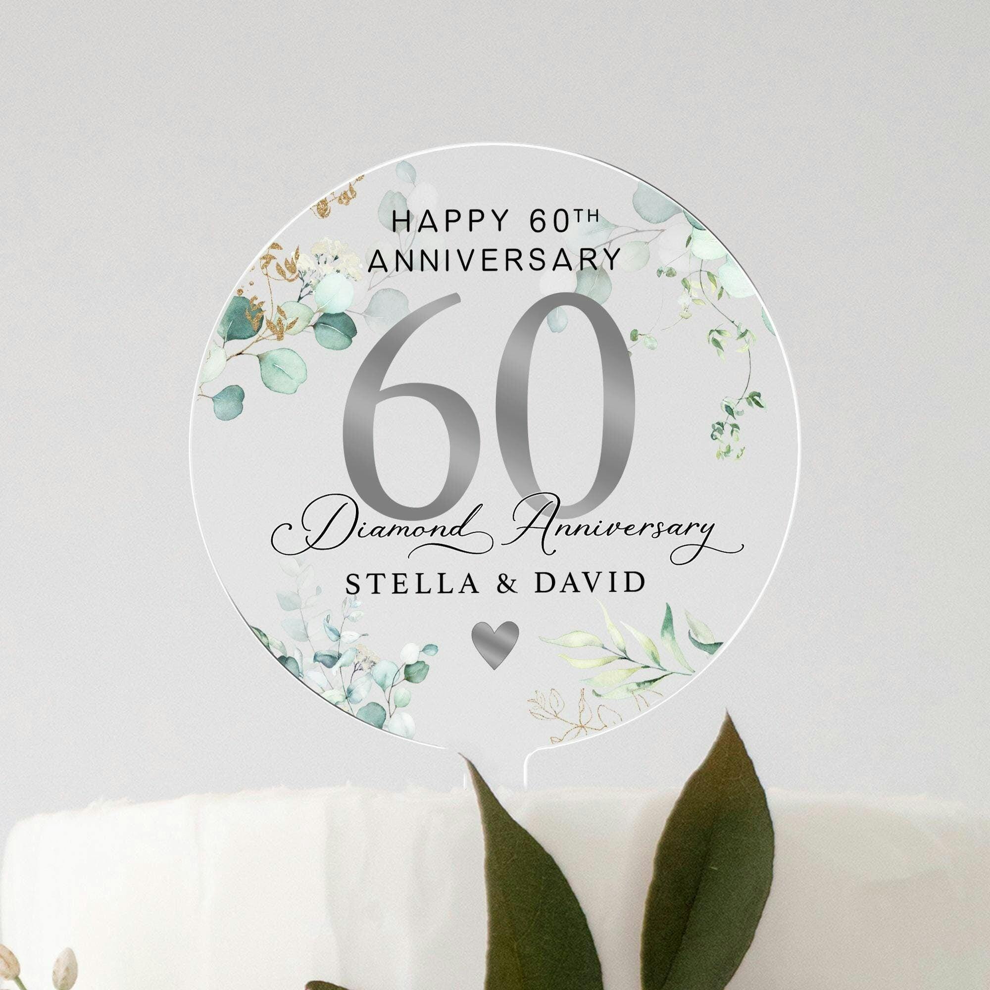 Personalised Diamond Anniversary 60th Cake Toppe - Green and Gold