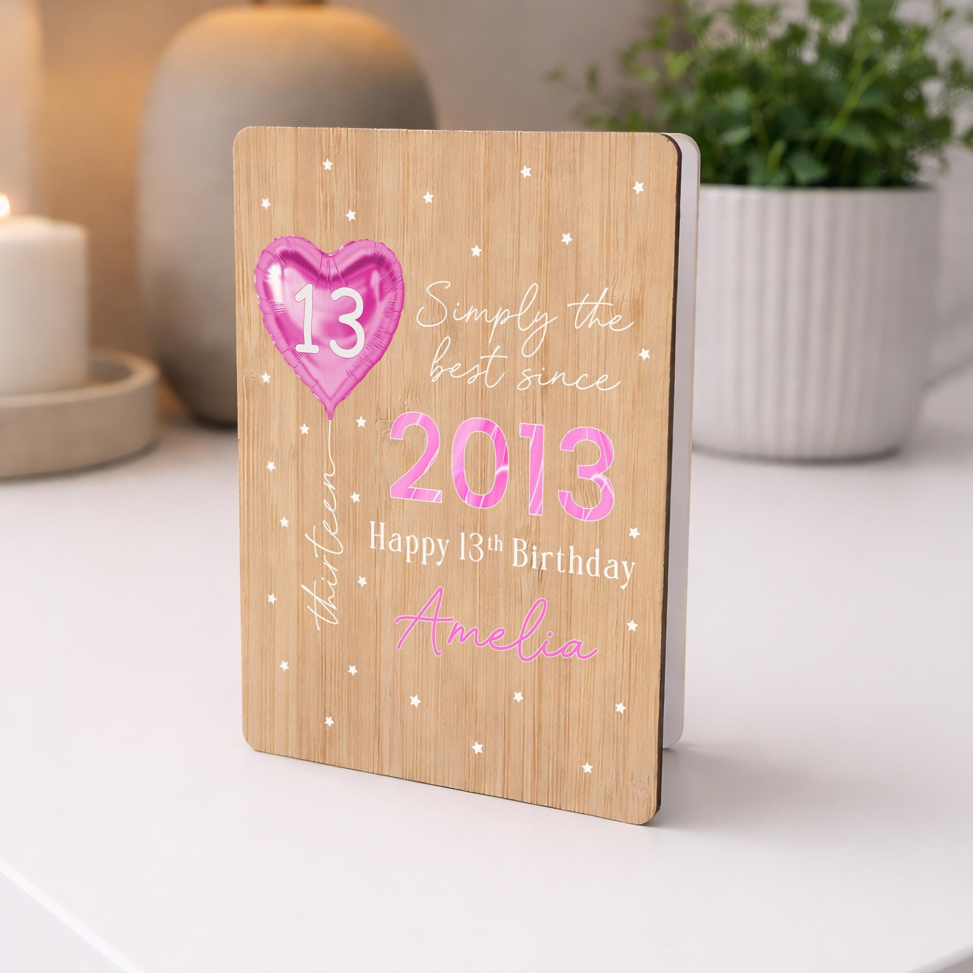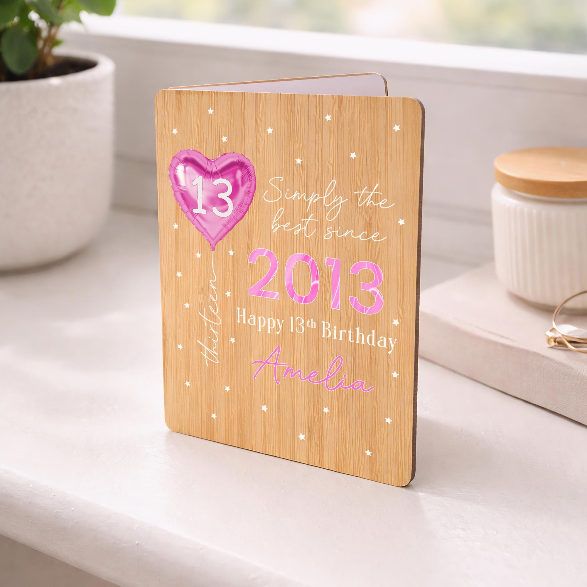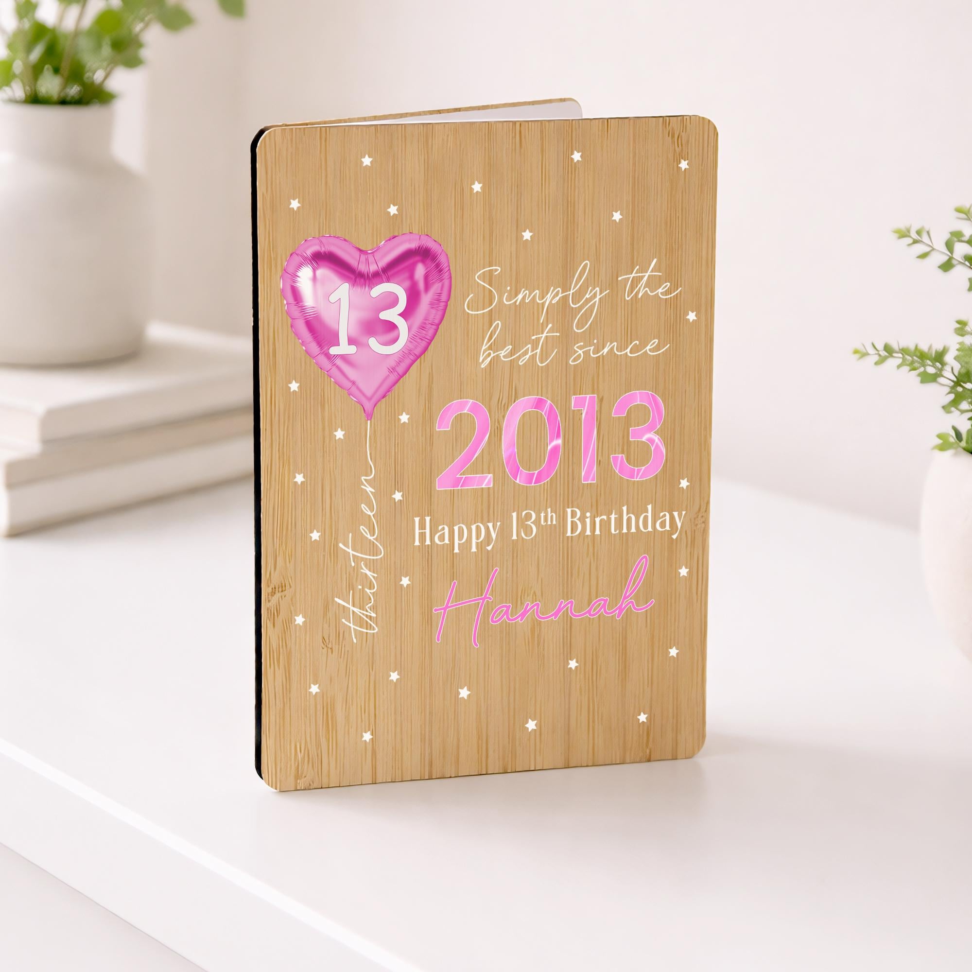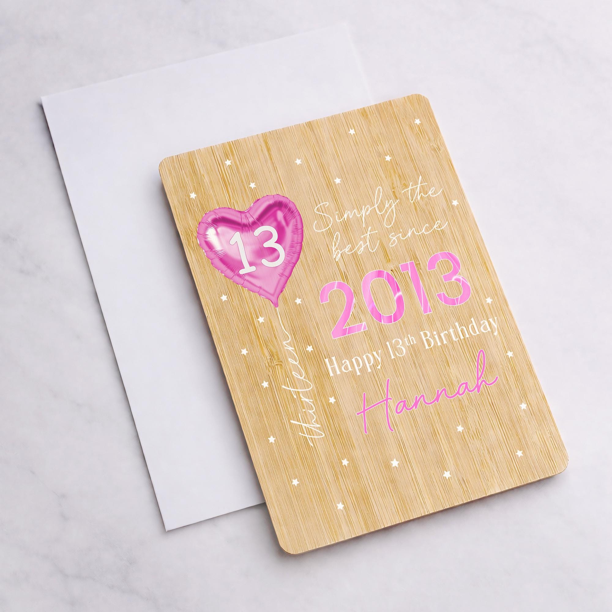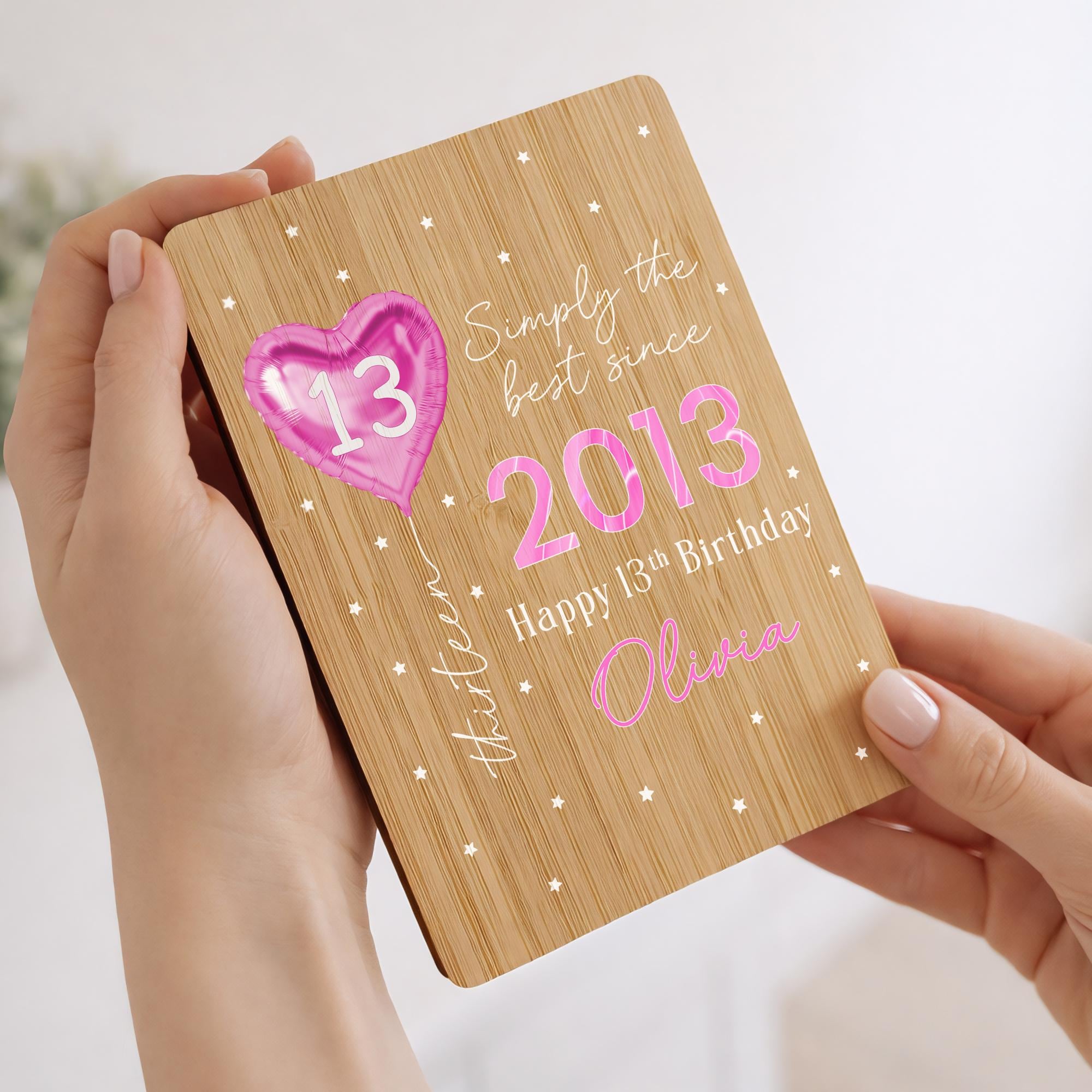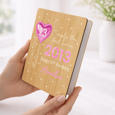 Personalised Happy 13th Birthday Bamboo Wooden Keepsake Card