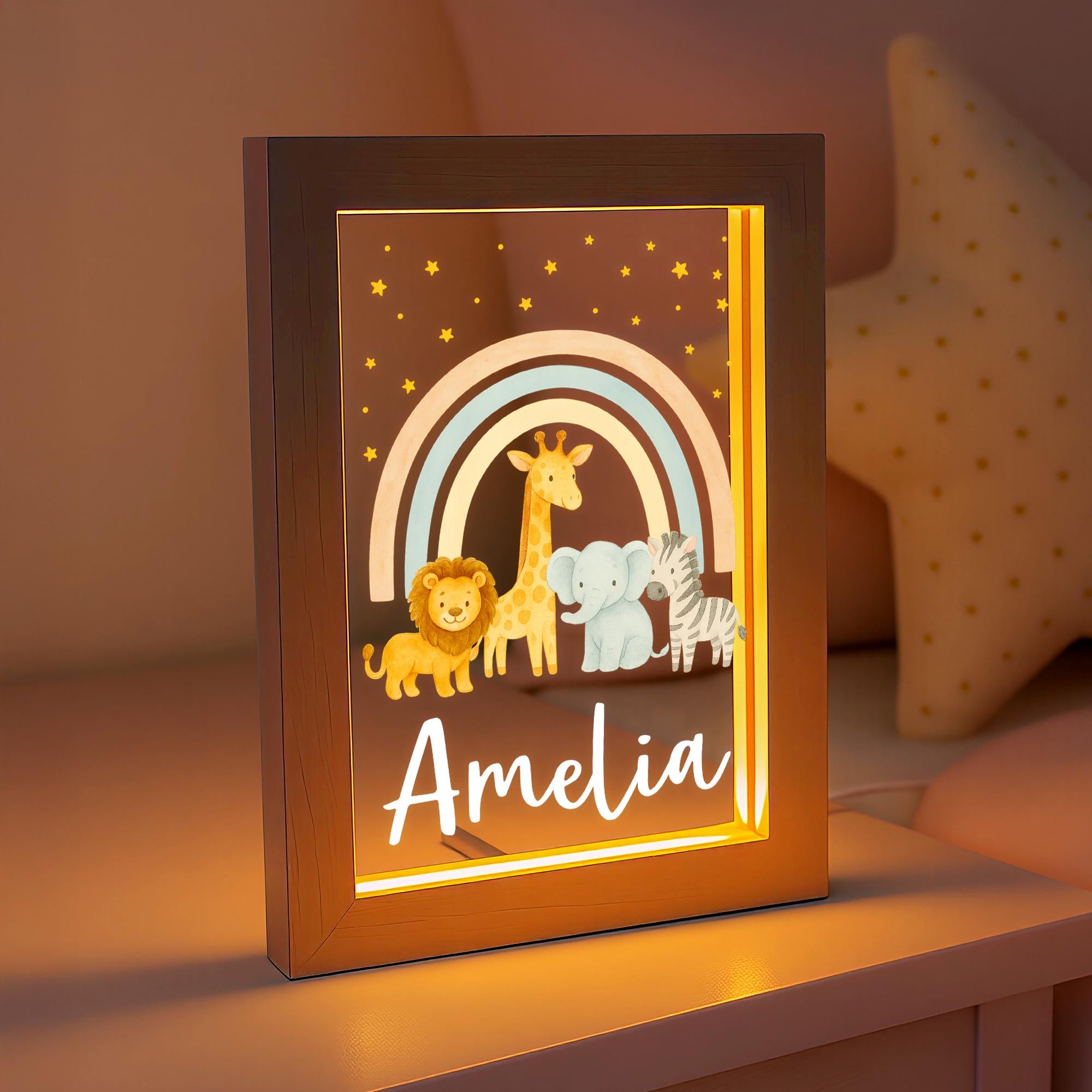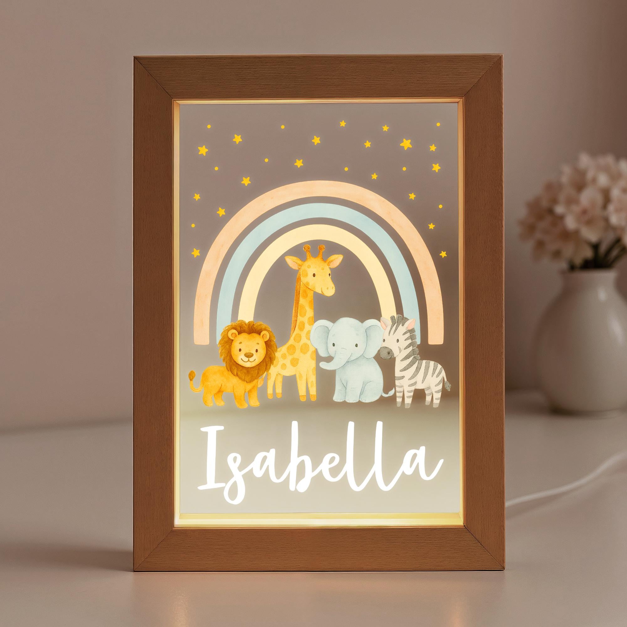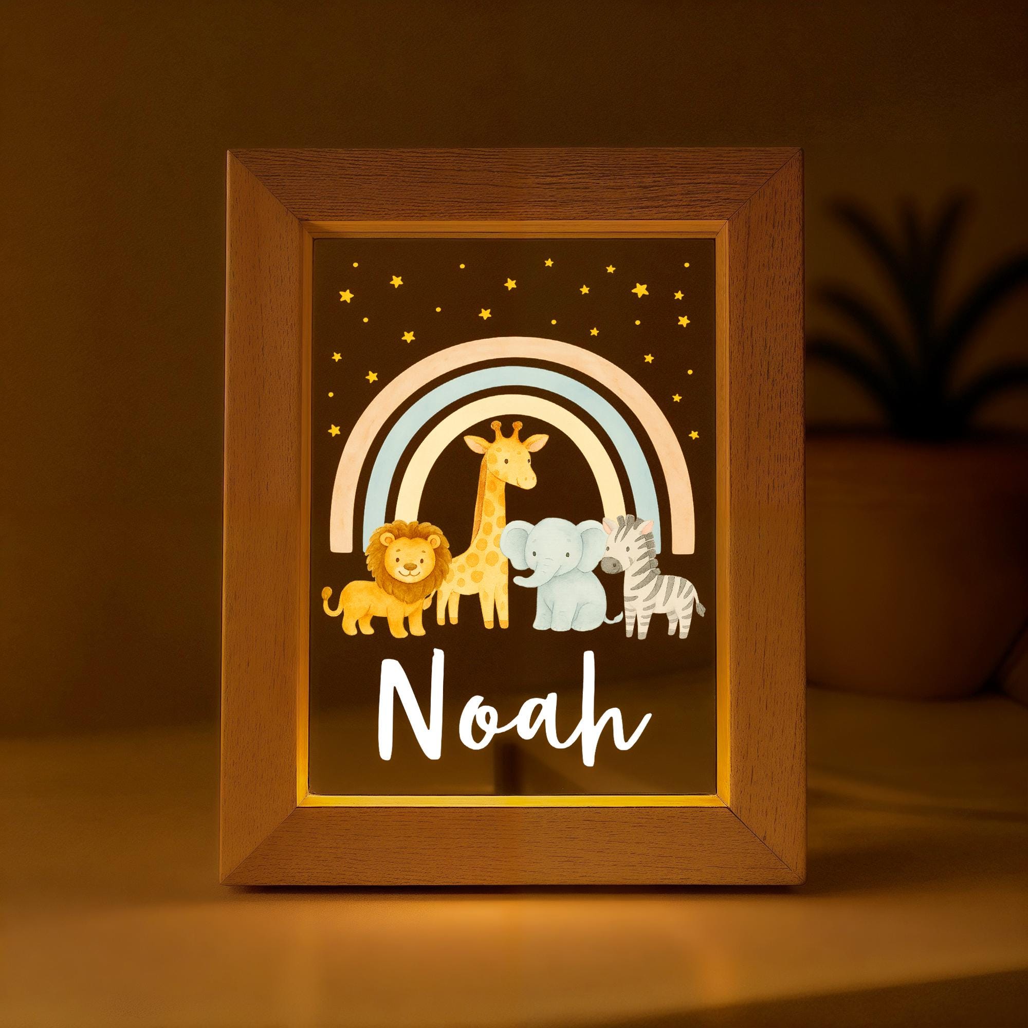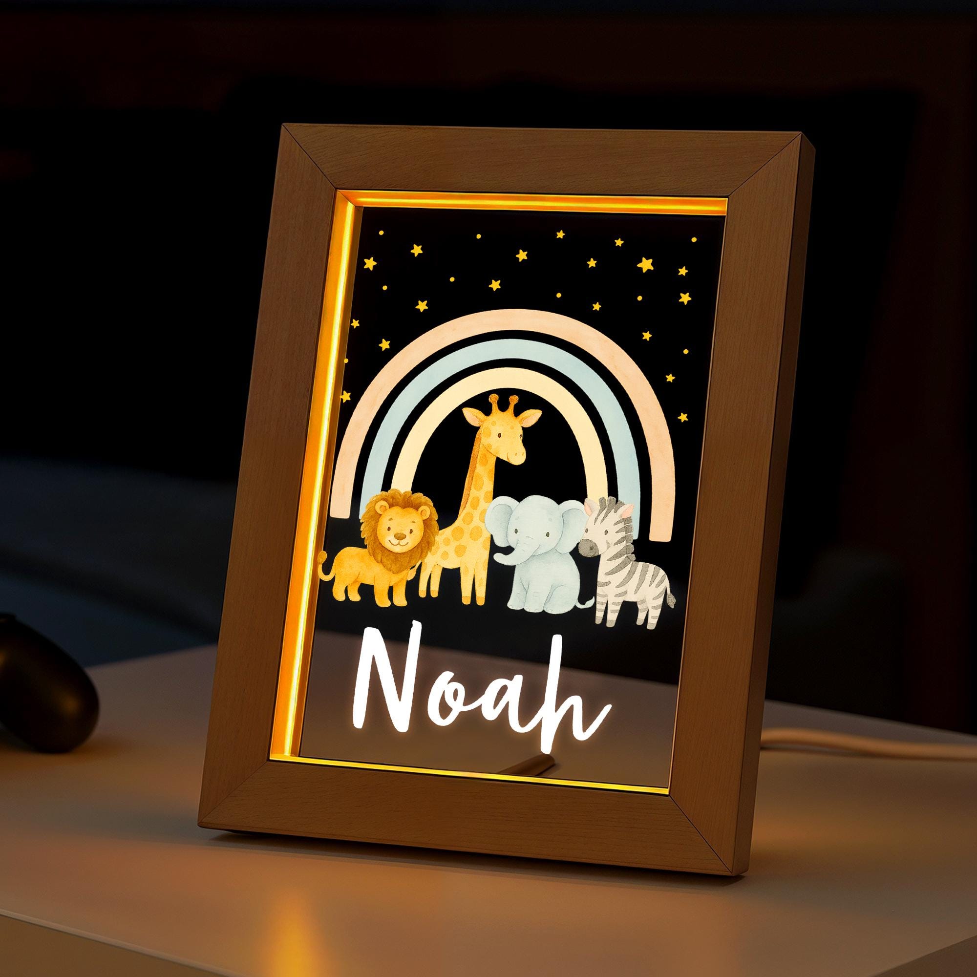 Personalised LED Safari Animals Rainbow Night Light Frame