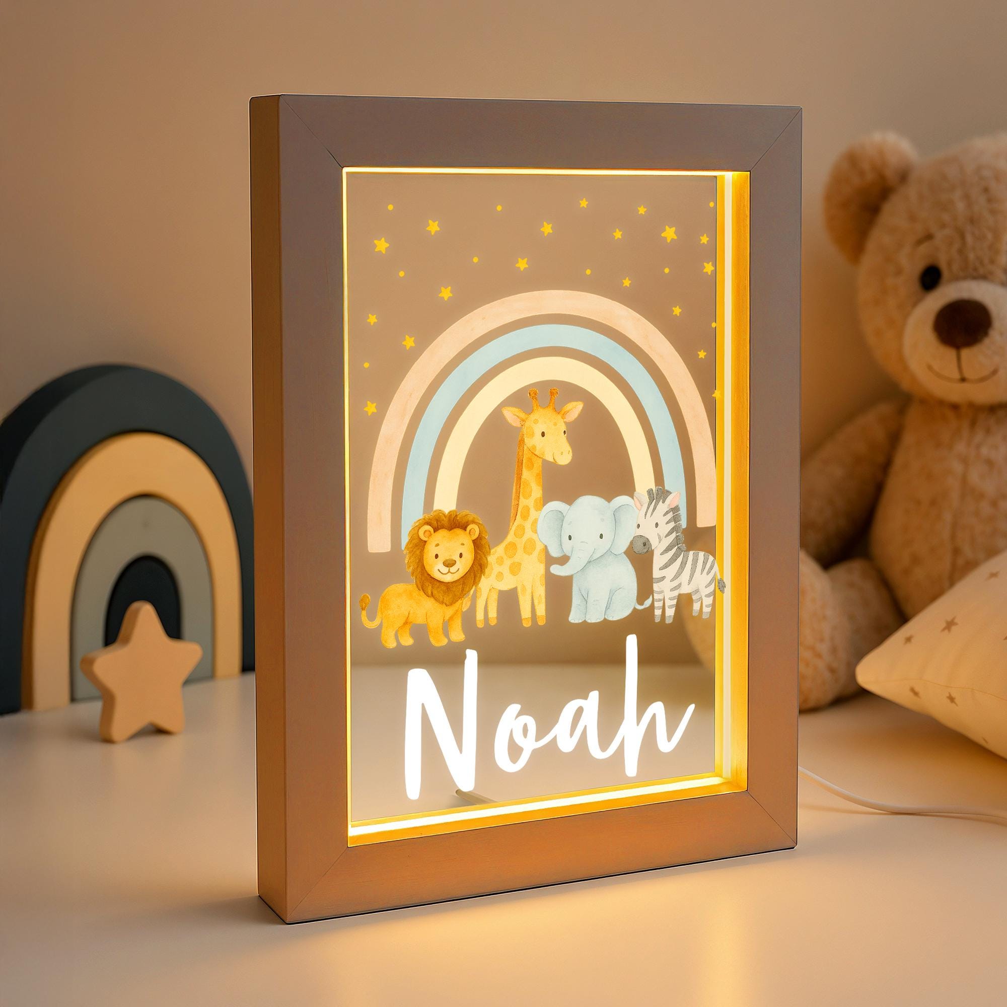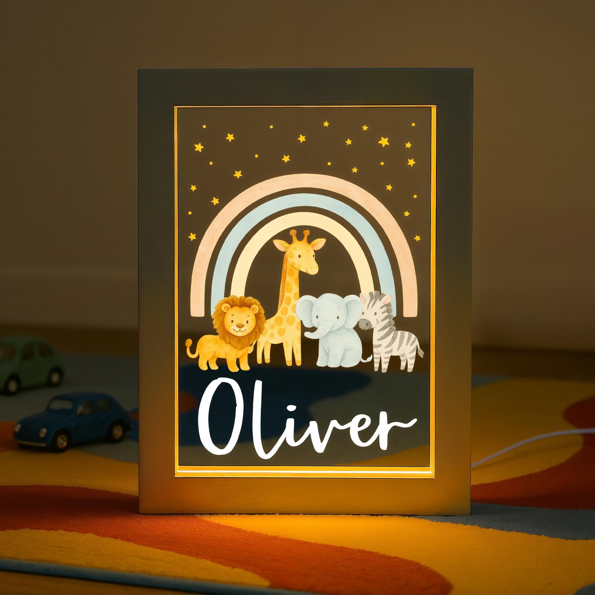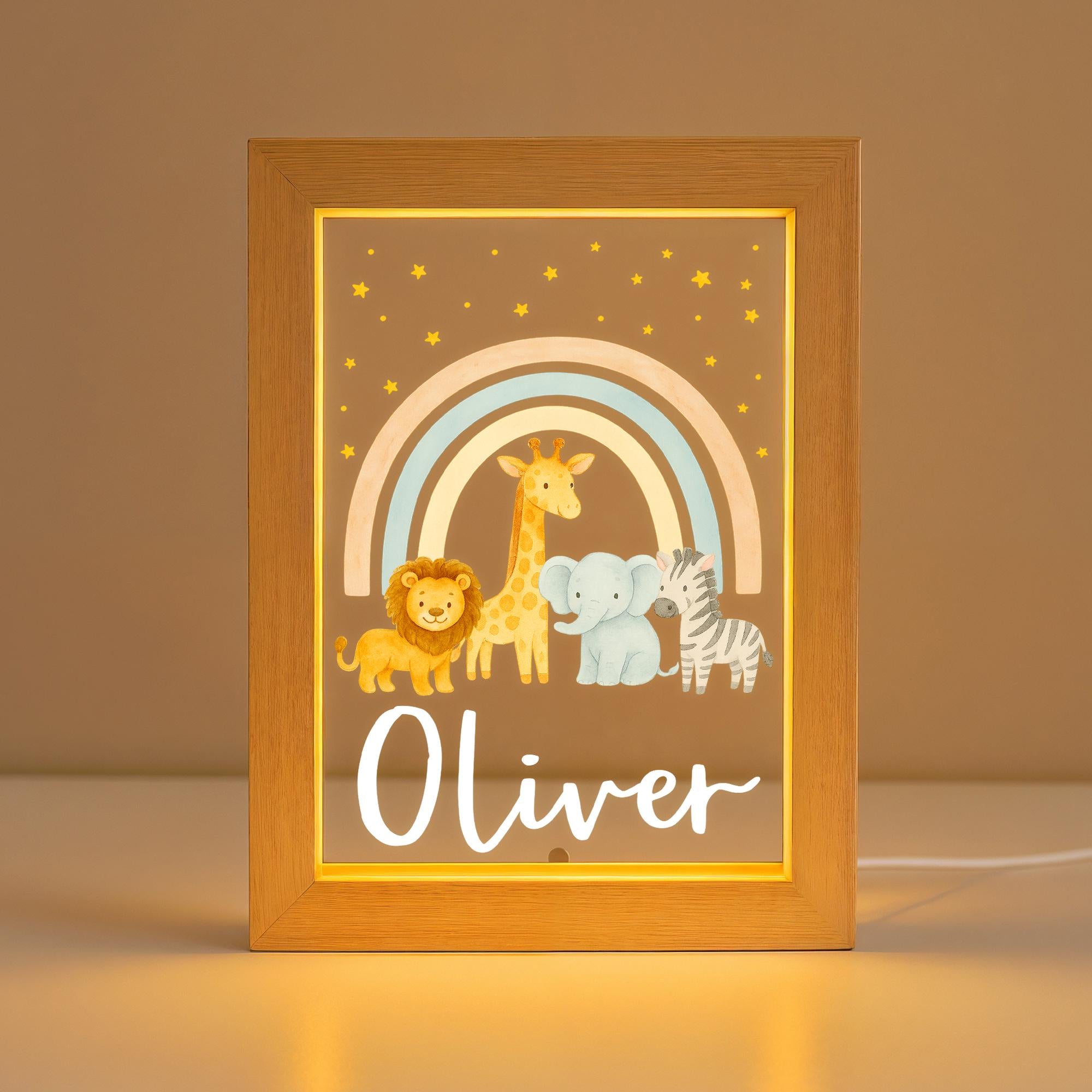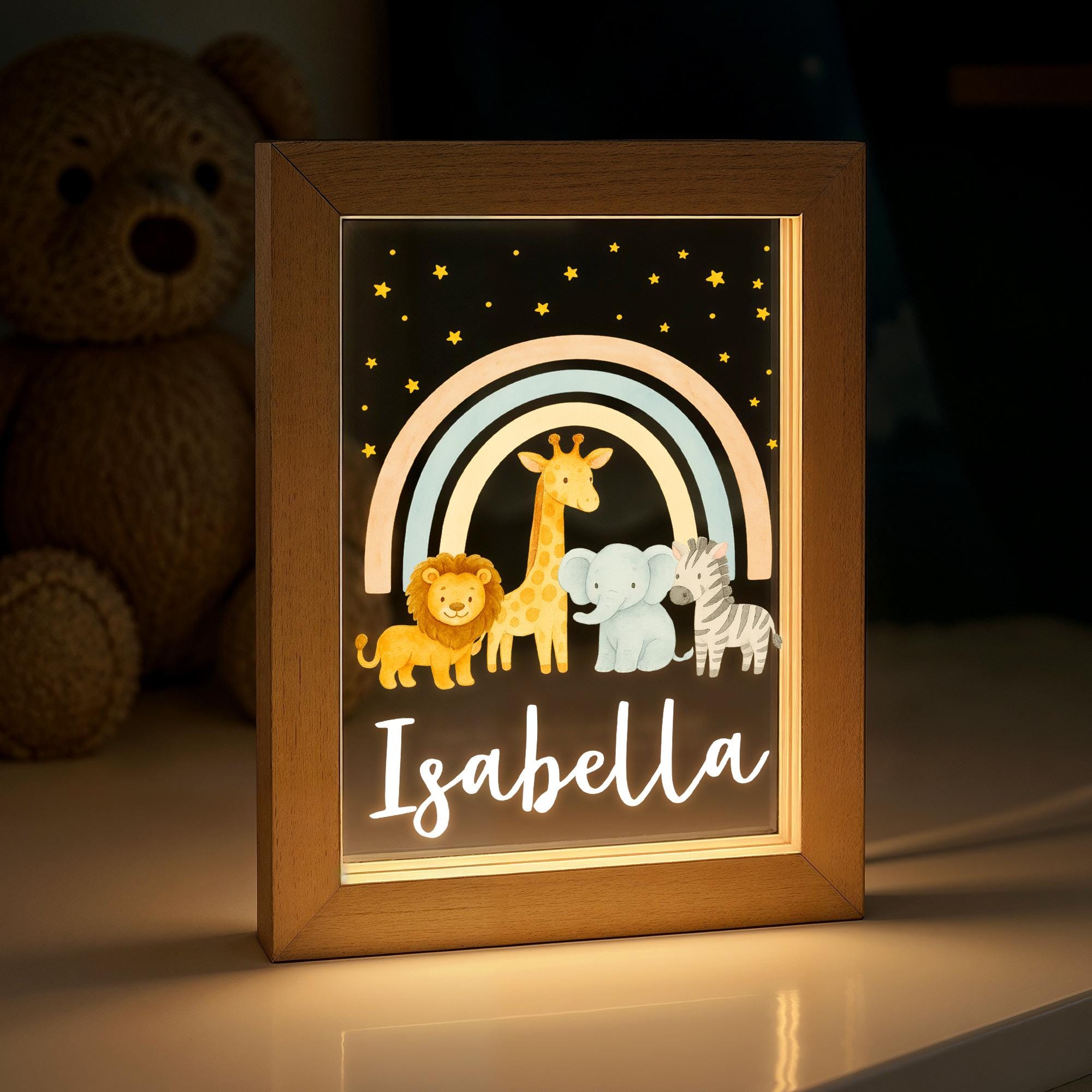 Personalised LED Safari Animals Rainbow Night Light Frame