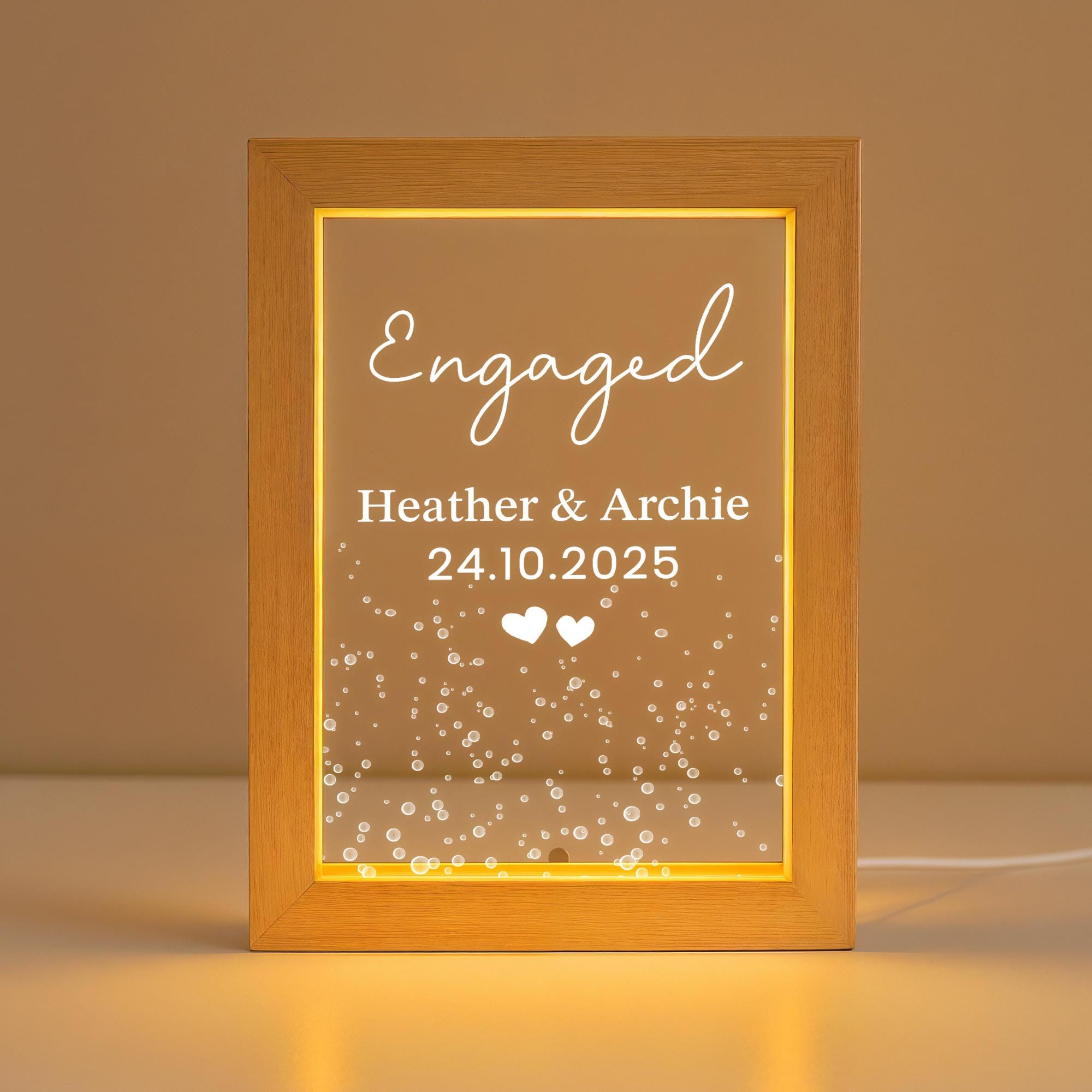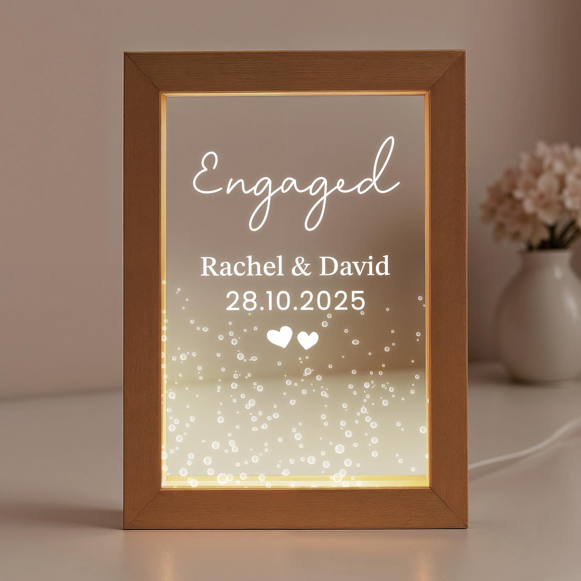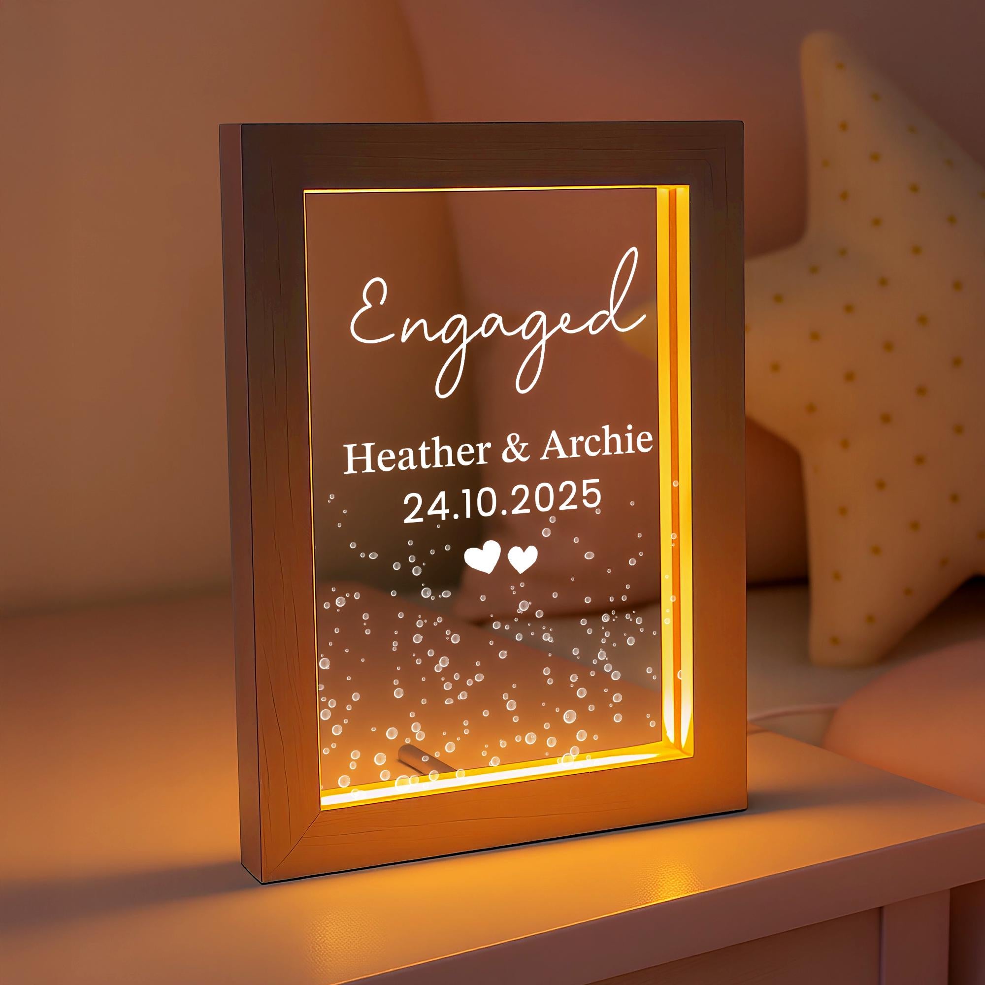 Personalised LED Engagement Light Frame - Couple Names and Date