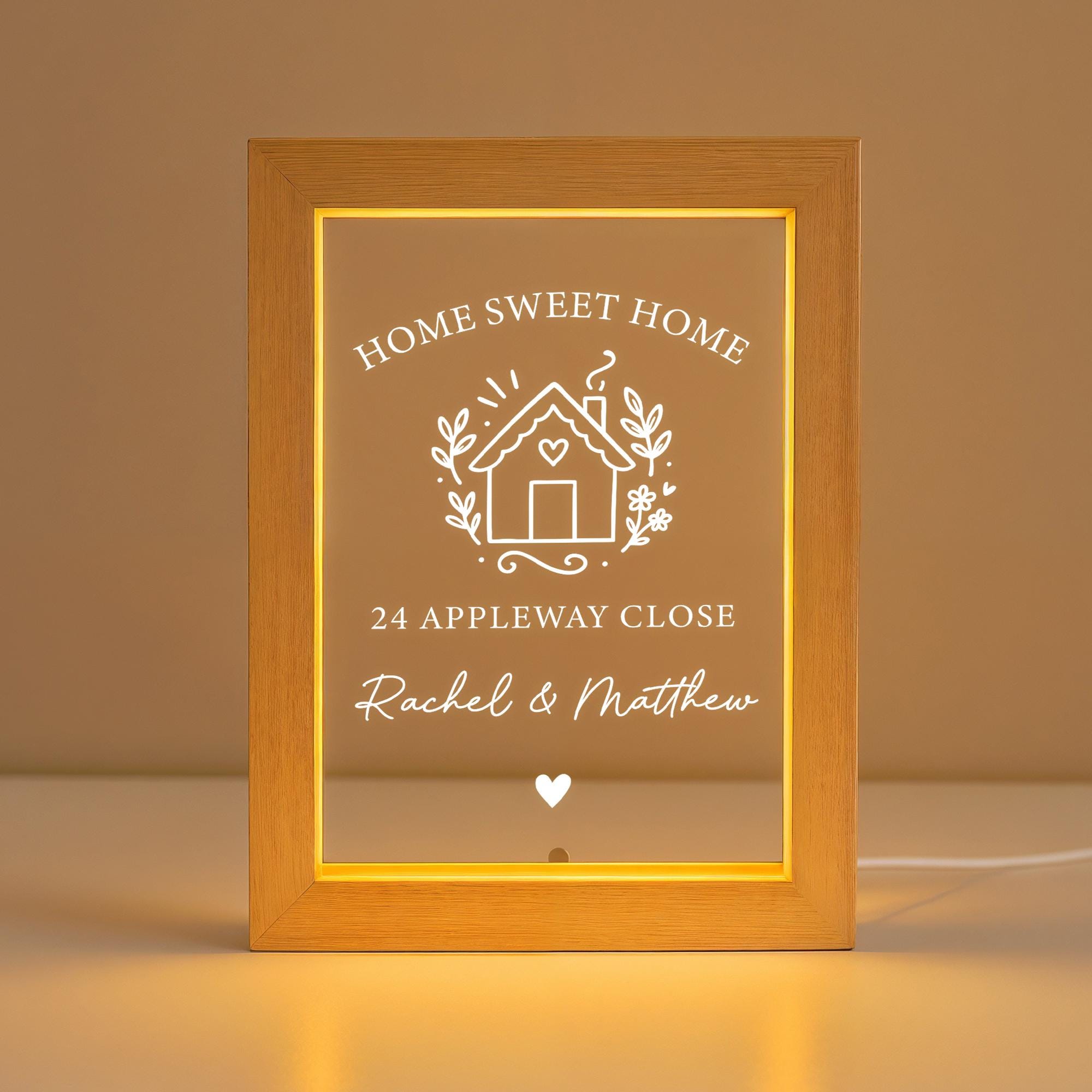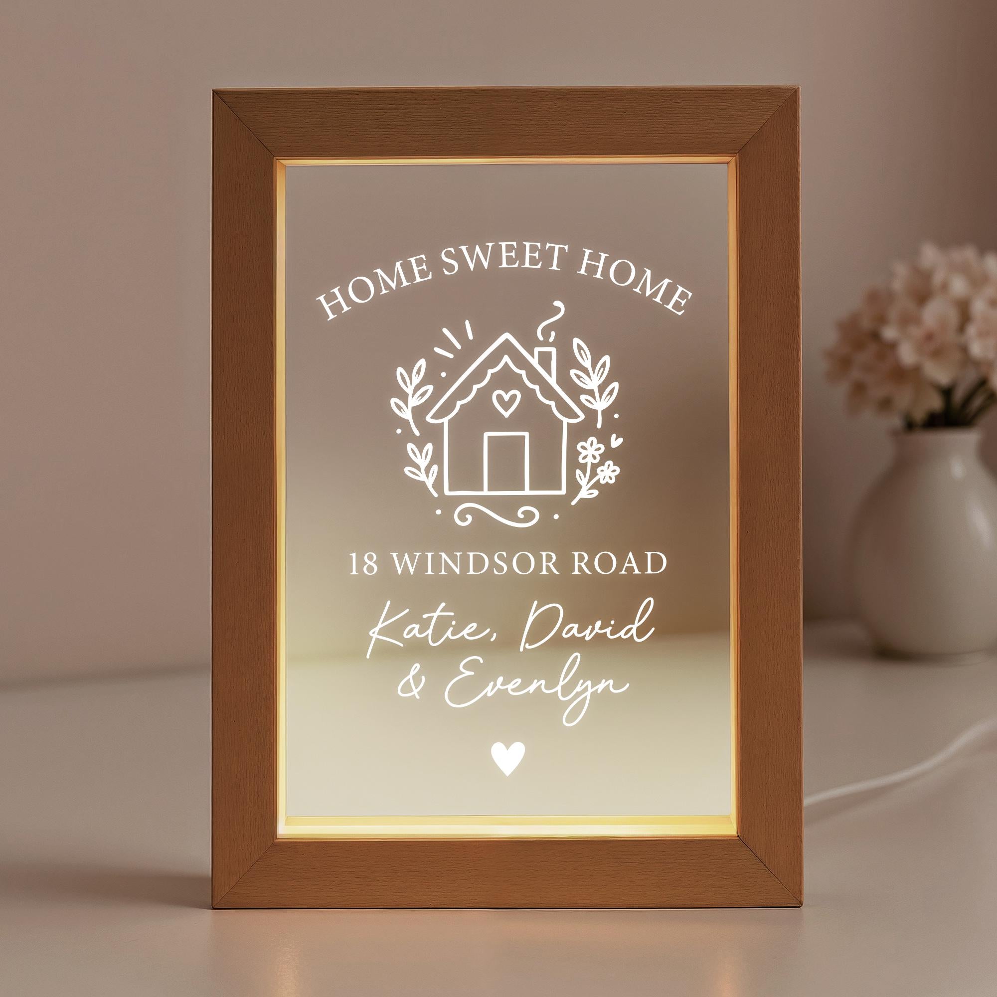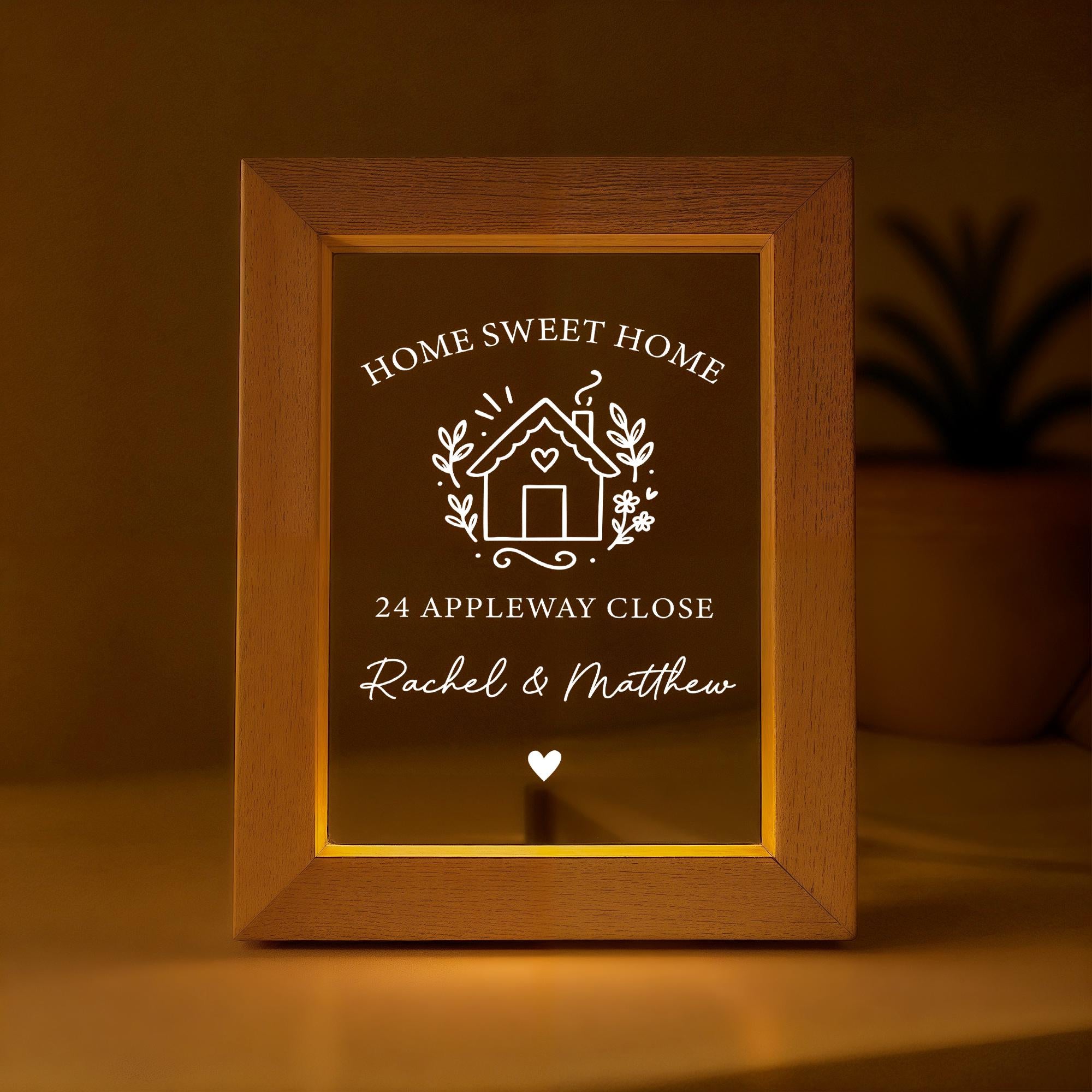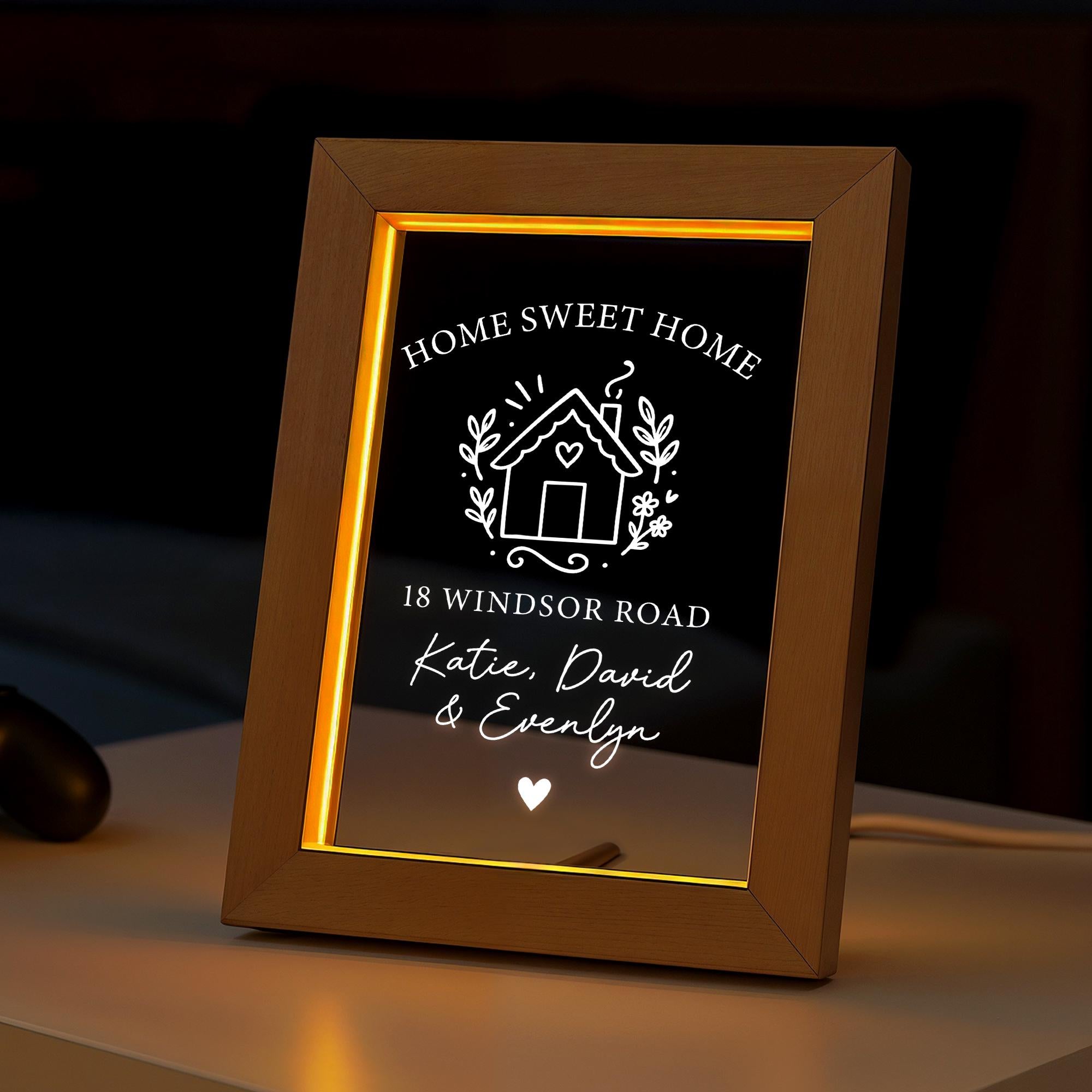 Personalised LED Home Sweet Home - Welcome Sign Frame, Road Name & Names