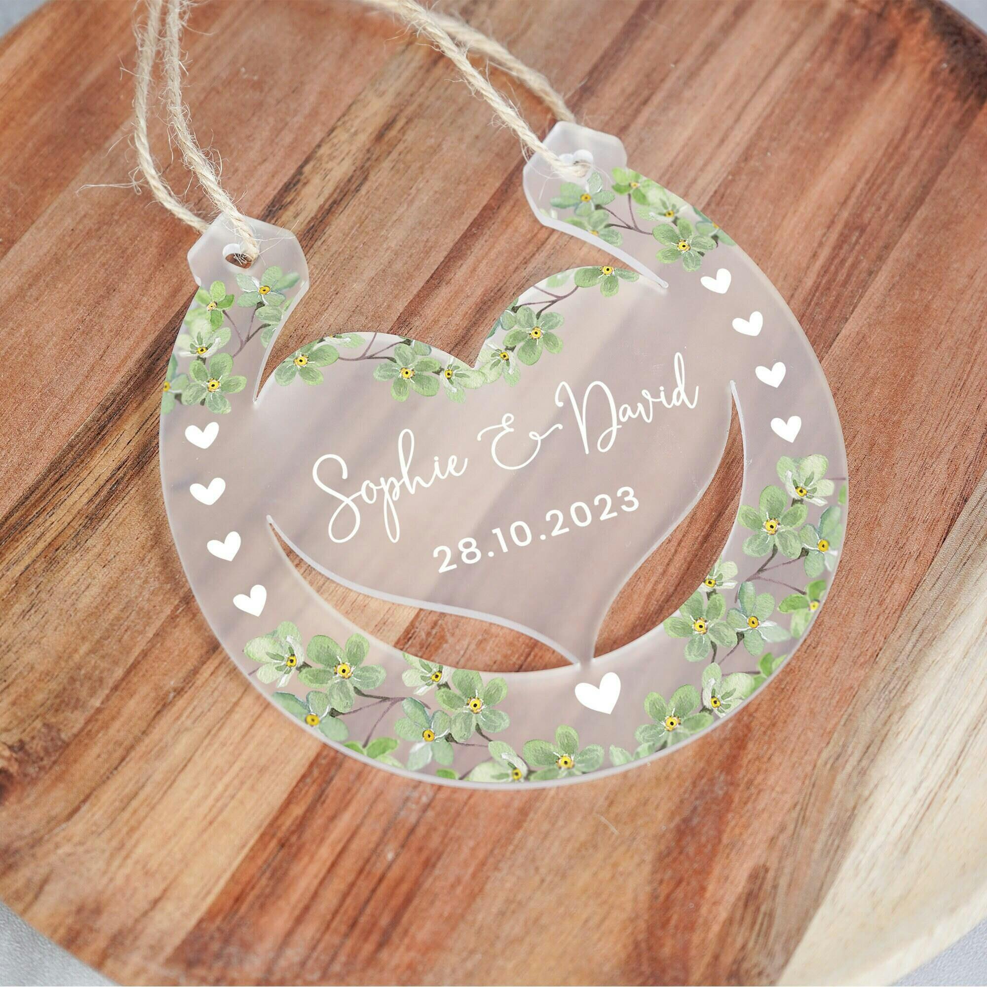 This beautiful frosted acrylic horseshoe hanging decoration are the perfect little gift for that special couple.