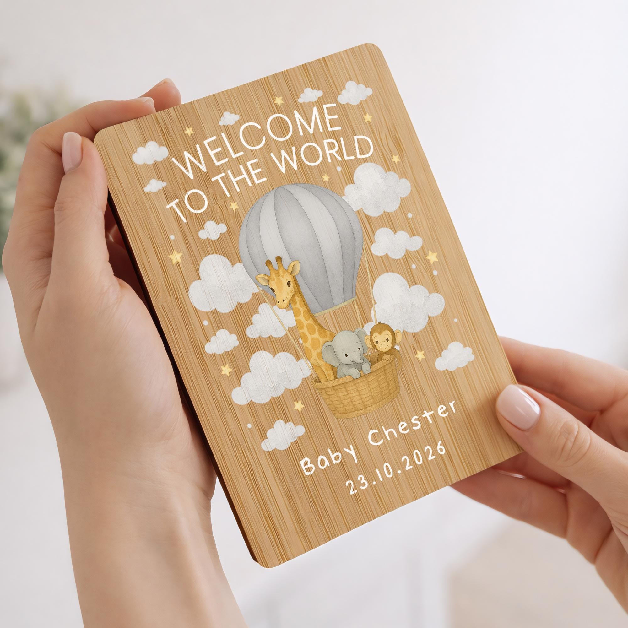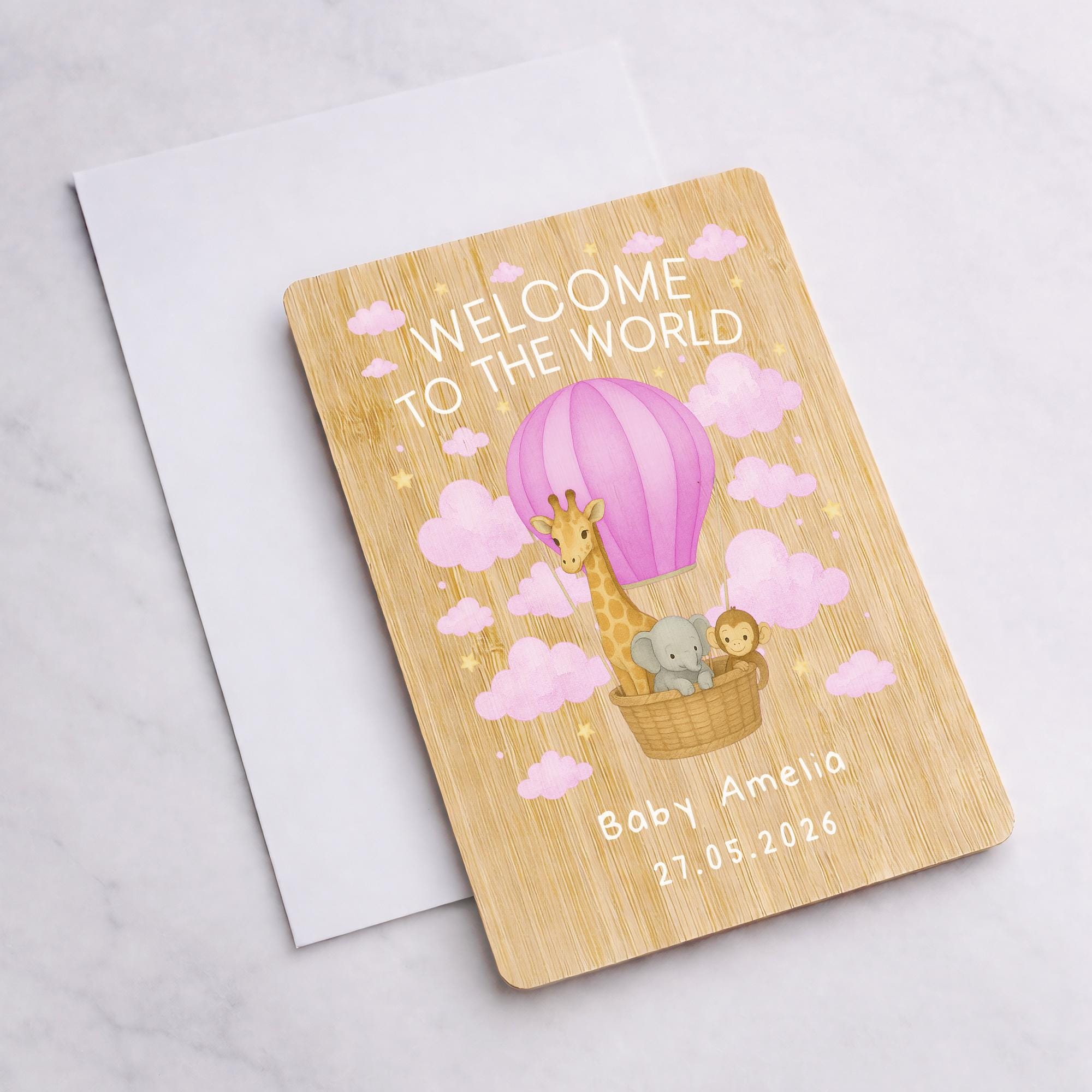 Personalised Welcome to the World Wooden New Baby Card