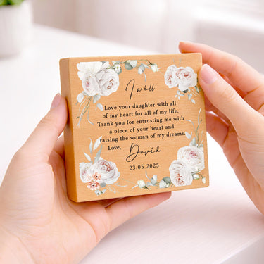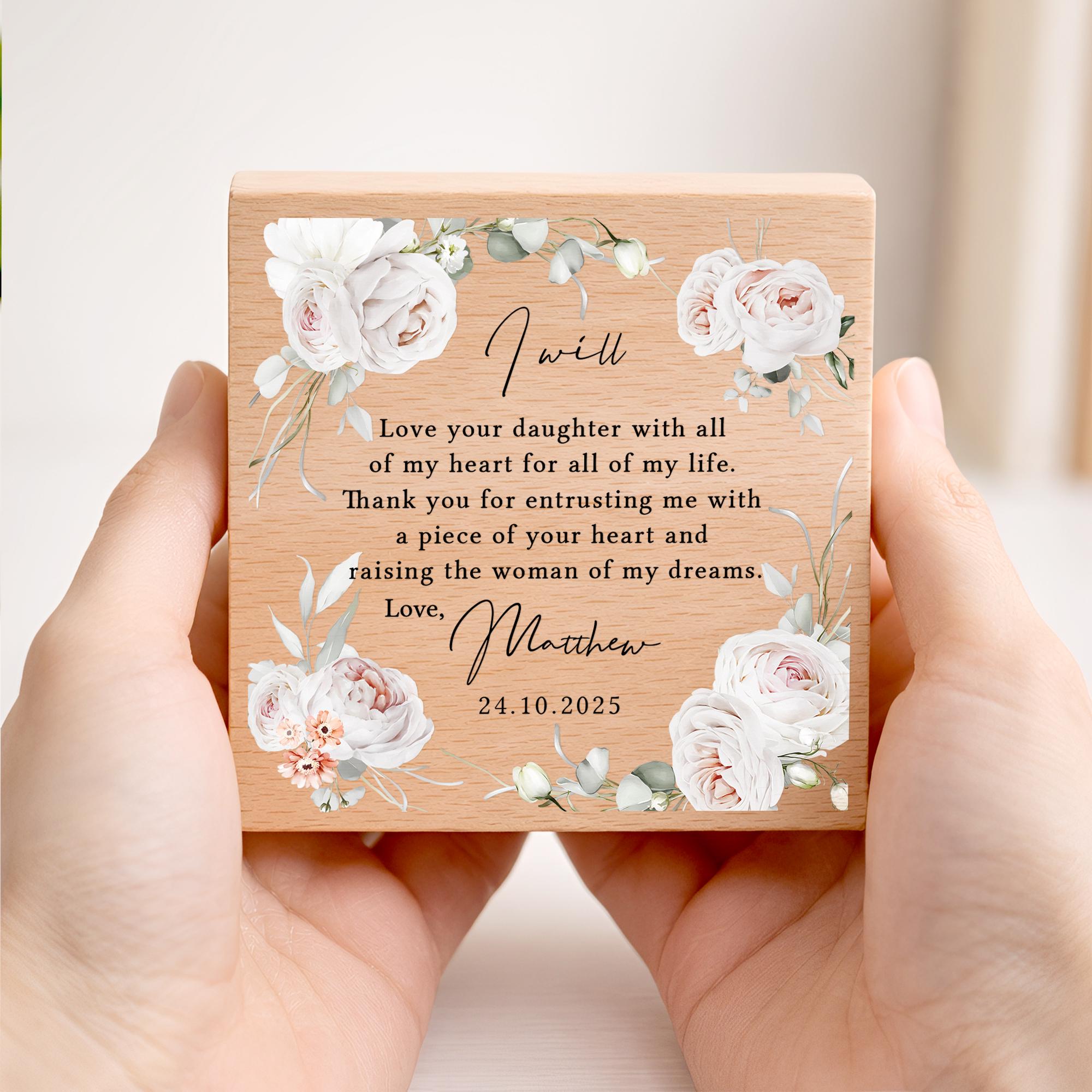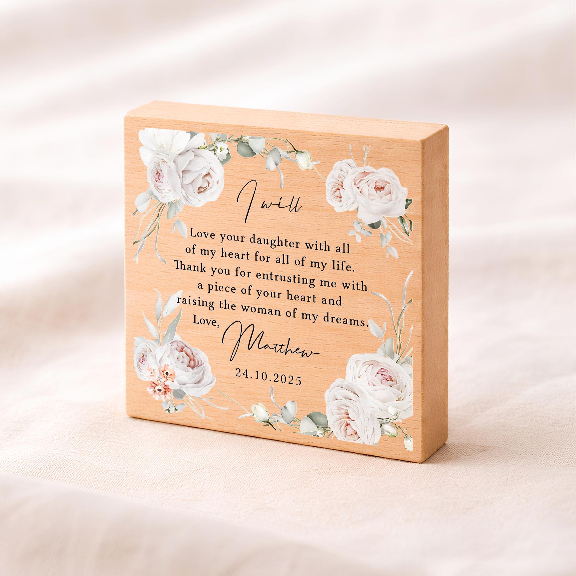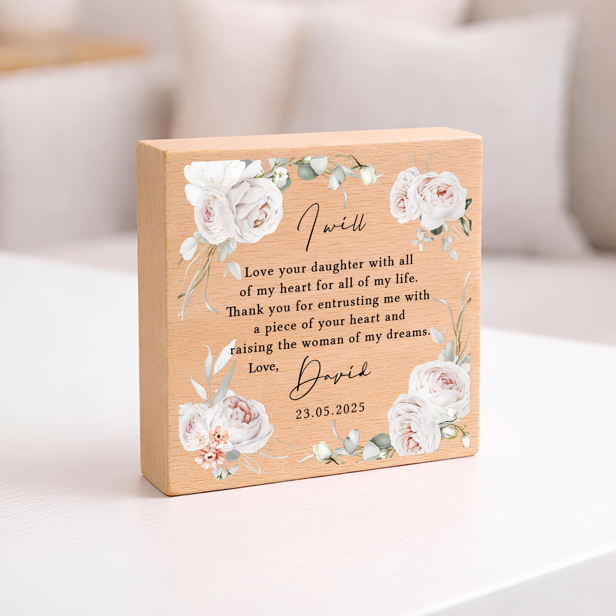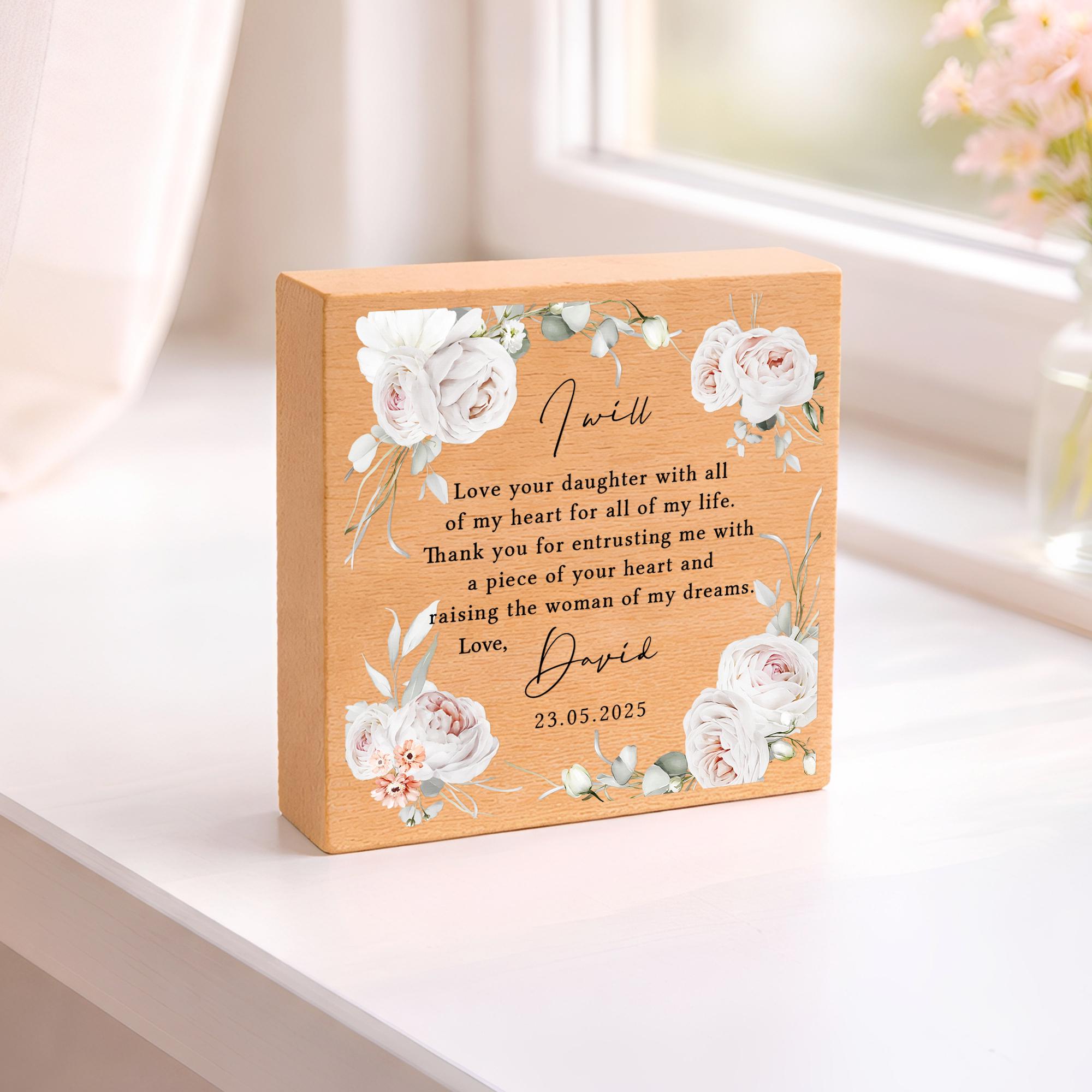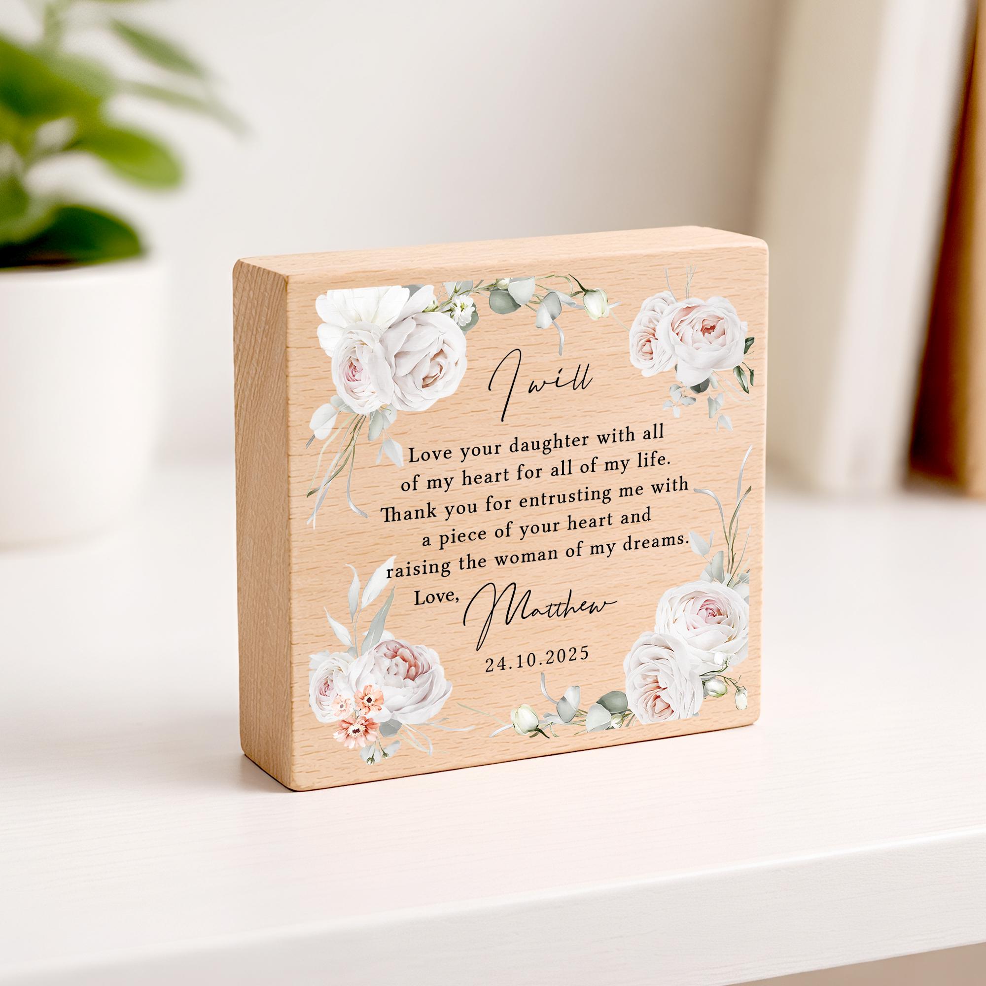 Personalised Parents of the Bride Gift Plaque Thank You Wedding Day From Groom Beech Wood Block