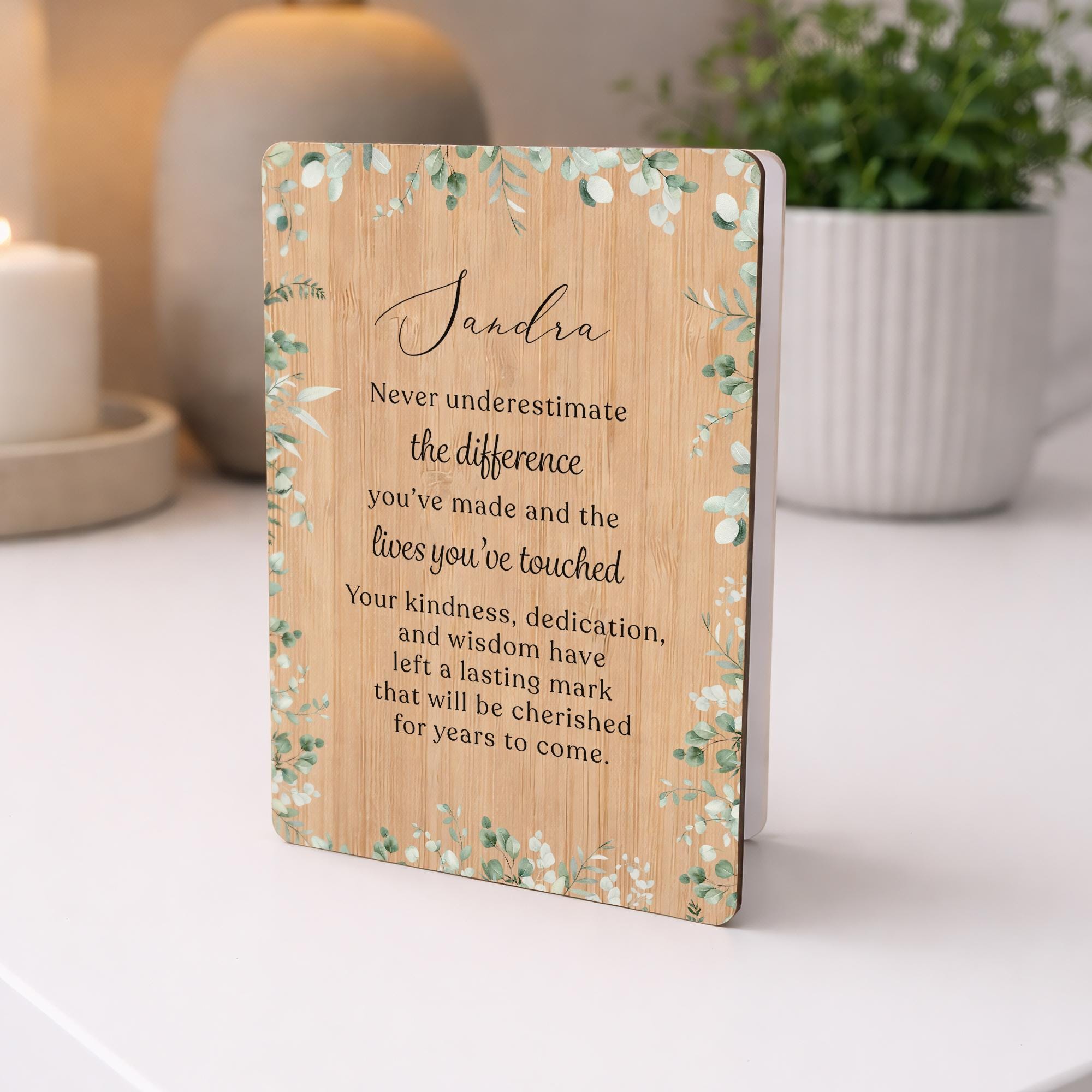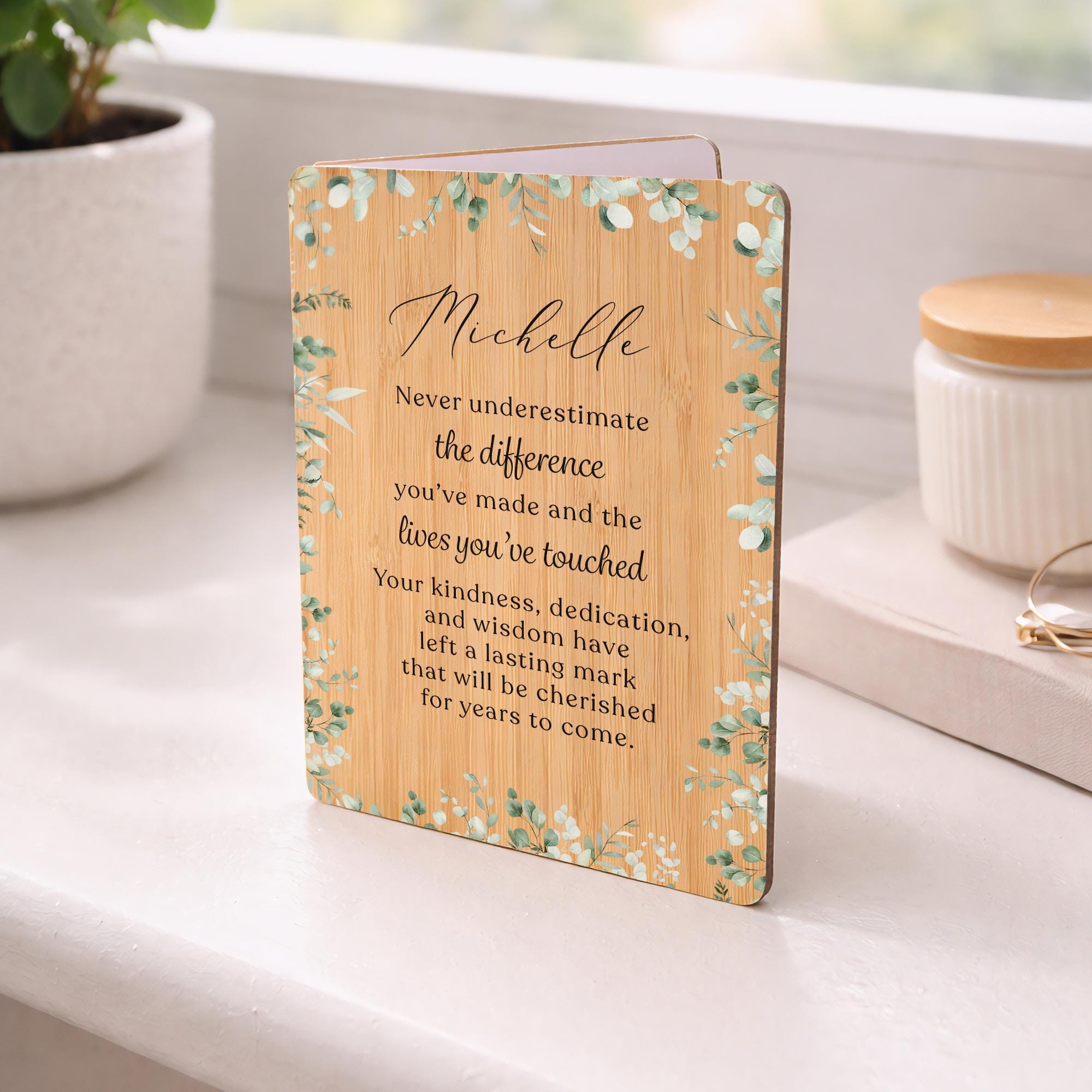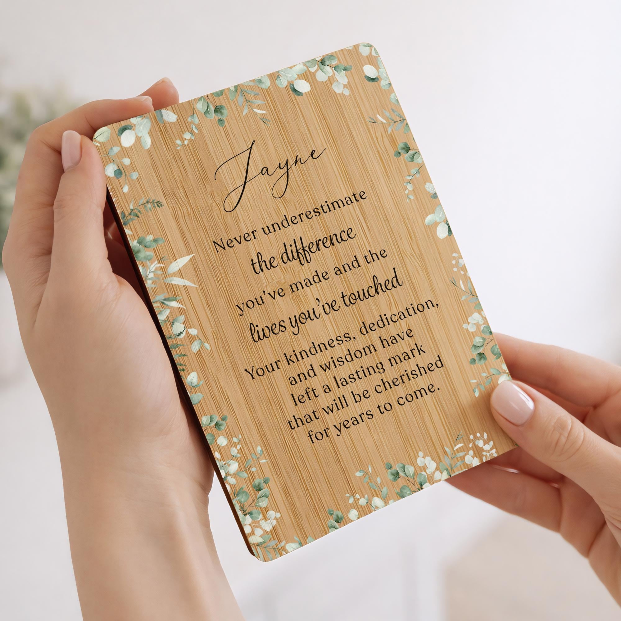 Personalised Leaving Retirement Bamboo Wooden Card Keepsake