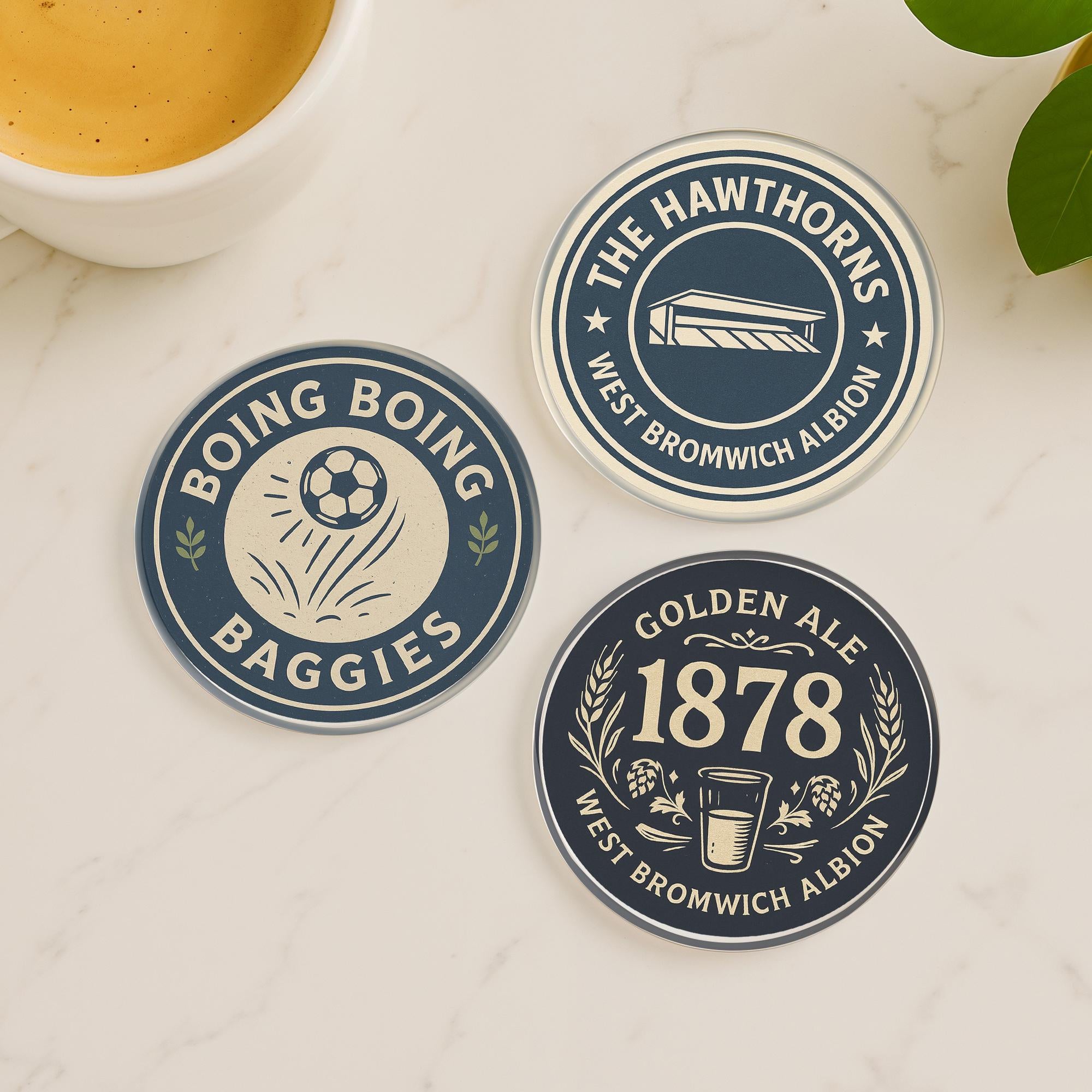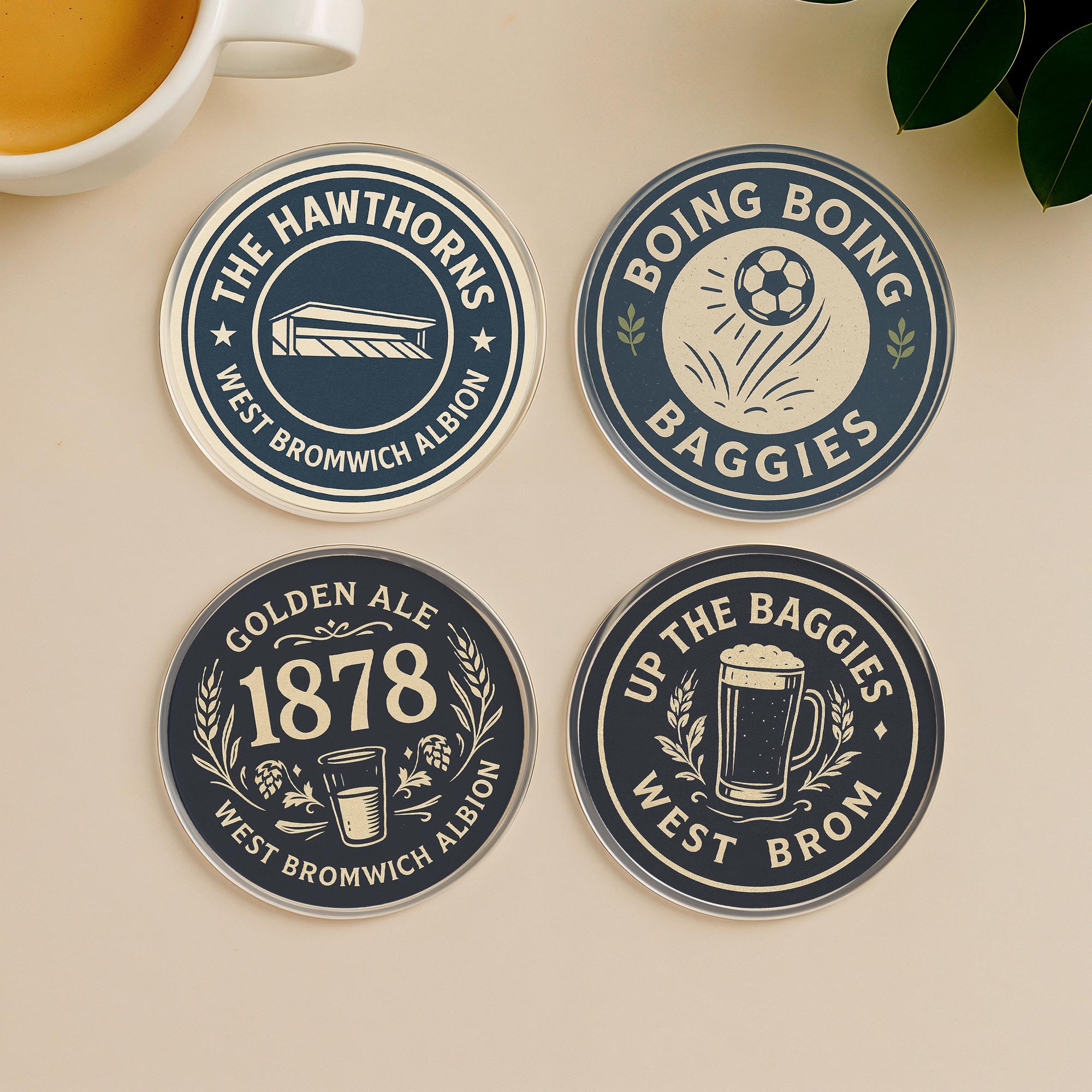 Set of 4 West Brom FC Baggies Fan Chants and Slogan Themed Clear Acrylic Coasters