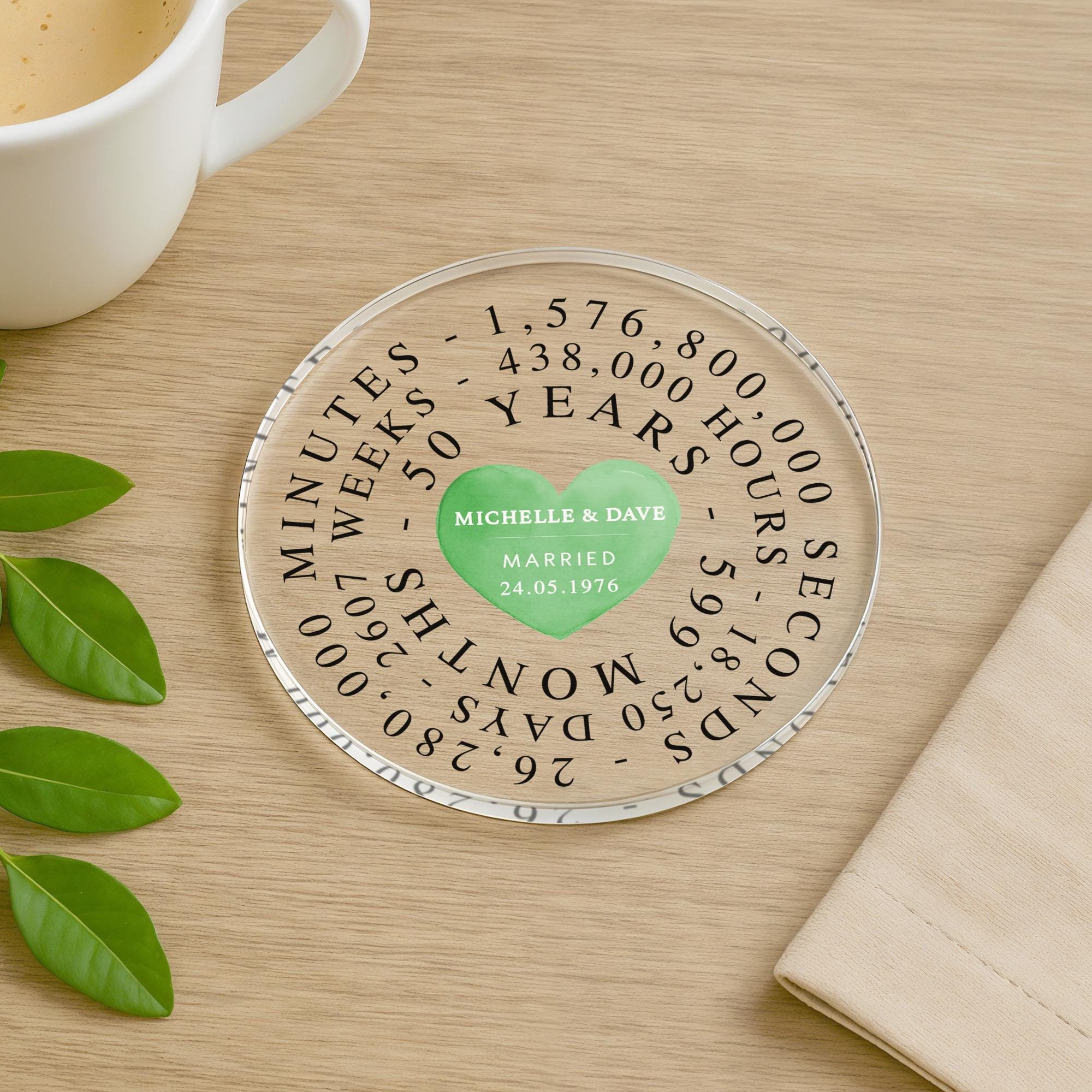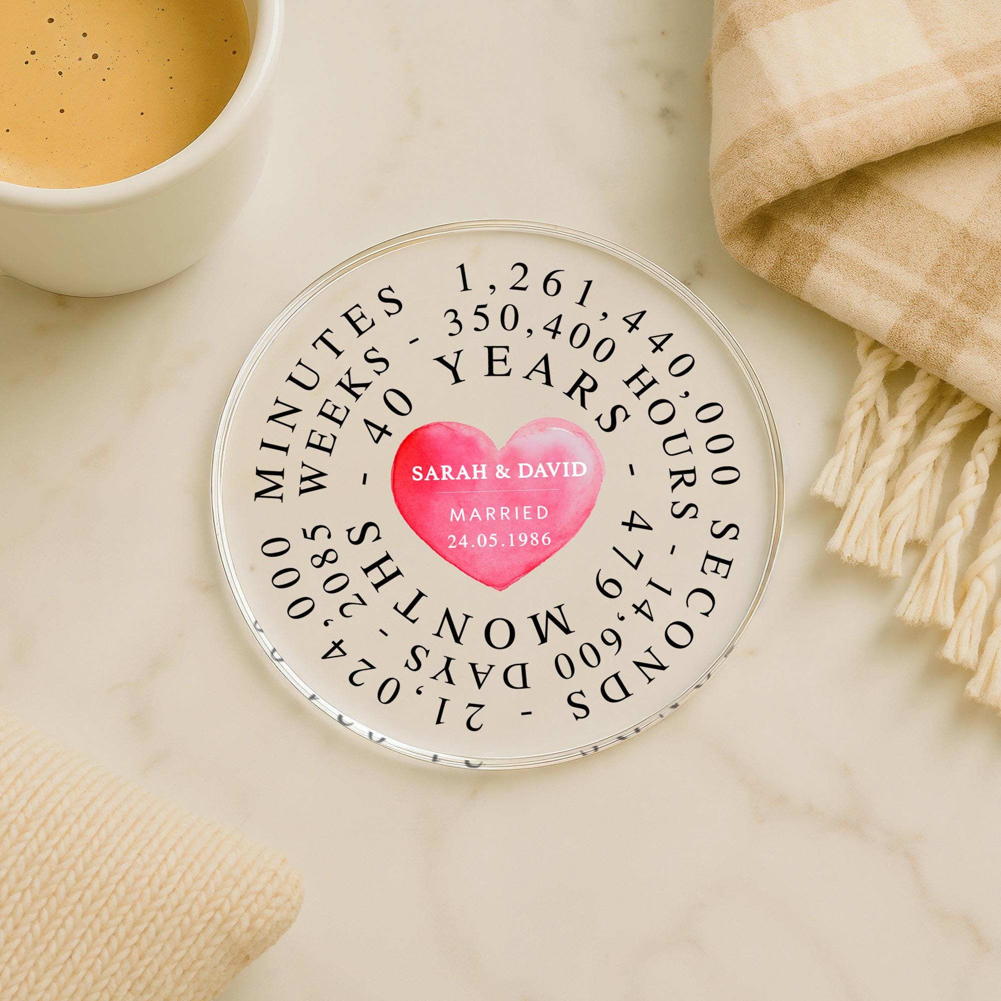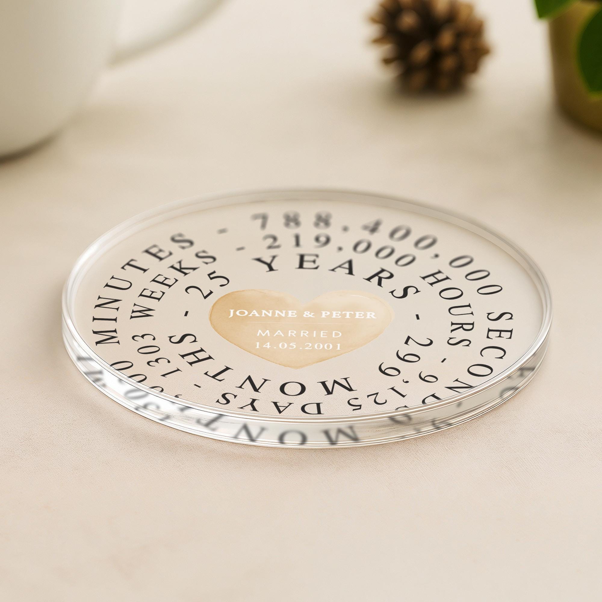 Personalised Wedding Anniversary Coaster Husband/Wife, 10th 25th, 30th, 40th, 50th, 60th