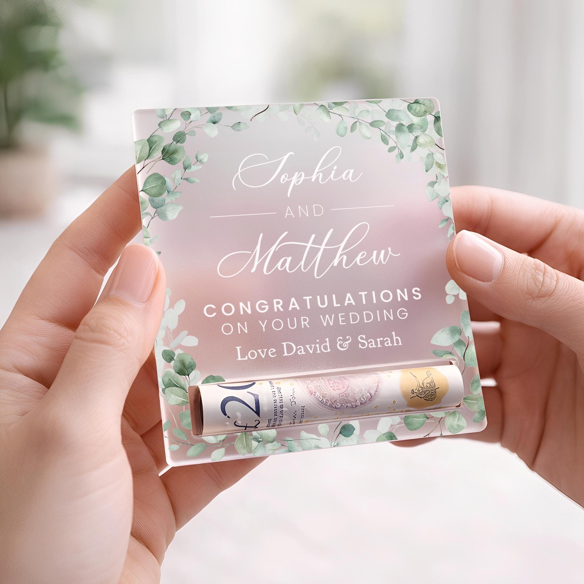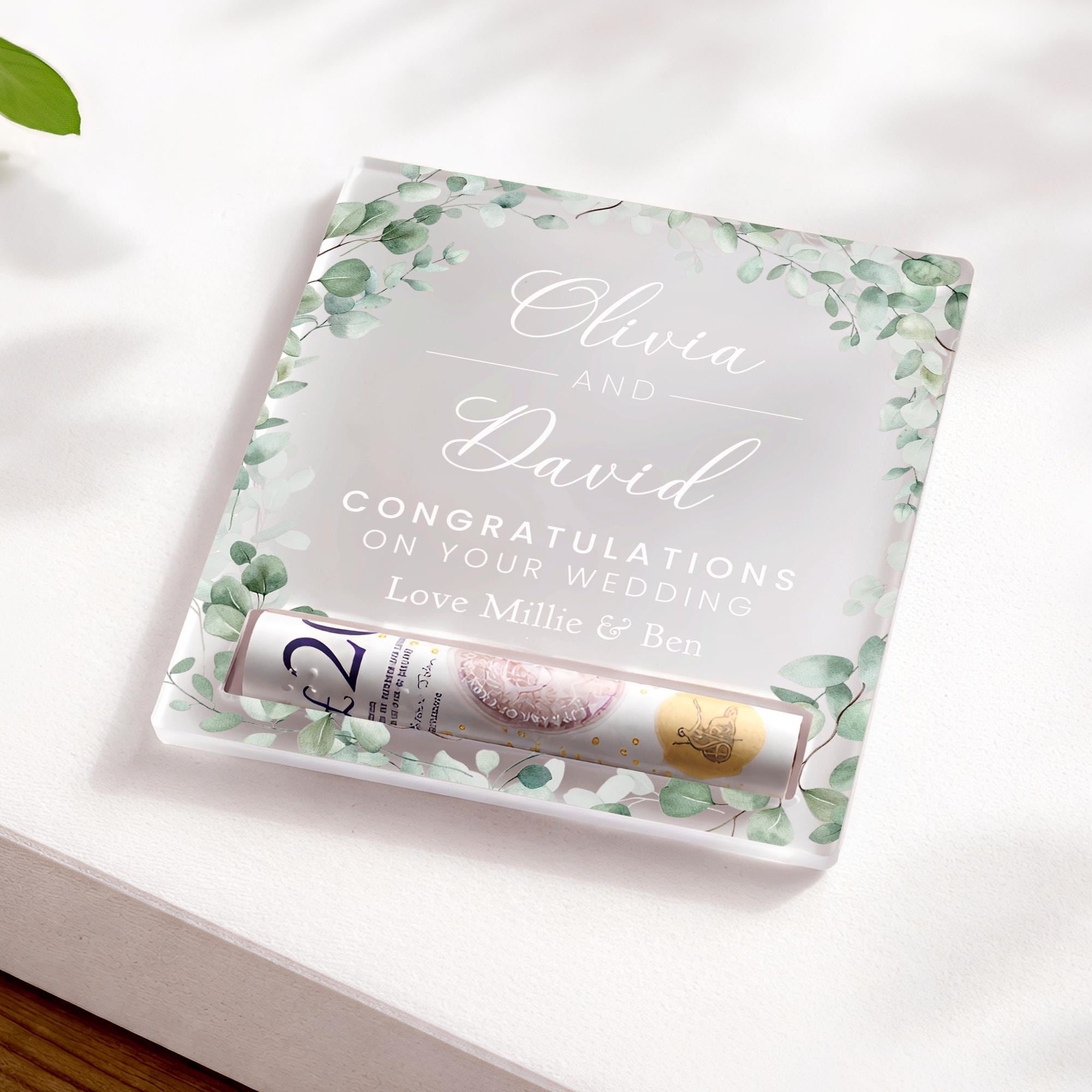 Give the gift of money in a way that feels thoughtful and special. This personalised money holder is designed to hold a rolled note, turning a simple cash gift into a meaningful keepsake. Made from frosted acrylic with a clean, modern finish, it’s perfect for birthdays, weddings, celebrations, and life milestones of all kinds. A beautiful alternative to a card or envelope, and a keepsake that looks just as good on display as it does on the day it’s gifted.